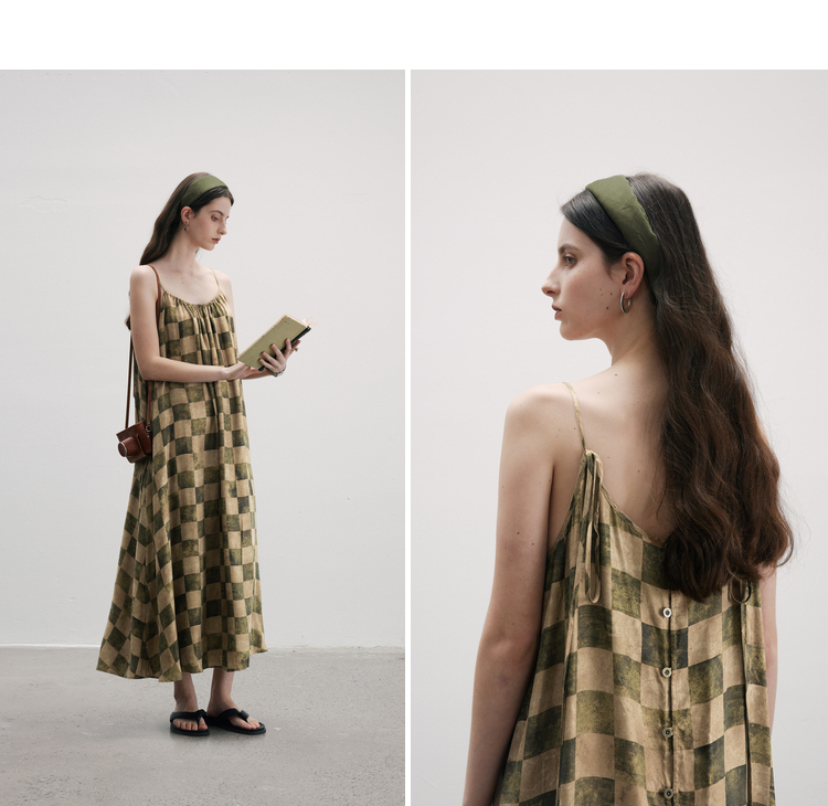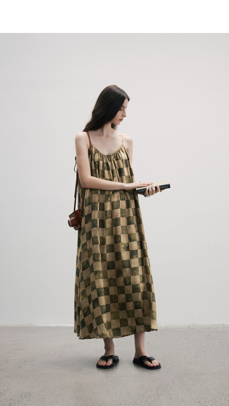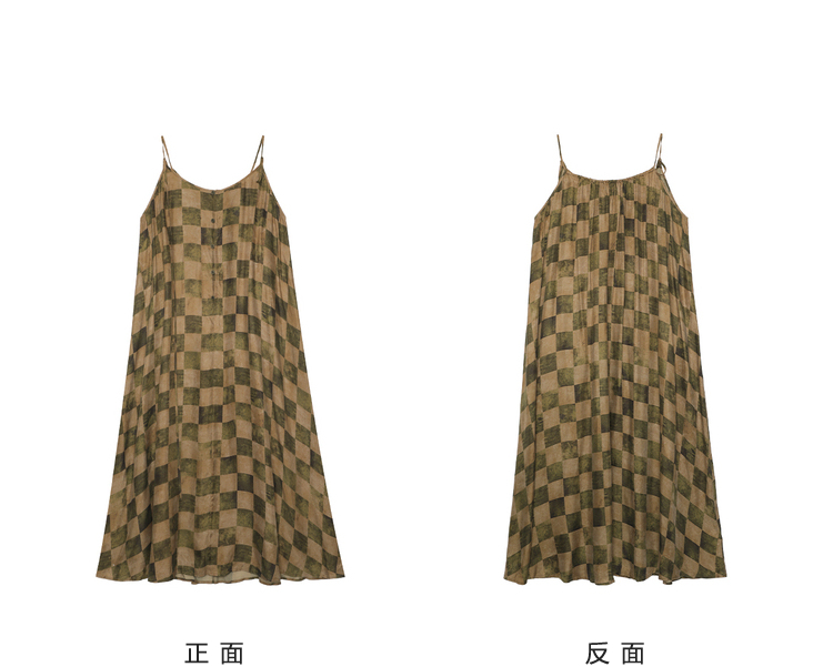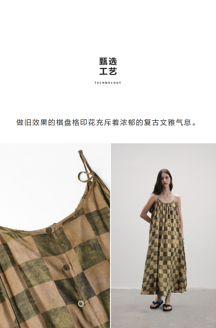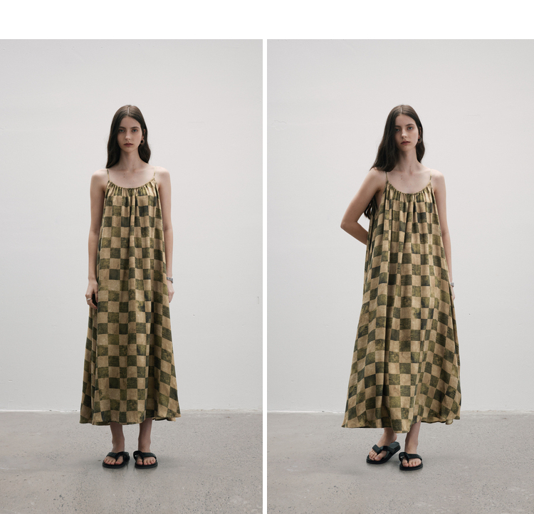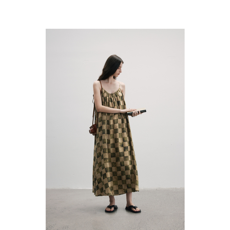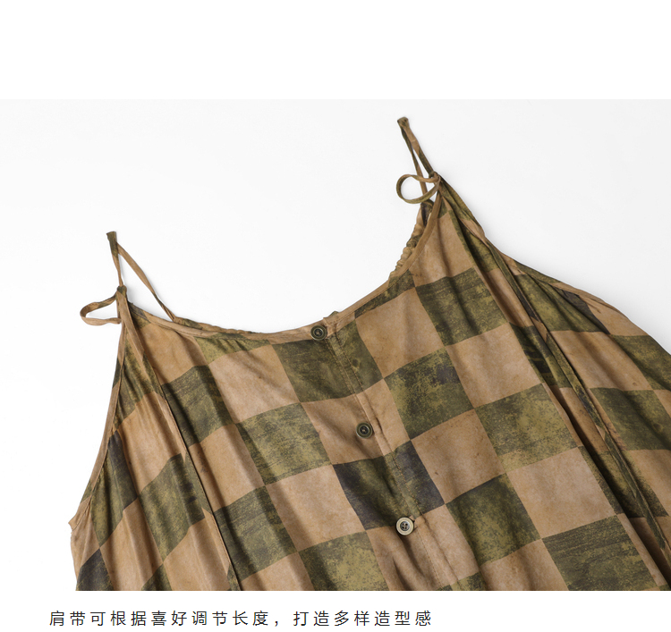 半圆/D23114071/抽褶吊带裙复古清凉透气宽松连衣裙