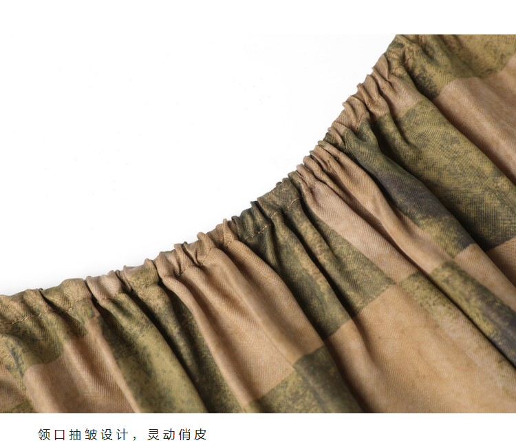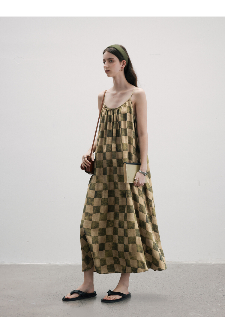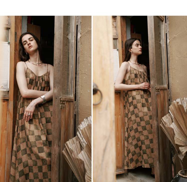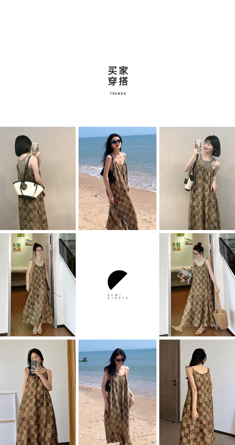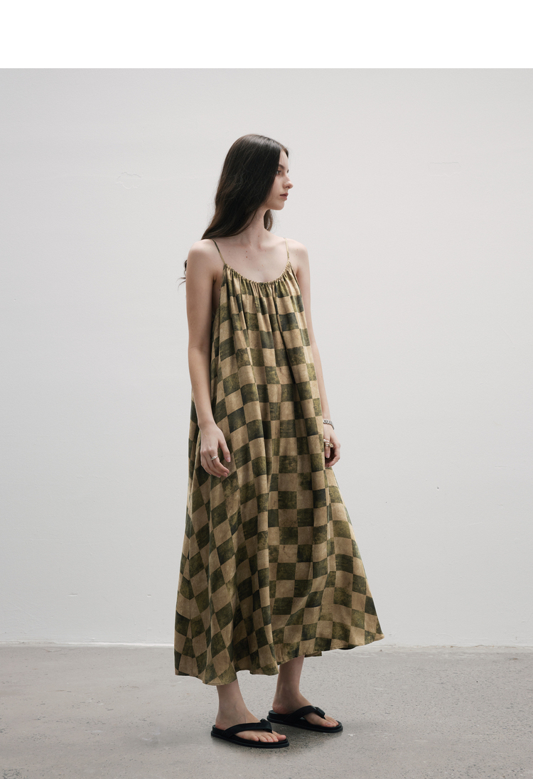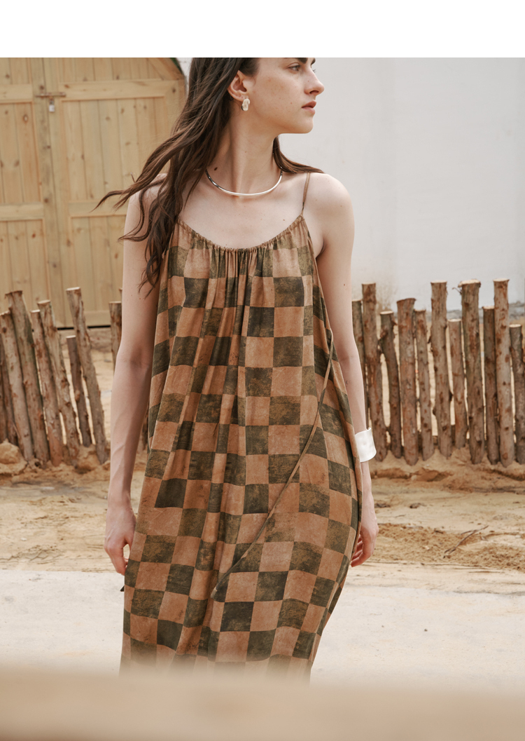 半圆/D23114071/抽褶吊带裙复古清凉透气宽松连衣裙