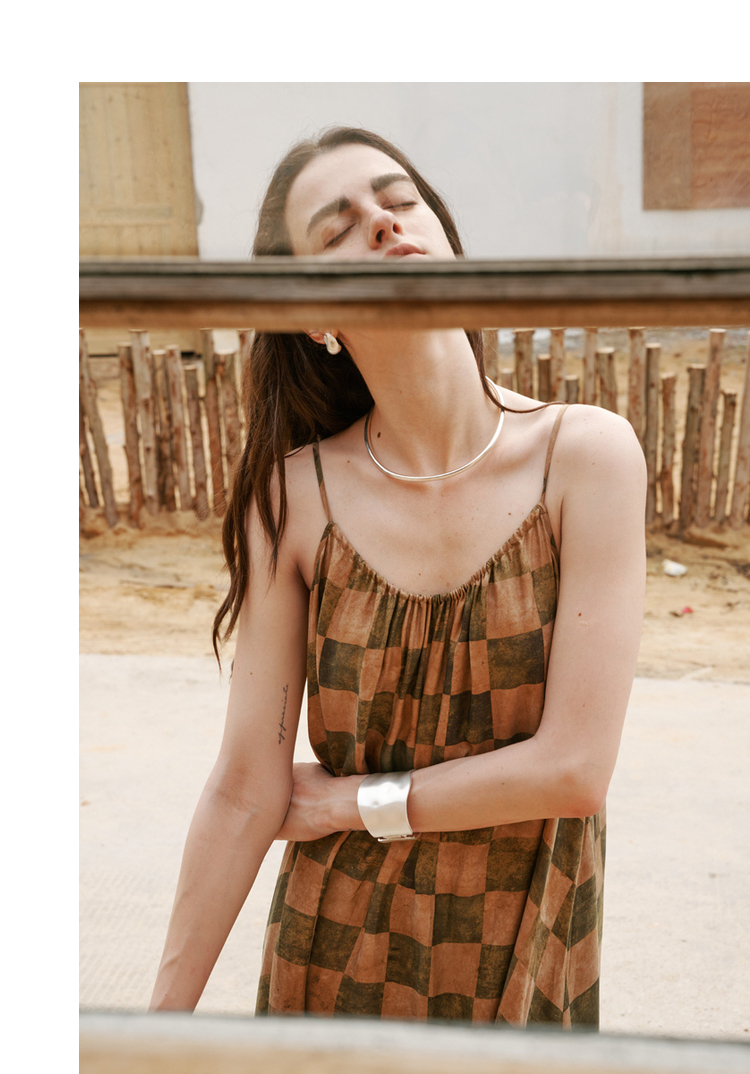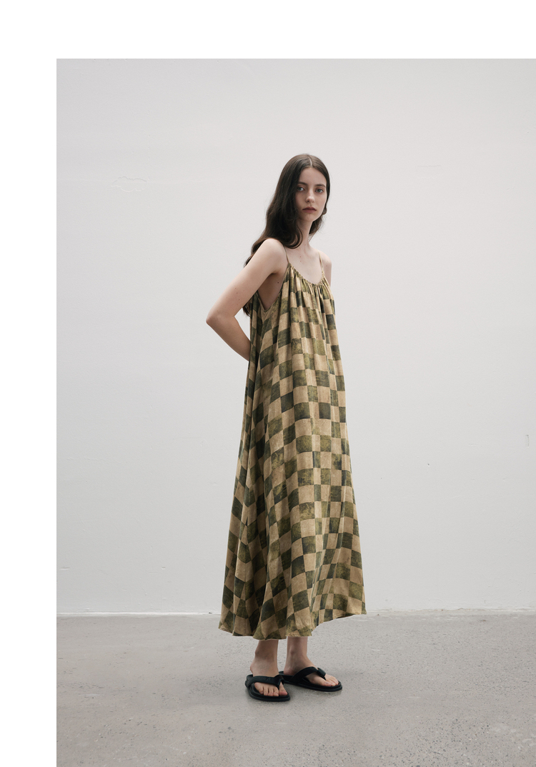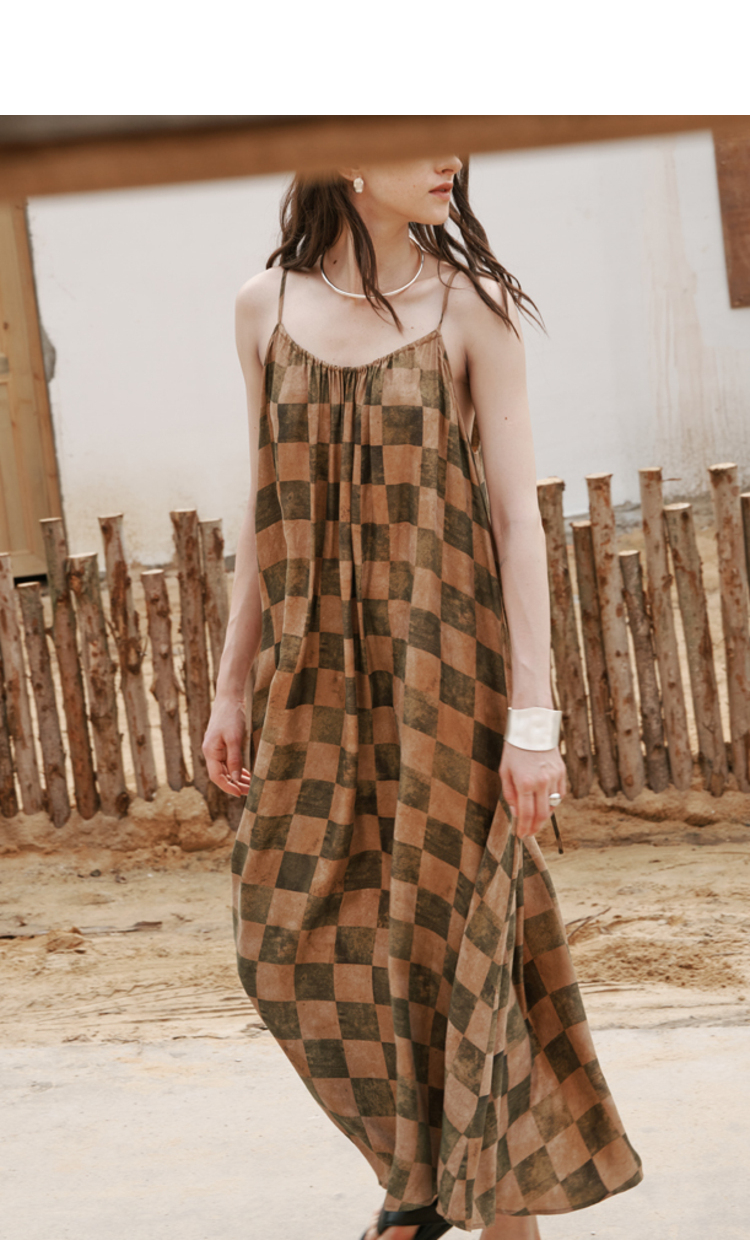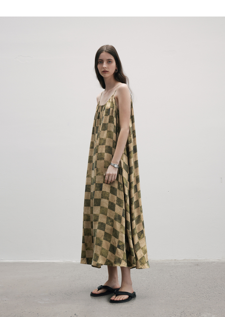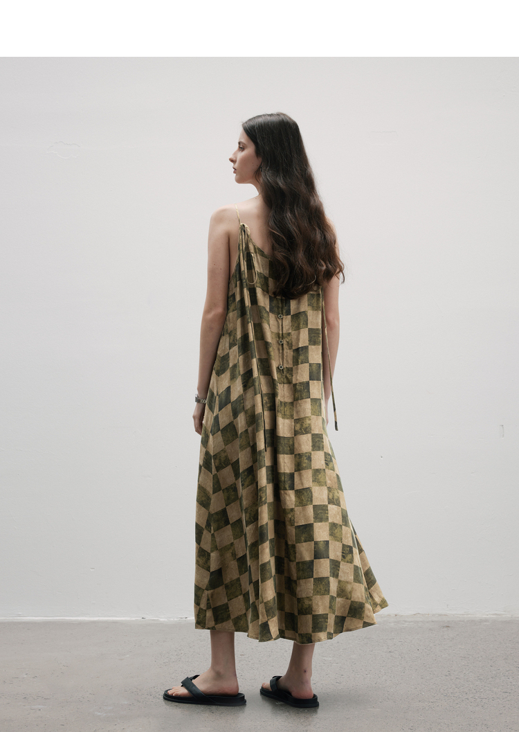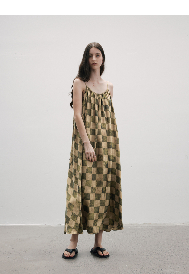 半圆/D23114071/抽褶吊带裙复古清凉透气宽松连衣裙