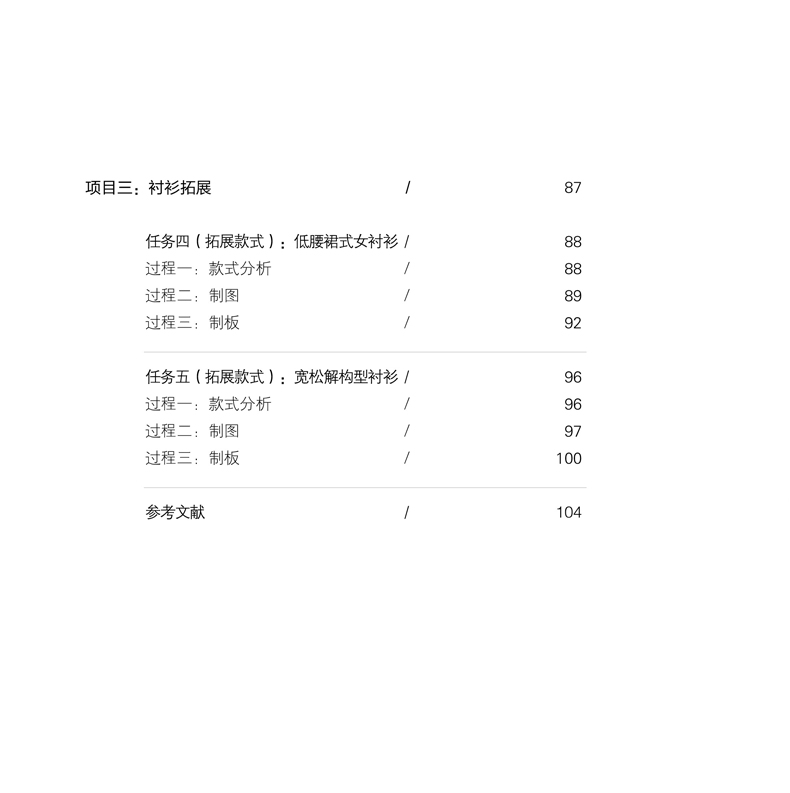 任务五(拓展款式):宽松解构型衬衫 / 96