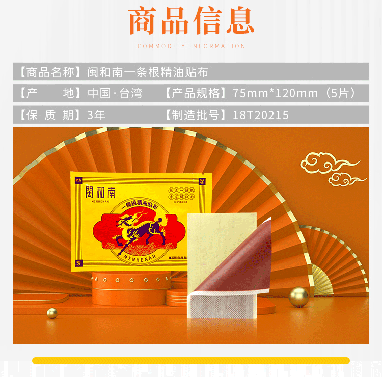 台湾金门精油绿色贴布 闽和南一条根 辅助舒缓颈椎疼痛腰椎酸痛