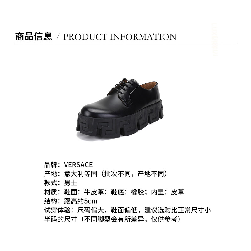 VERSACE/范思哲【22春夏新款】男士牛皮革GRECA LABYRINTH系带休闲皮鞋厚底鞋 1000771 D9VAC