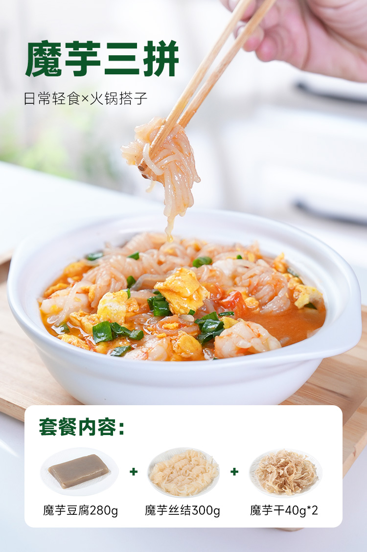 【前200单赠送泡菜!手慢无】西域美农 魔芋豆腐 魔芋丝结 魔芋干 魔芋三拼 火锅脆爽弹口