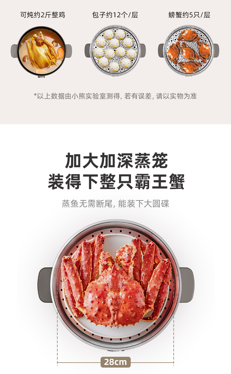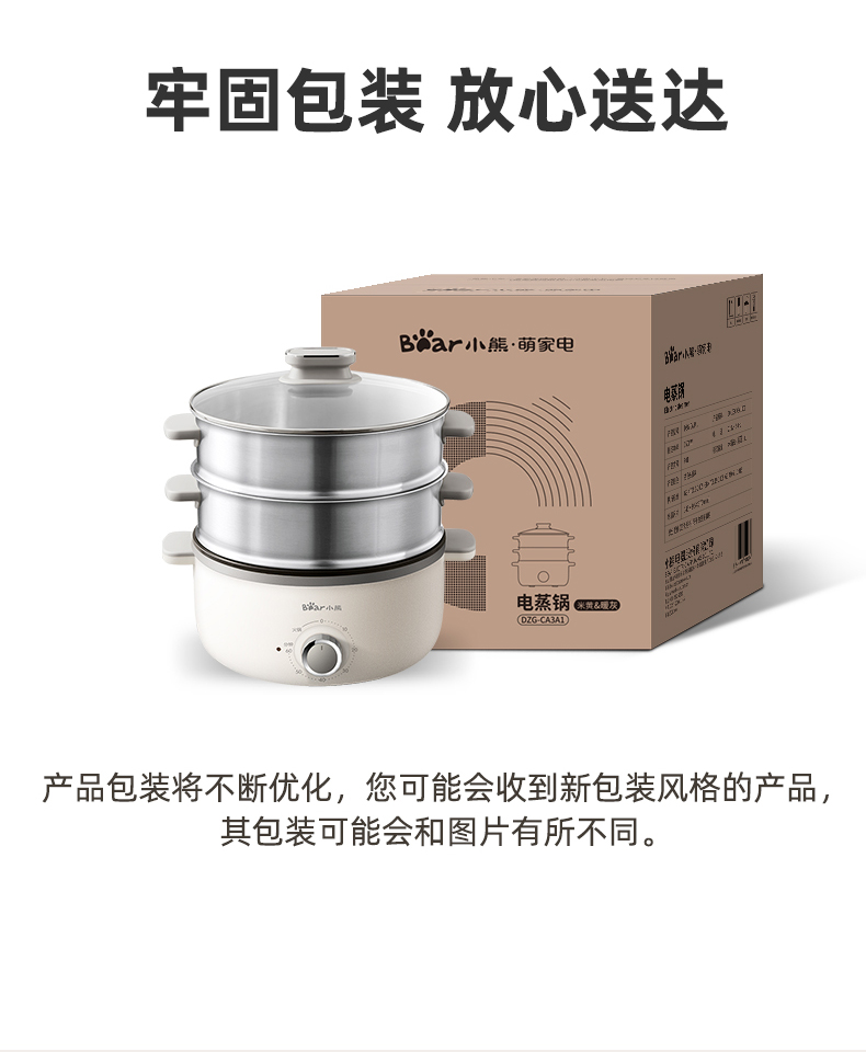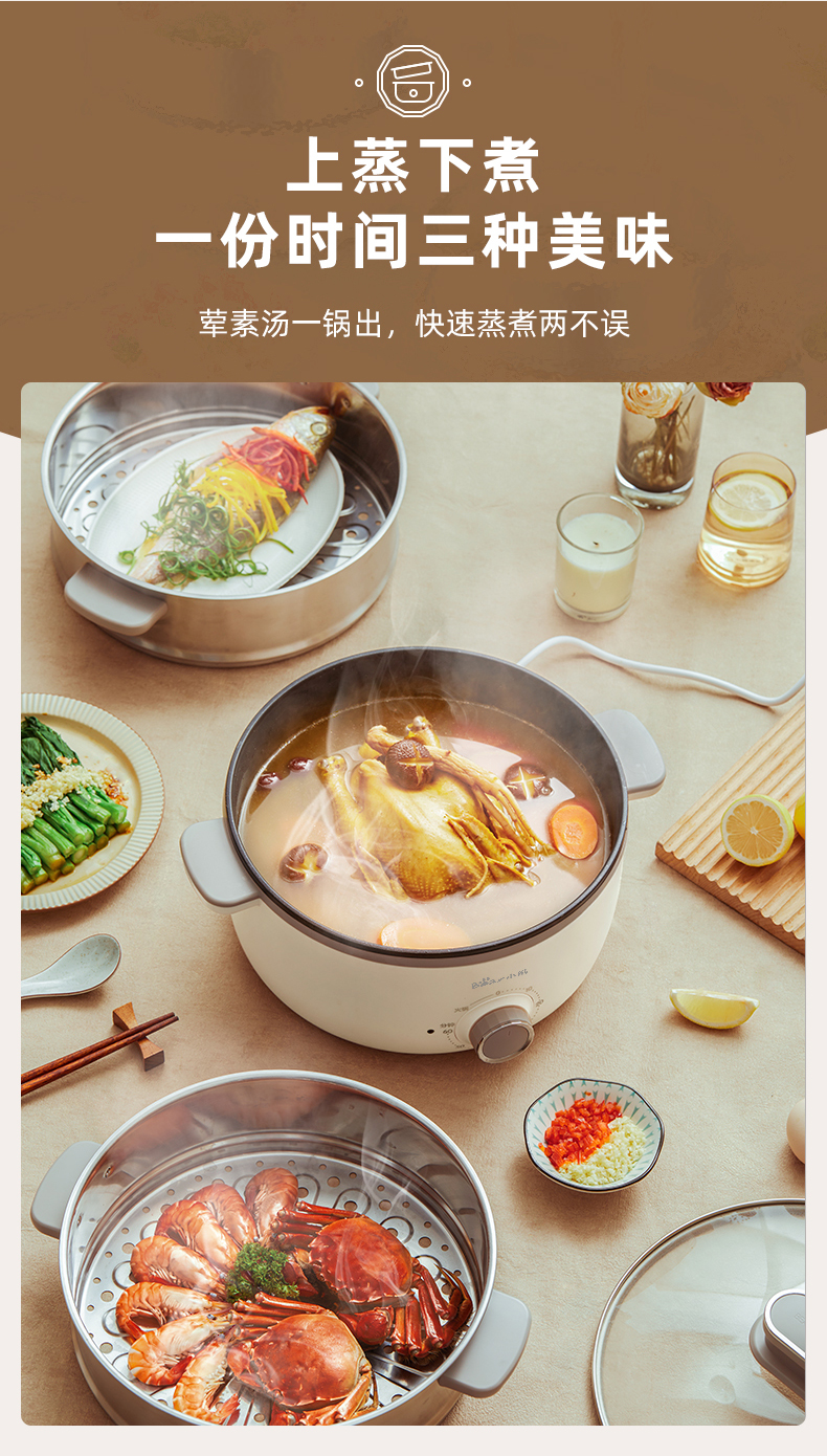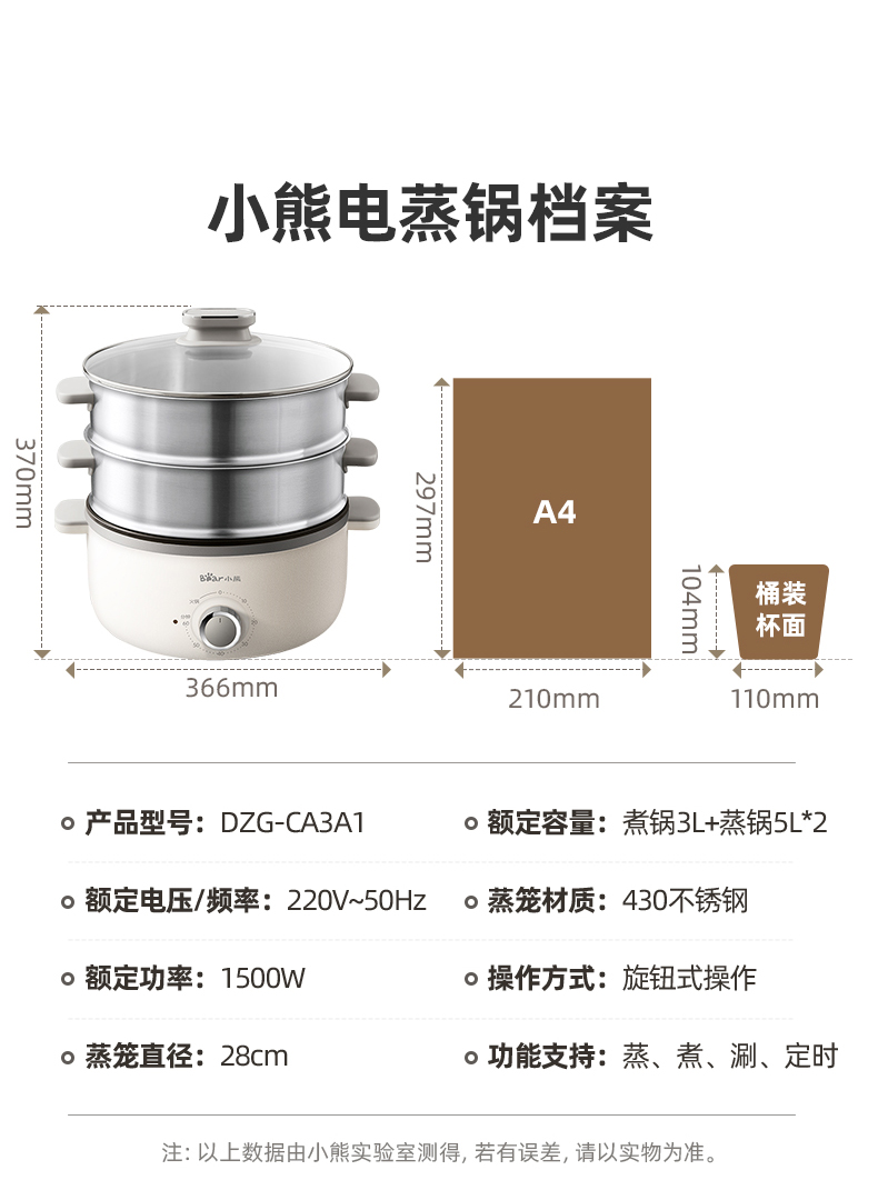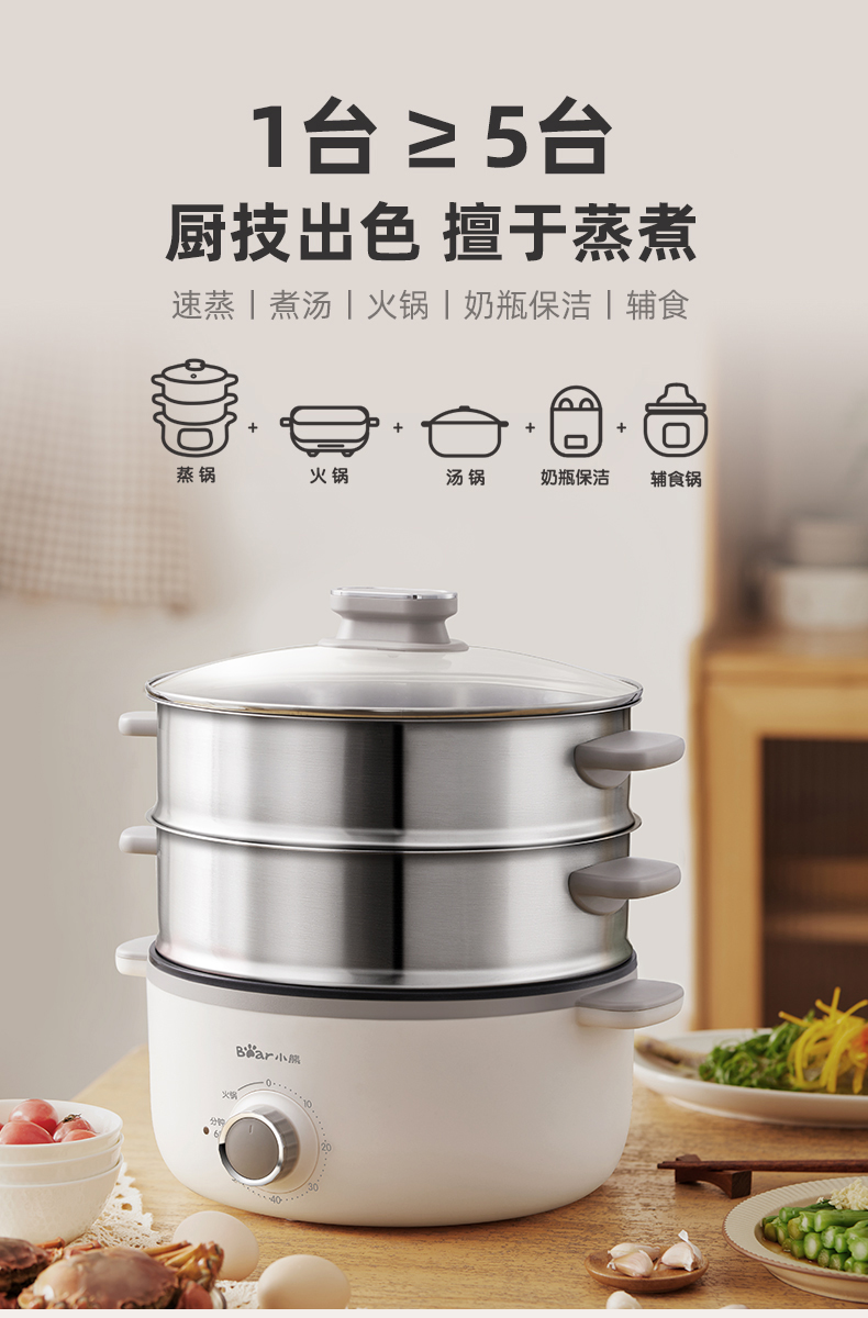 【小程序】小熊电蒸锅 DZG-CA3A1 60分钟定时器+2个5L蒸笼+玻璃盖