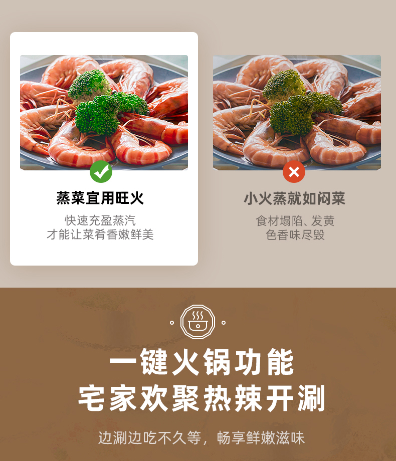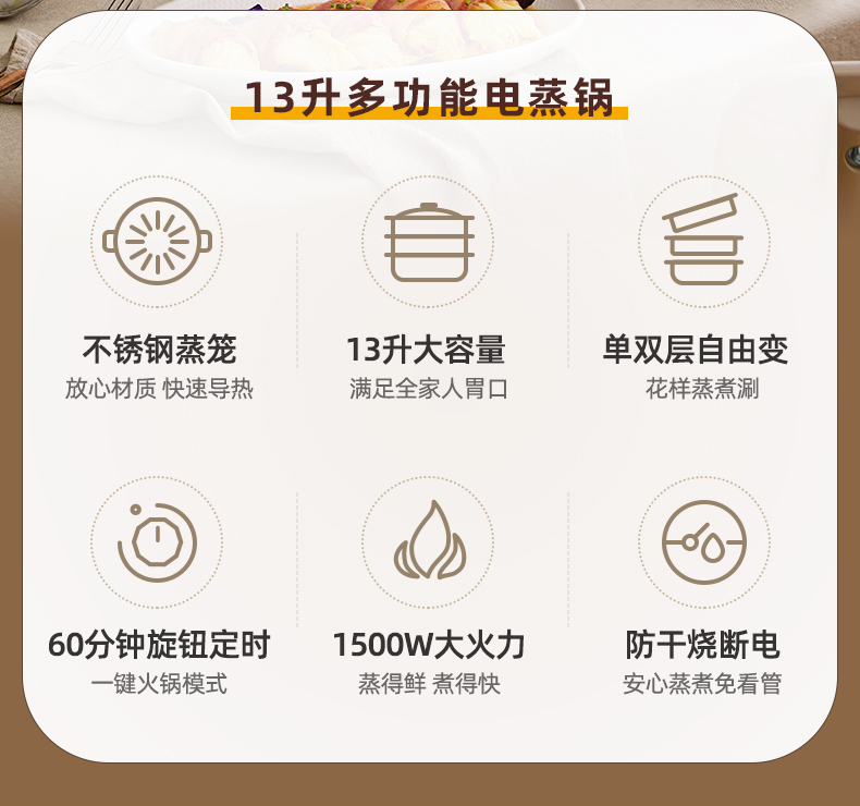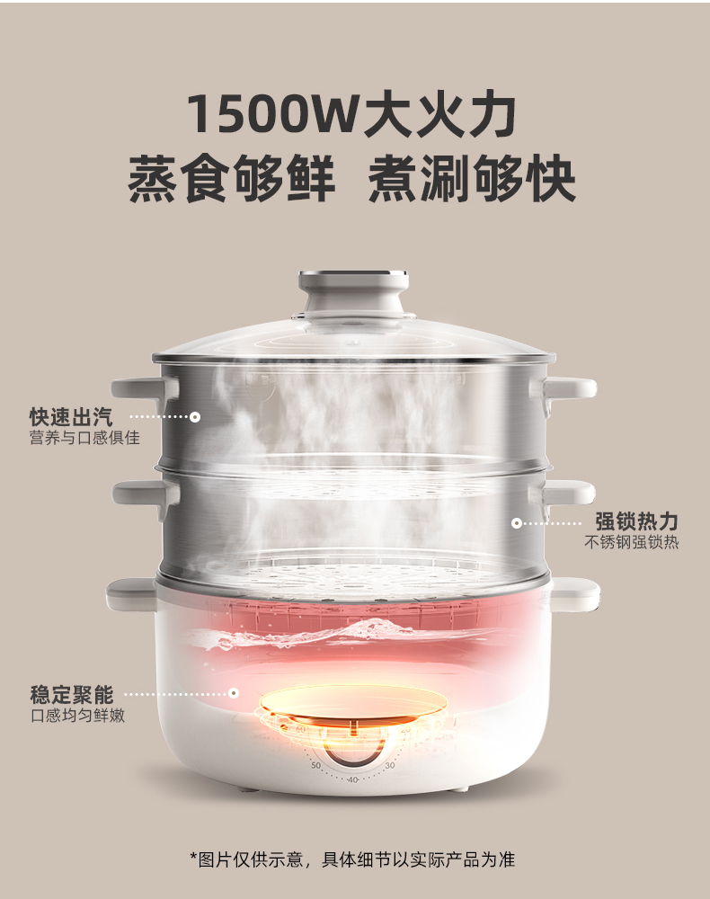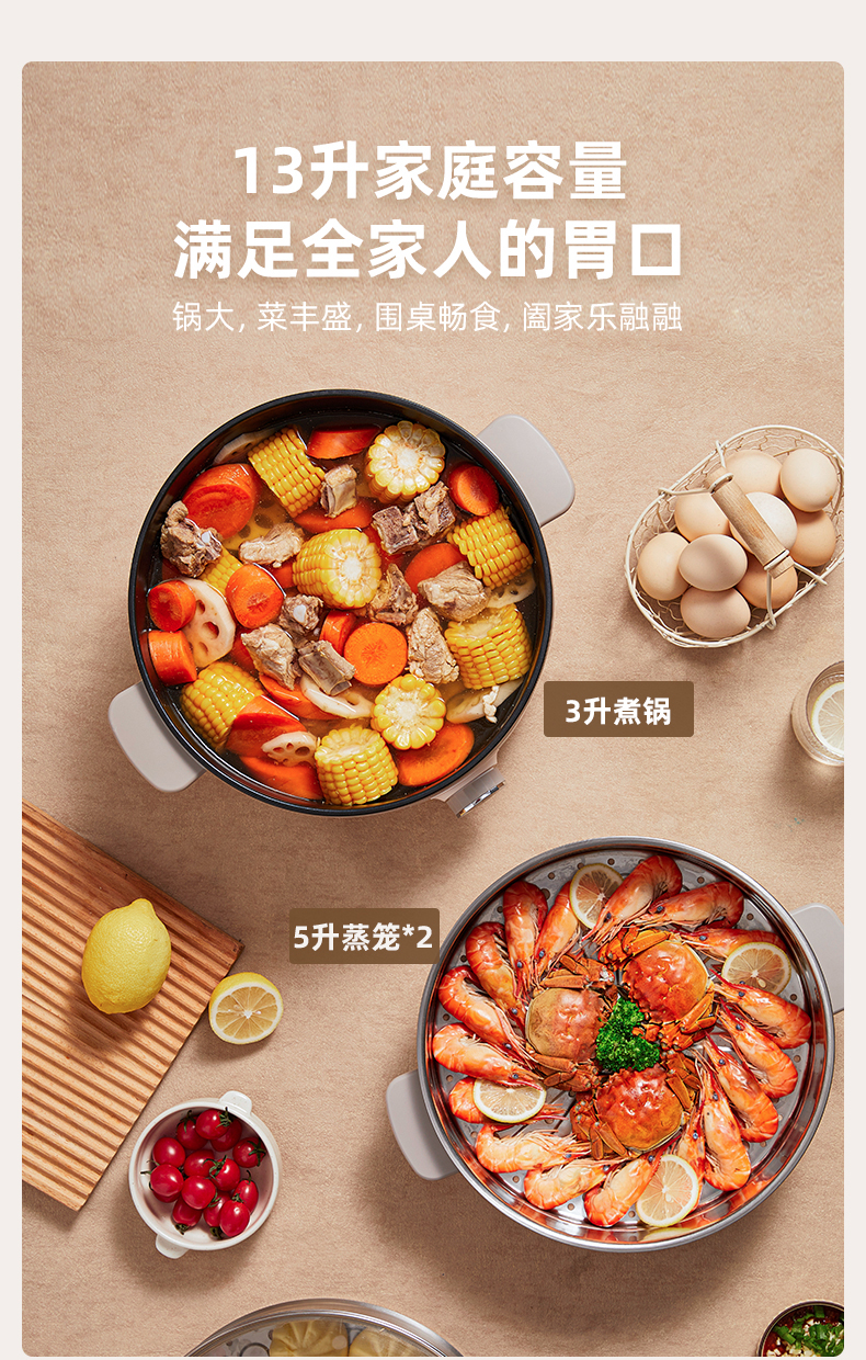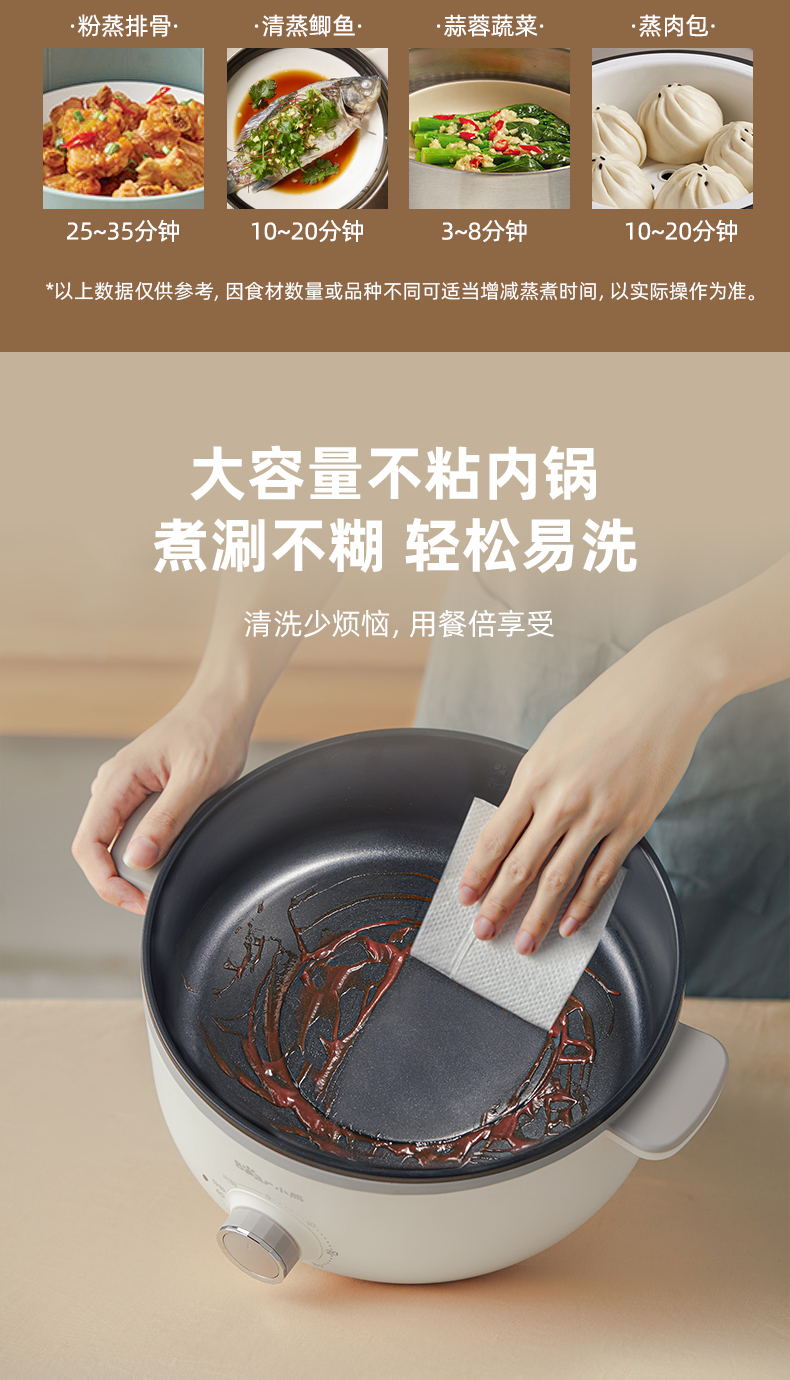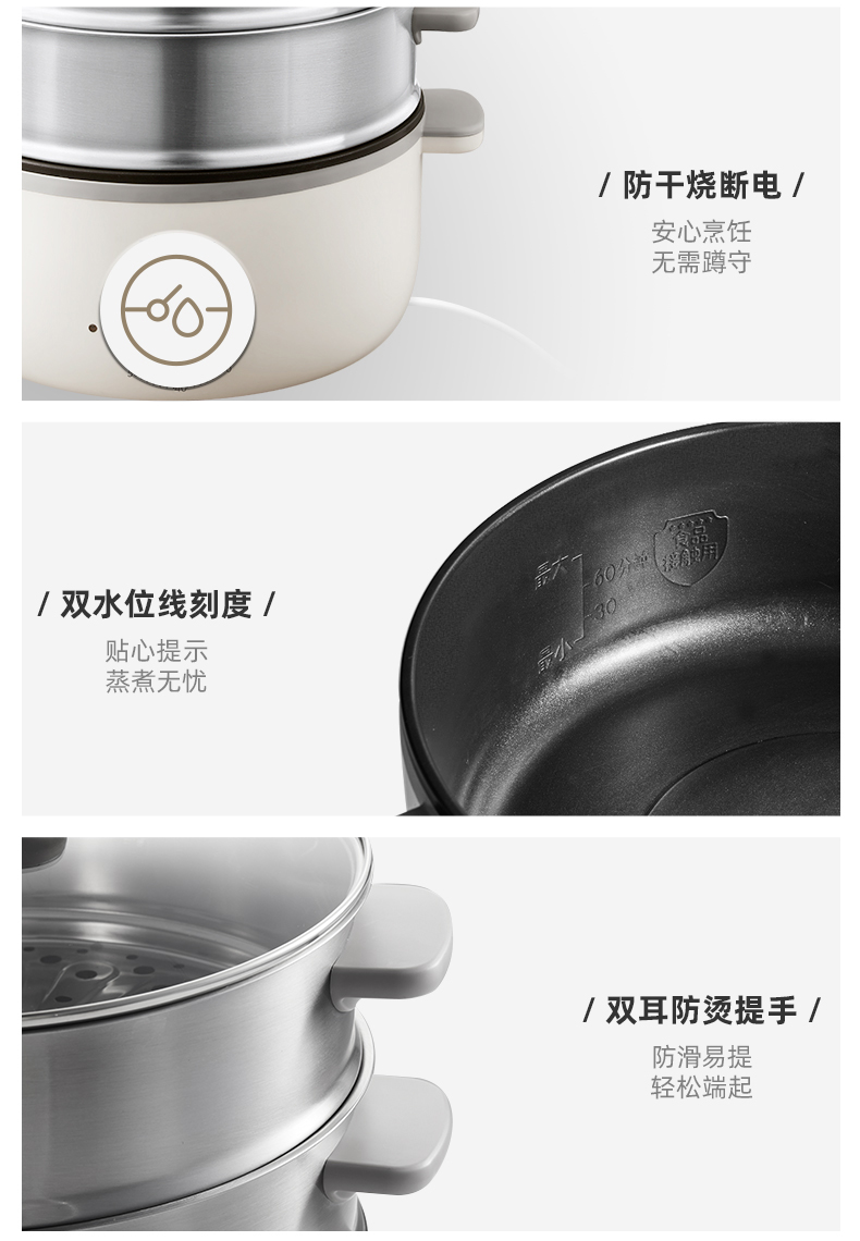【小程序】小熊电蒸锅 DZG-CA3A1 60分钟定时器+2个5L蒸笼+玻璃盖