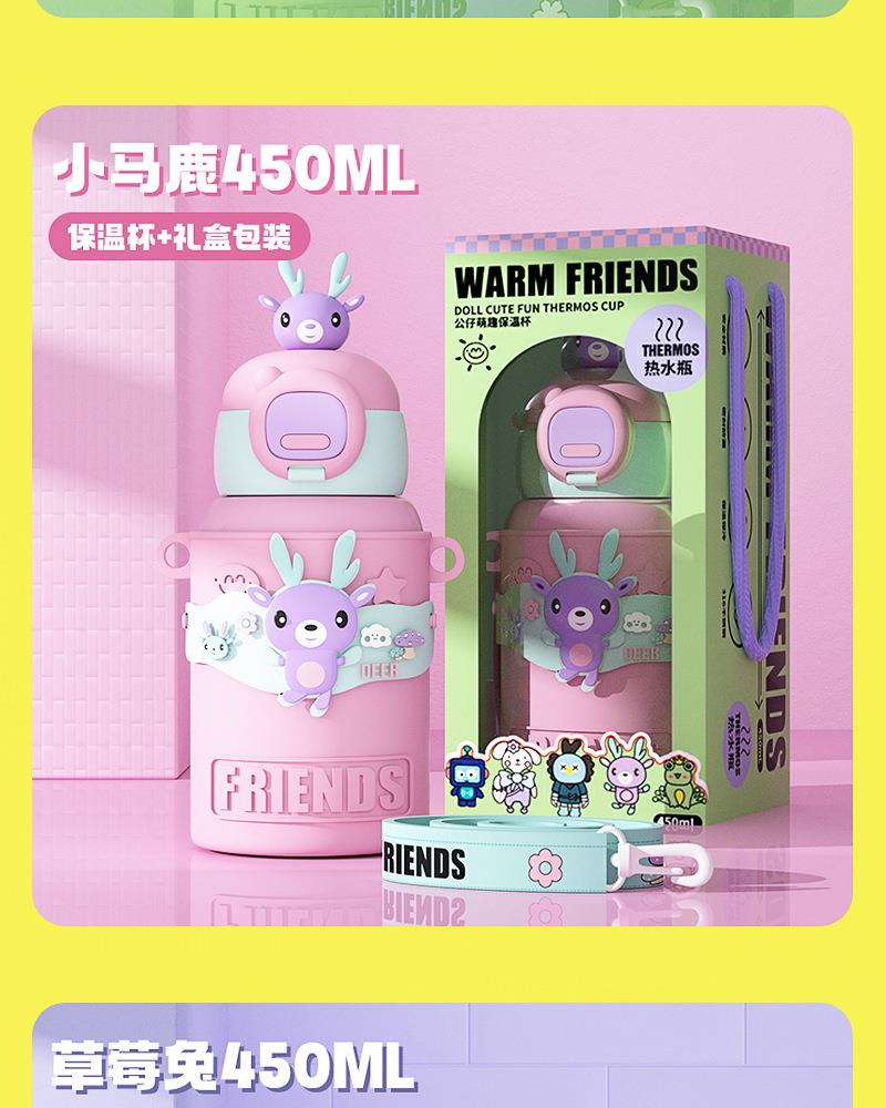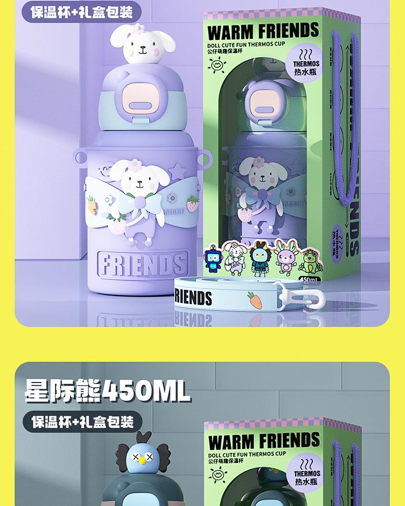 高颜值儿童公仔保温杯卡通可爱316不锈钢水杯便携防摔创意礼品杯