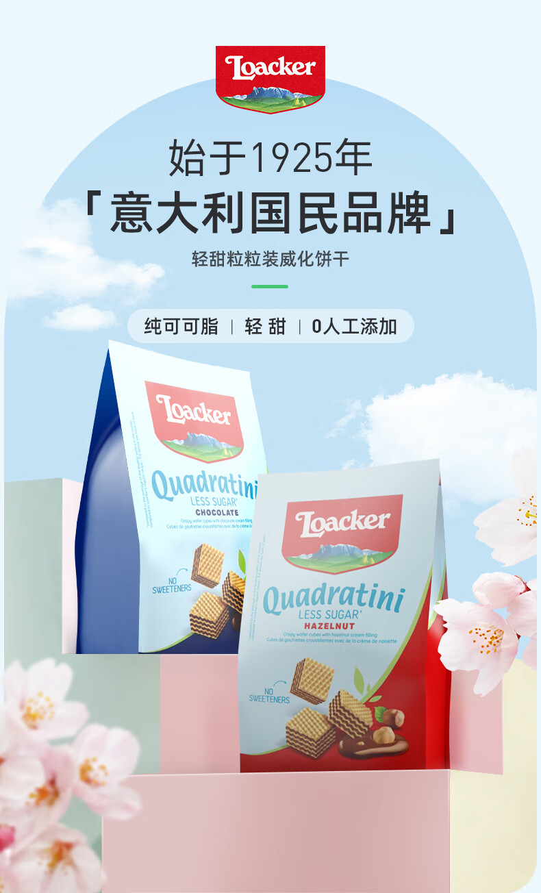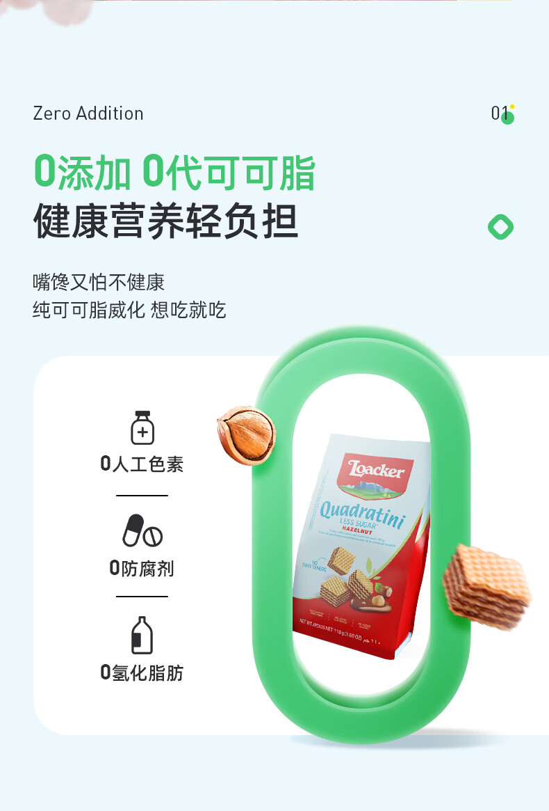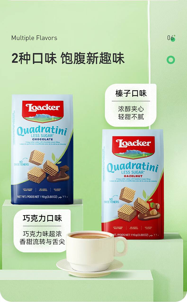 莱家轻甜型粒粒装威化110g 巧克力味/榛子味 纯可可脂 轻甜 057327/057328