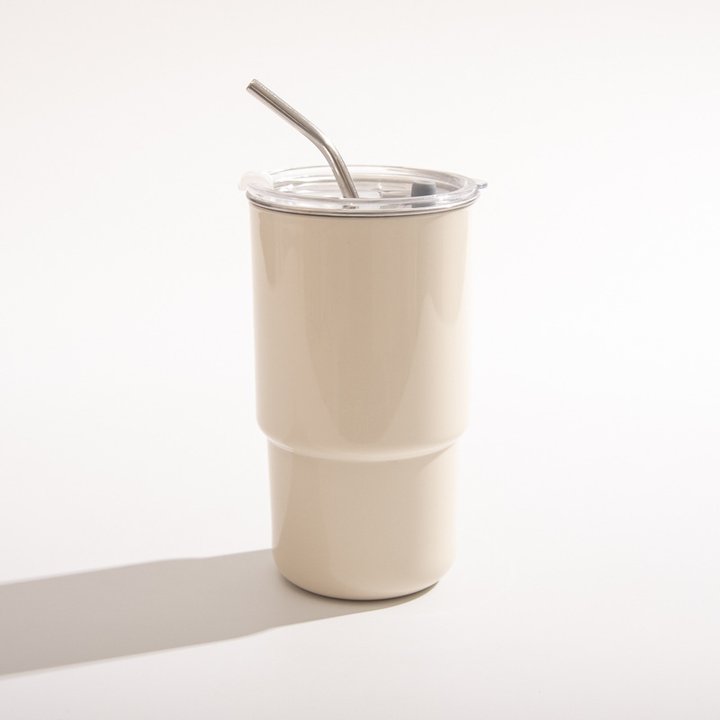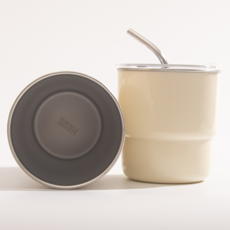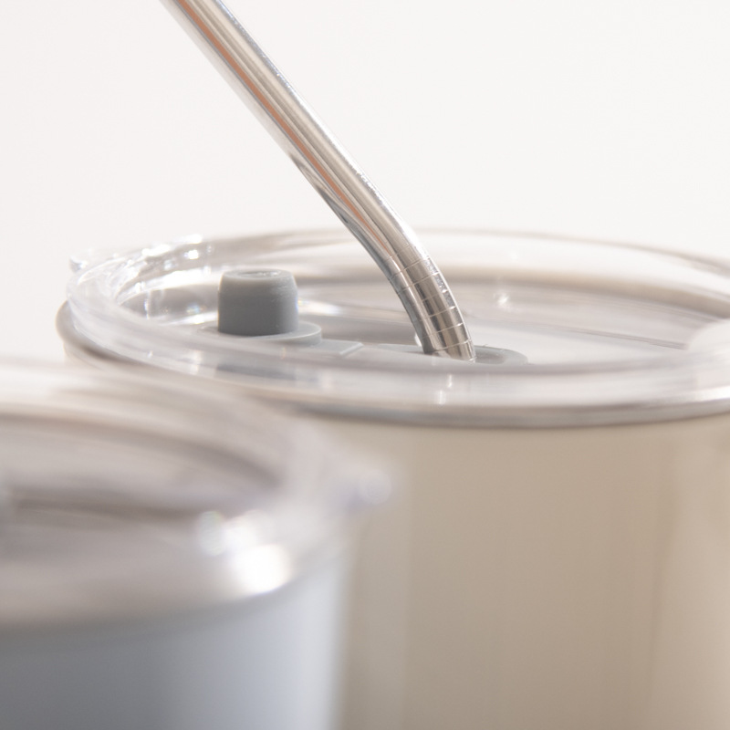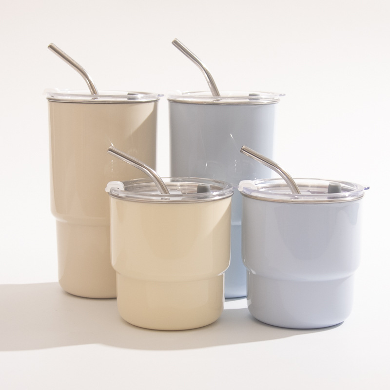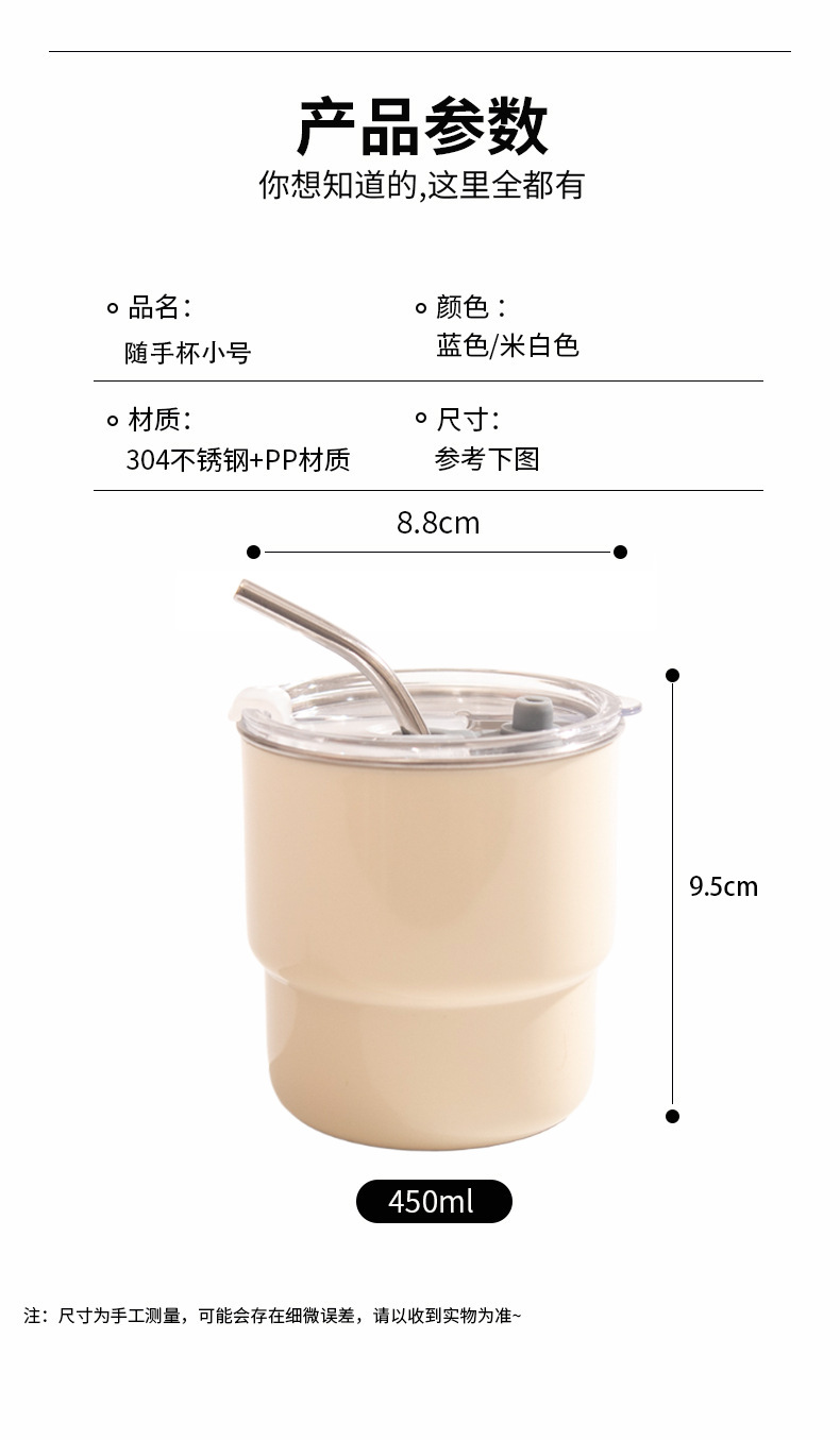 【吸管随手杯】随手杯纯色咖啡吸管水杯漱口杯子不锈钢内胆带盖喝水