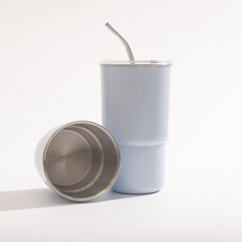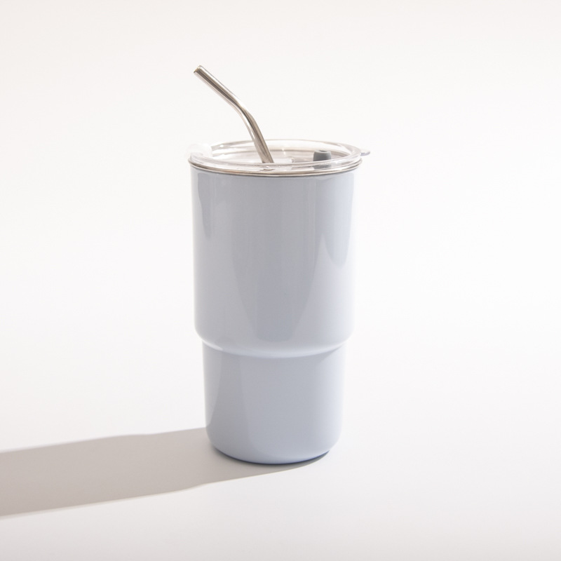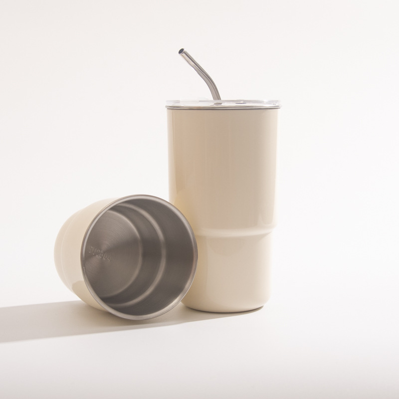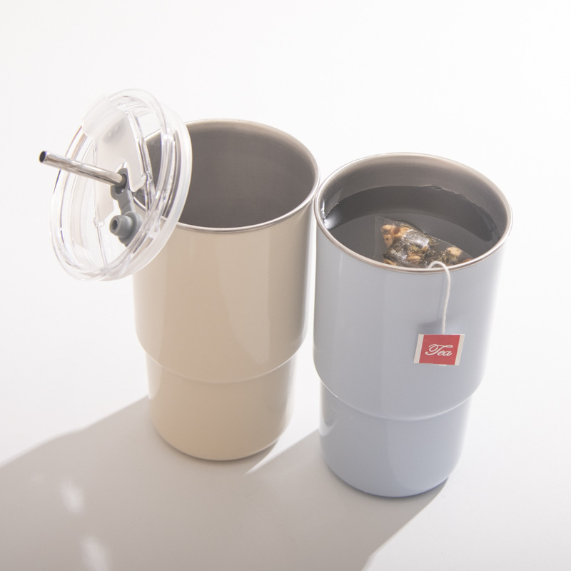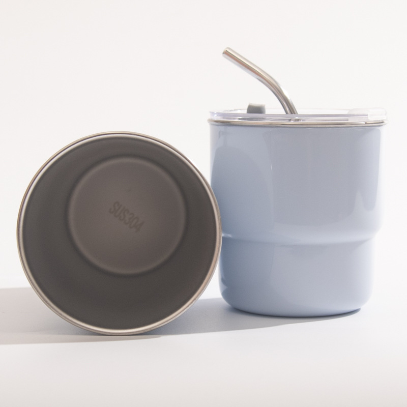 【吸管随手杯】随手杯纯色咖啡吸管水杯漱口杯子不锈钢内胆带盖喝水