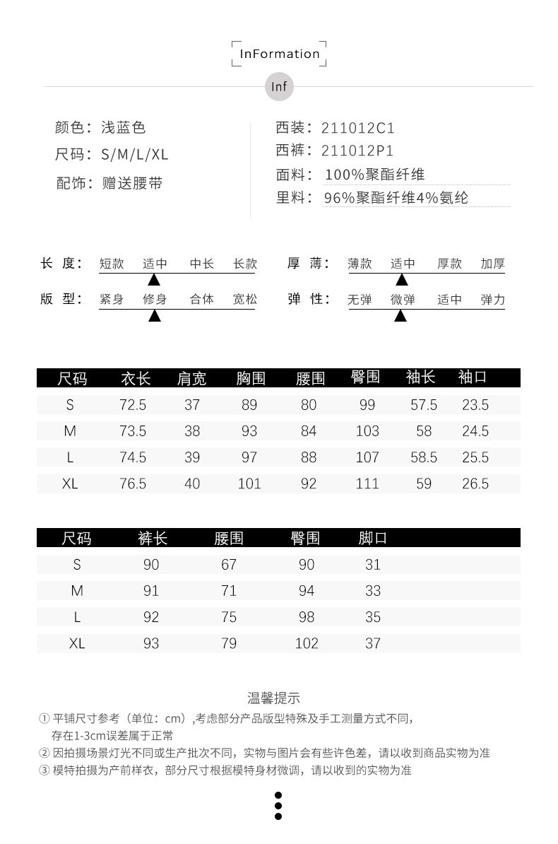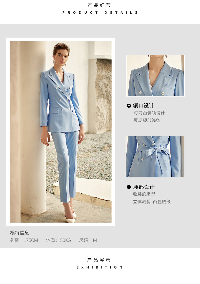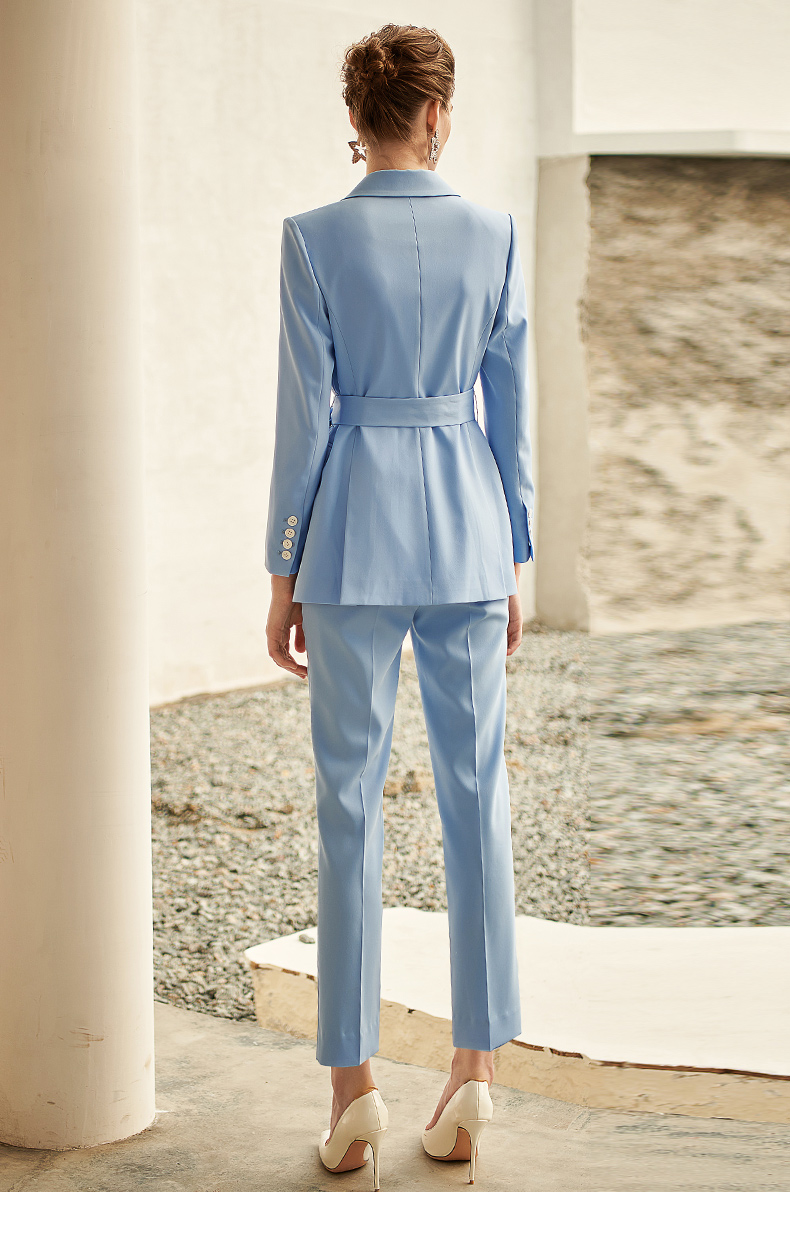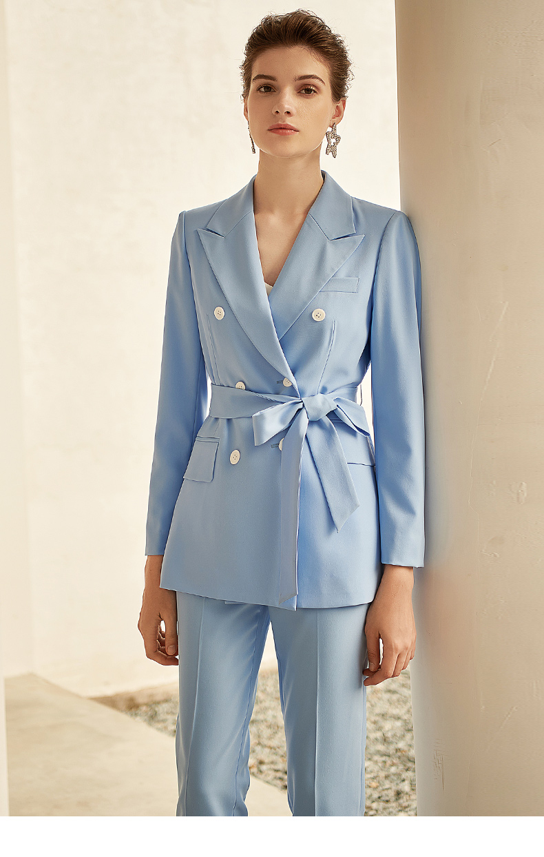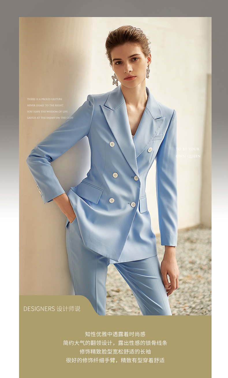 IWY/高端时尚总裁蓝色西装套装气质洋气戗驳领西服商务正装套裤211012C1+P1
