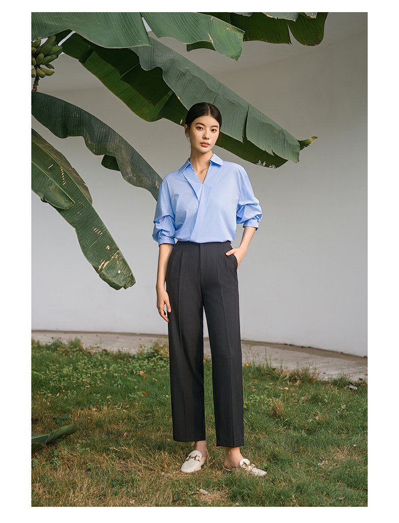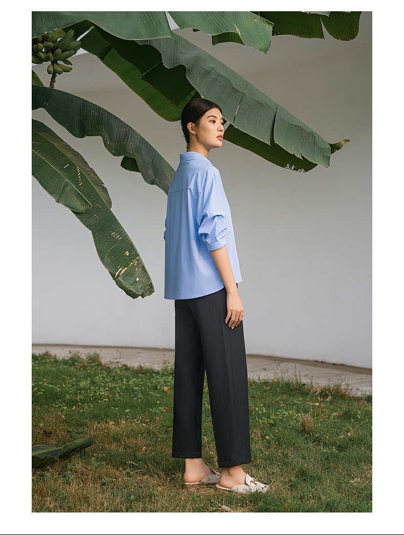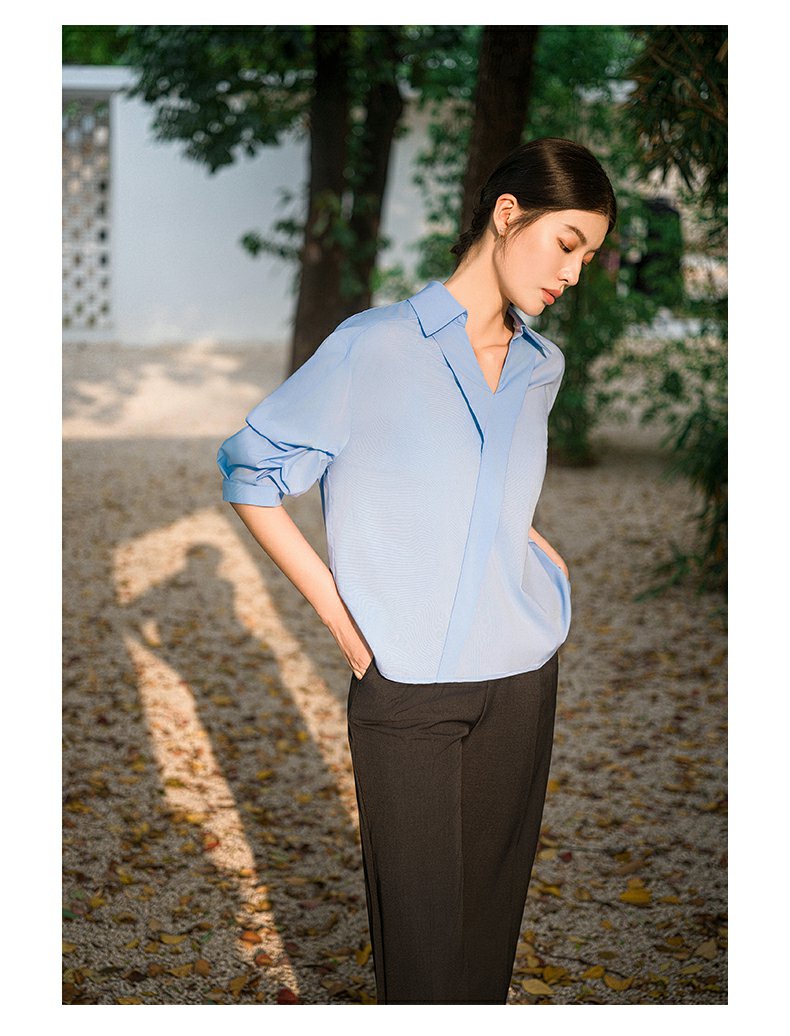 IWY/蓝色长袖衬衫女夏季新款通勤防晒正装衬衣休闲百搭白领上衣B14230