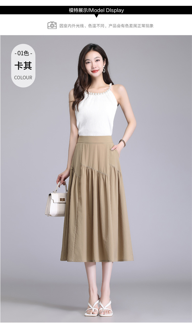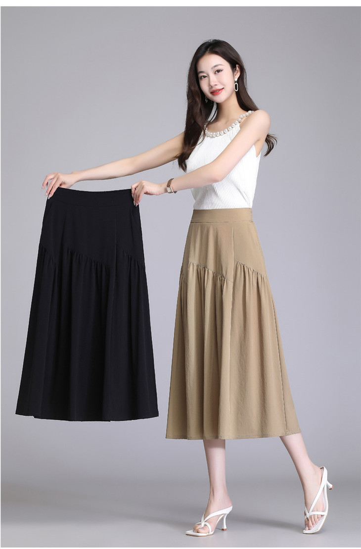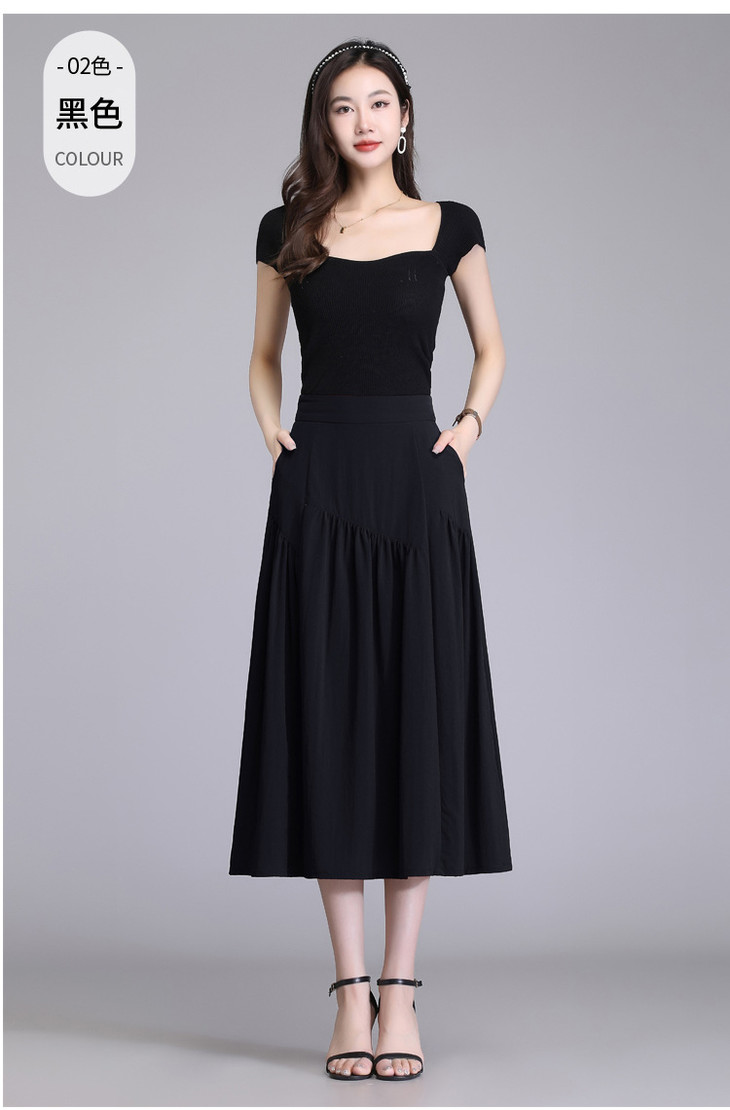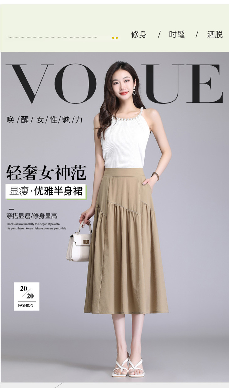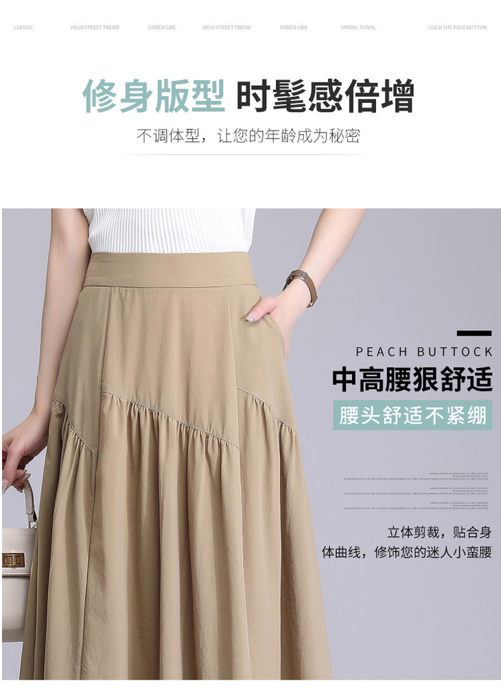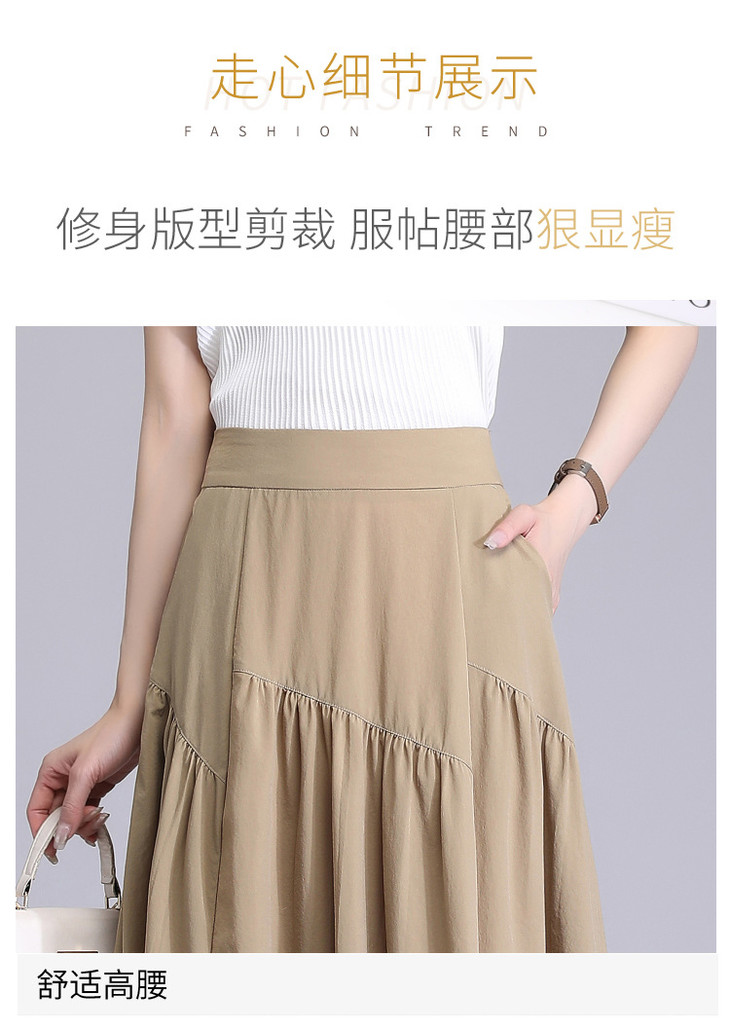 夏款百褶拼接时尚修身A字大摆裙松紧腰MYX-98173