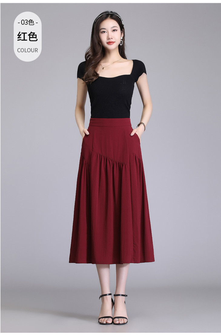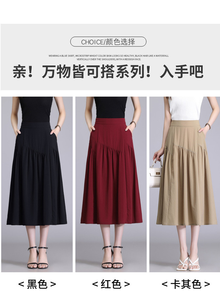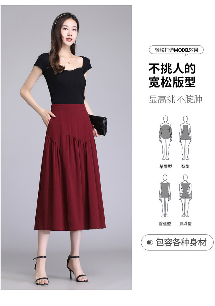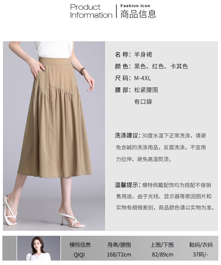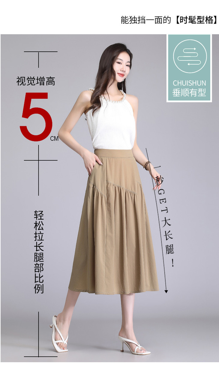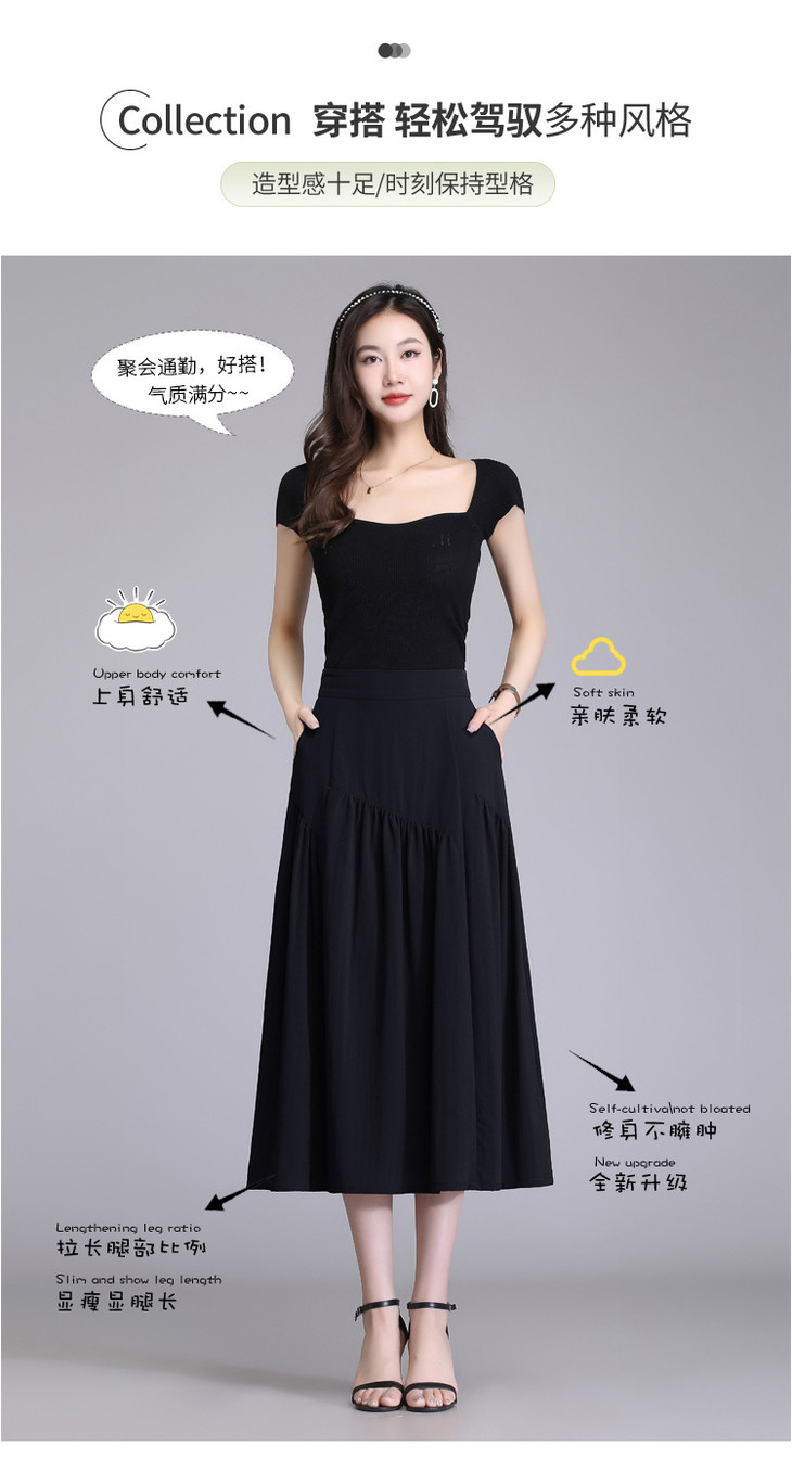 夏款百褶拼接时尚修身A字大摆裙松紧腰MYX-98173