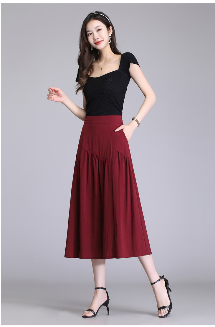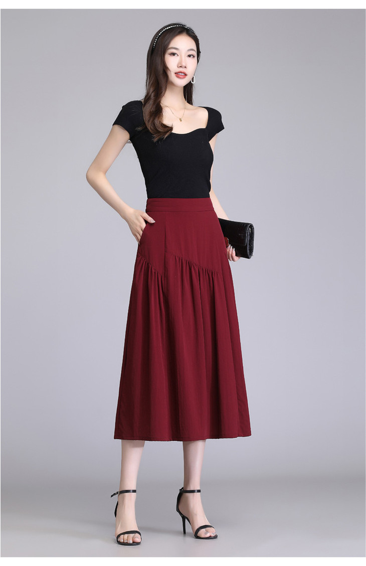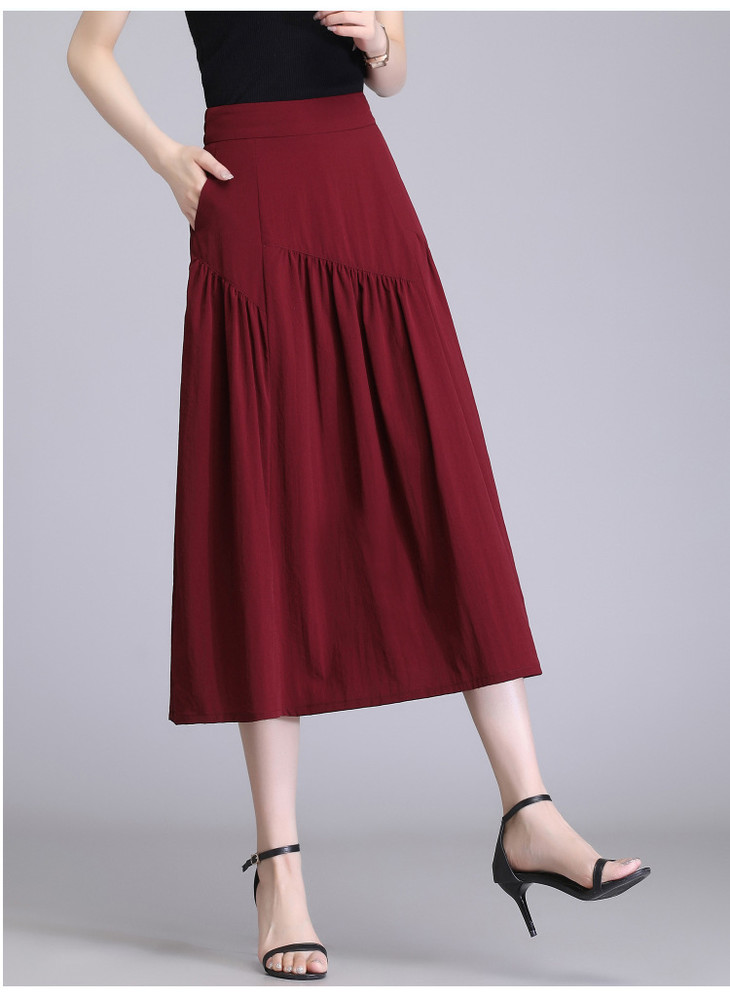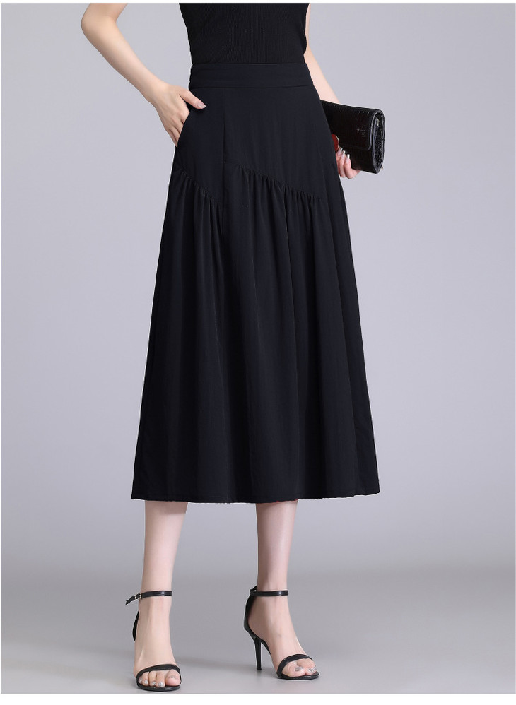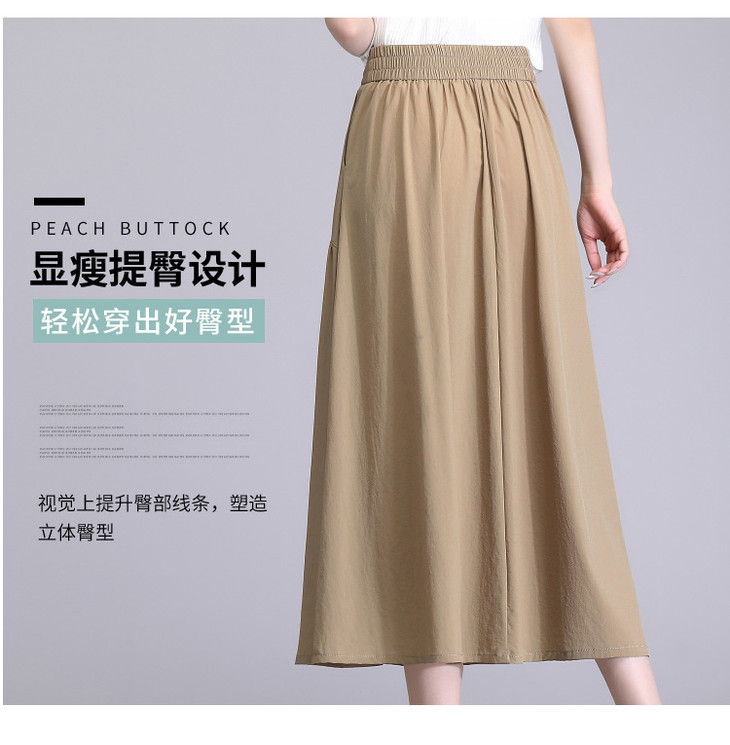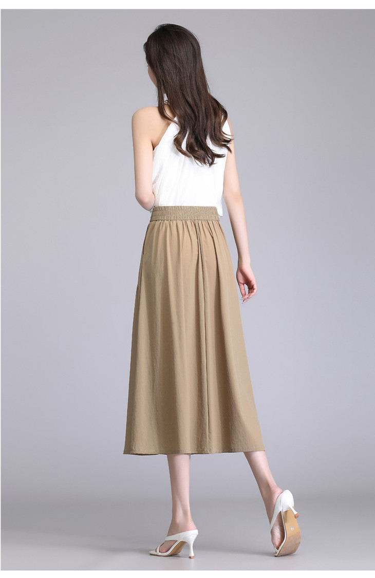 夏款百褶拼接时尚修身A字大摆裙松紧腰MYX-98173