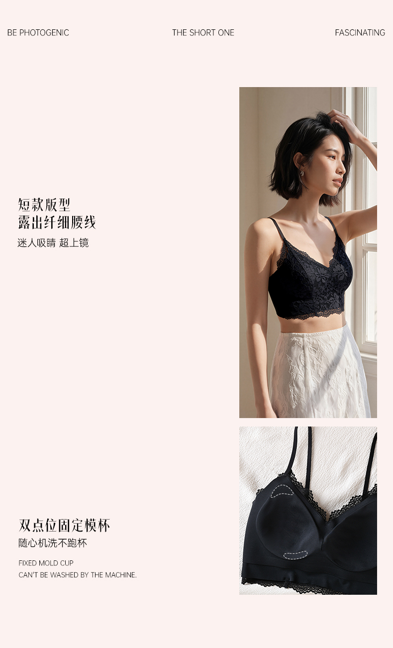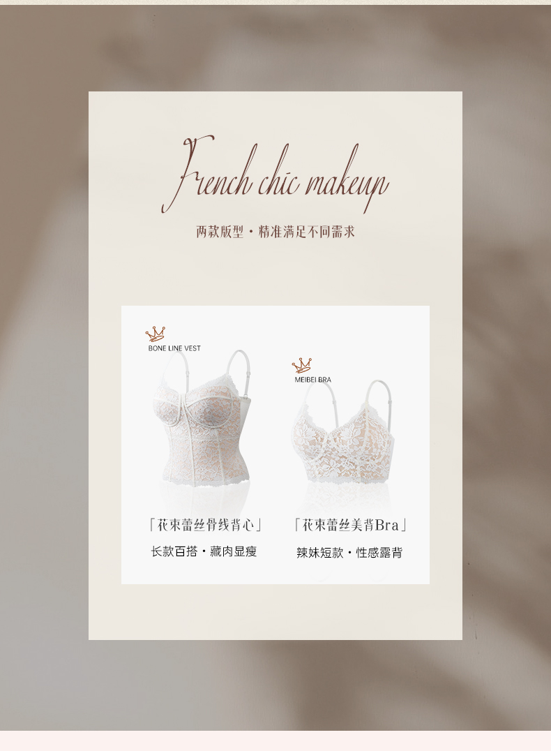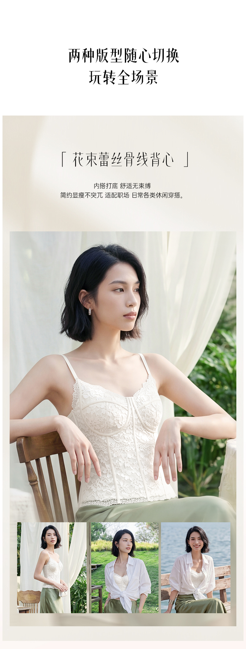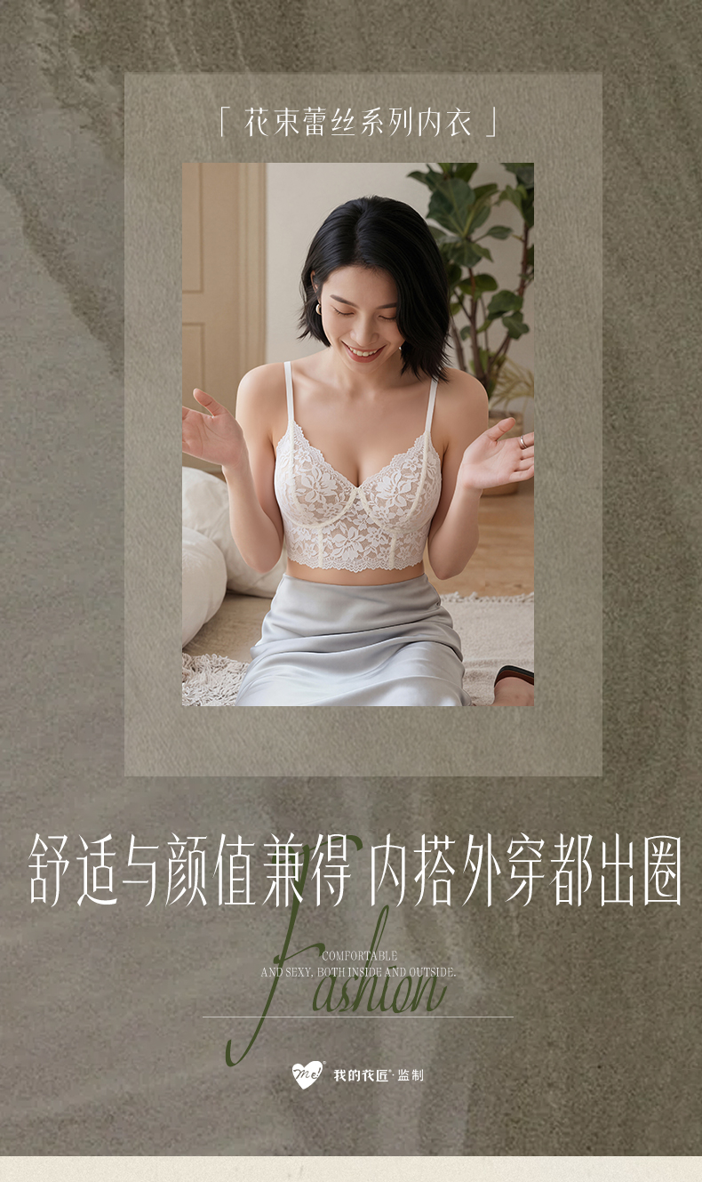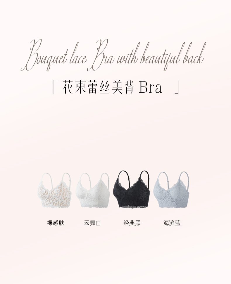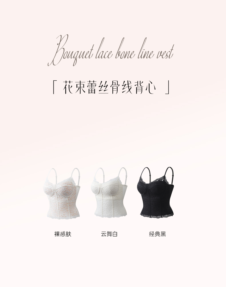 “下单赠原素感内裤1条”我的花匠Me 花束蕾丝美背/花束蕾丝骨线背心yc0413002