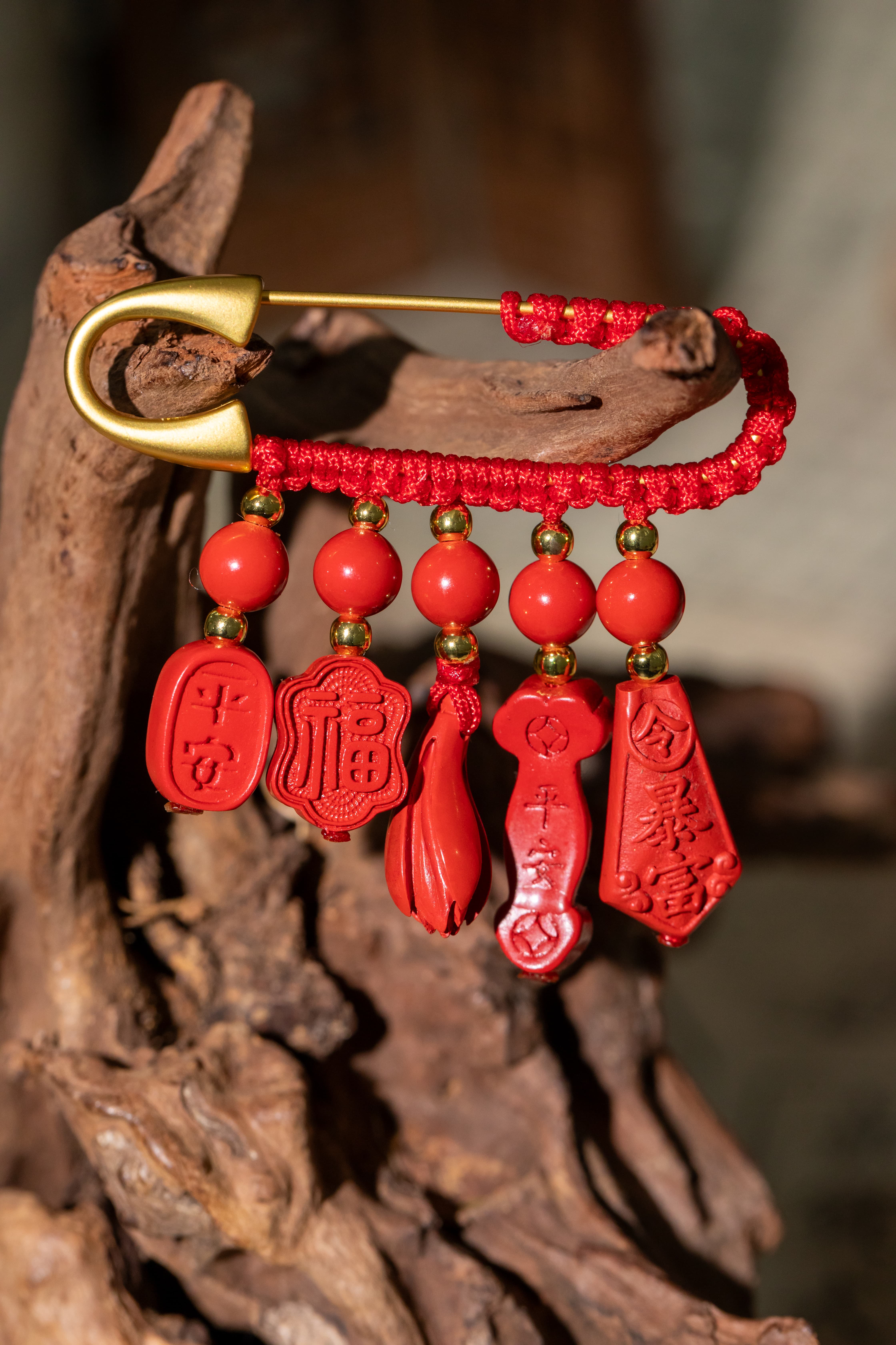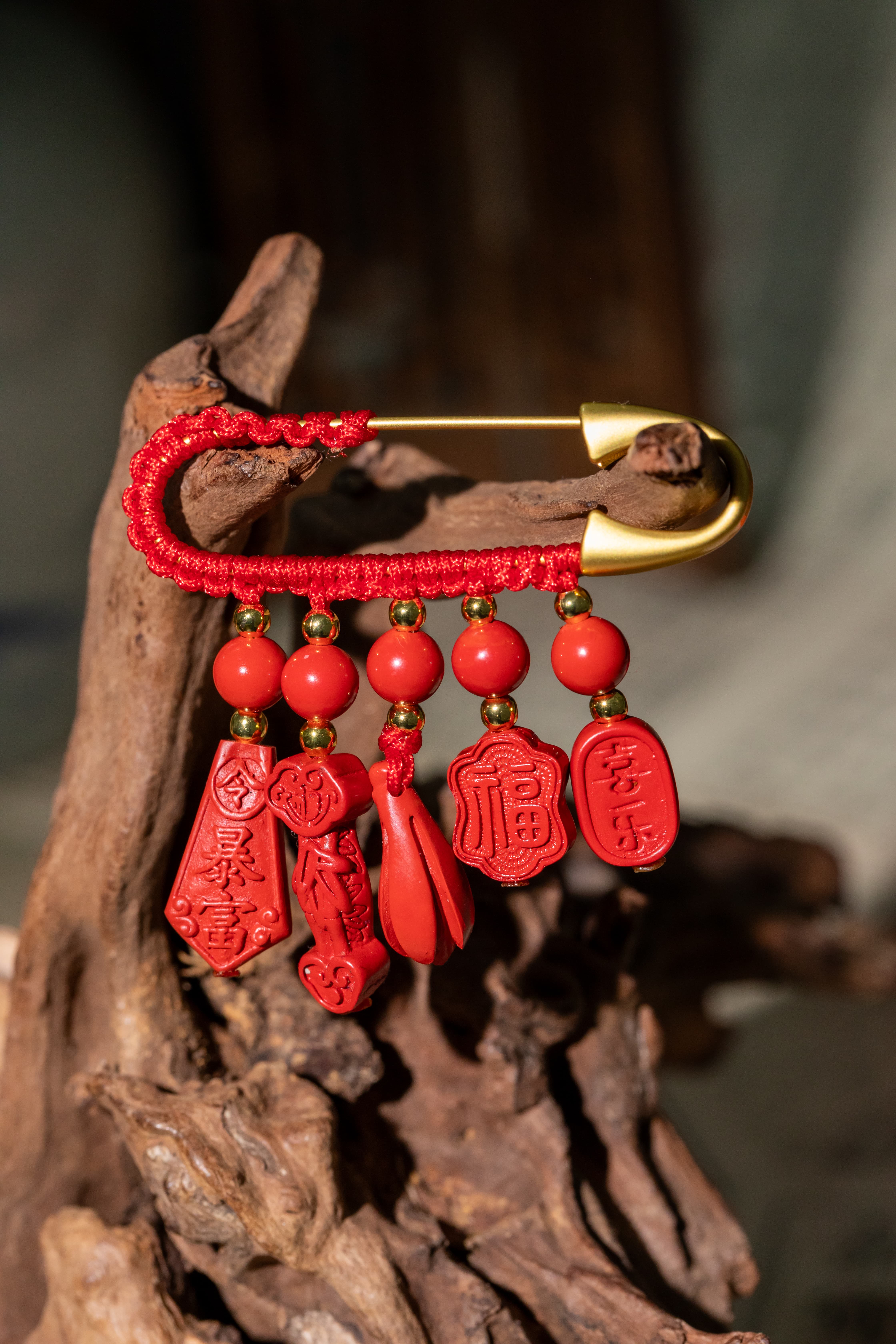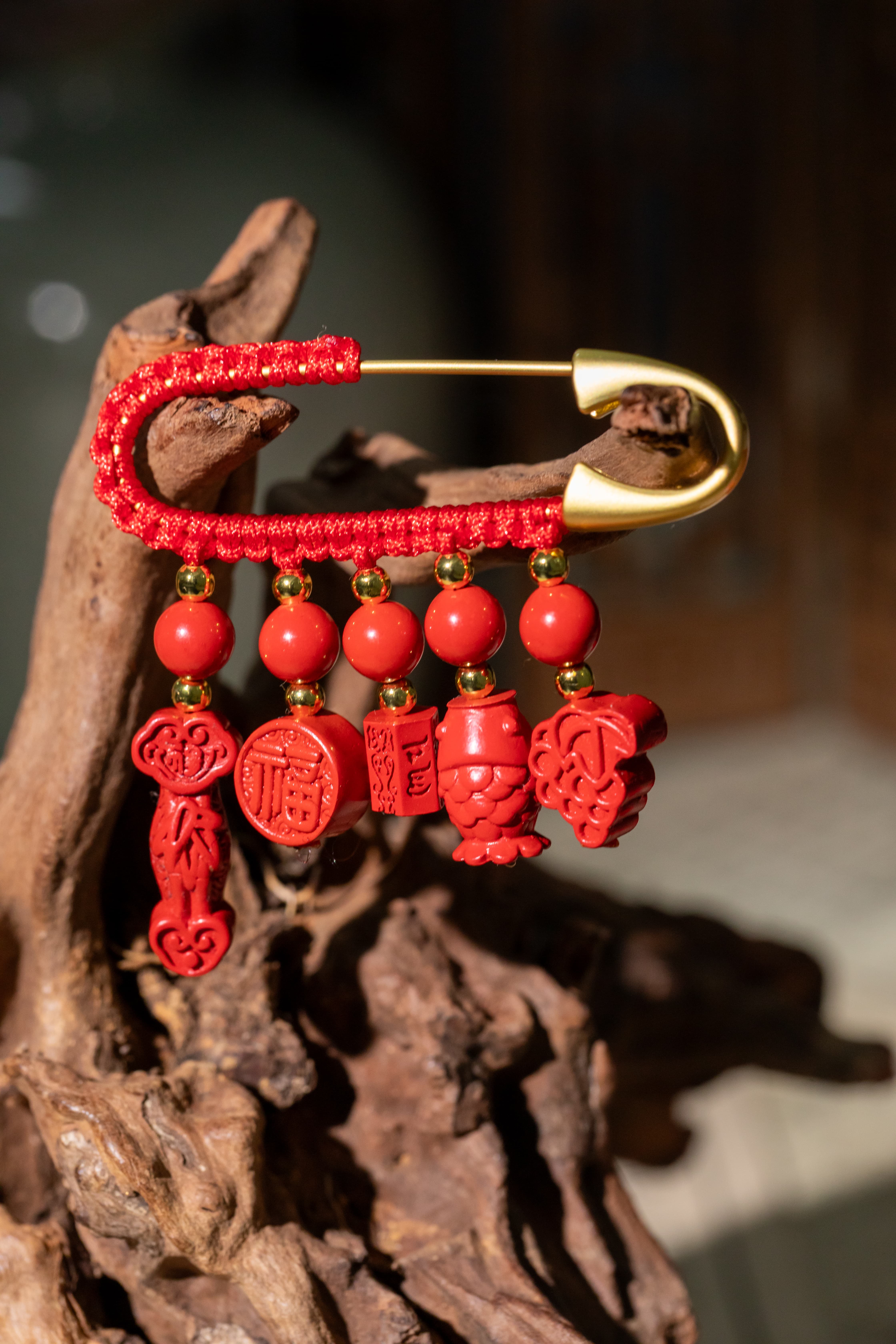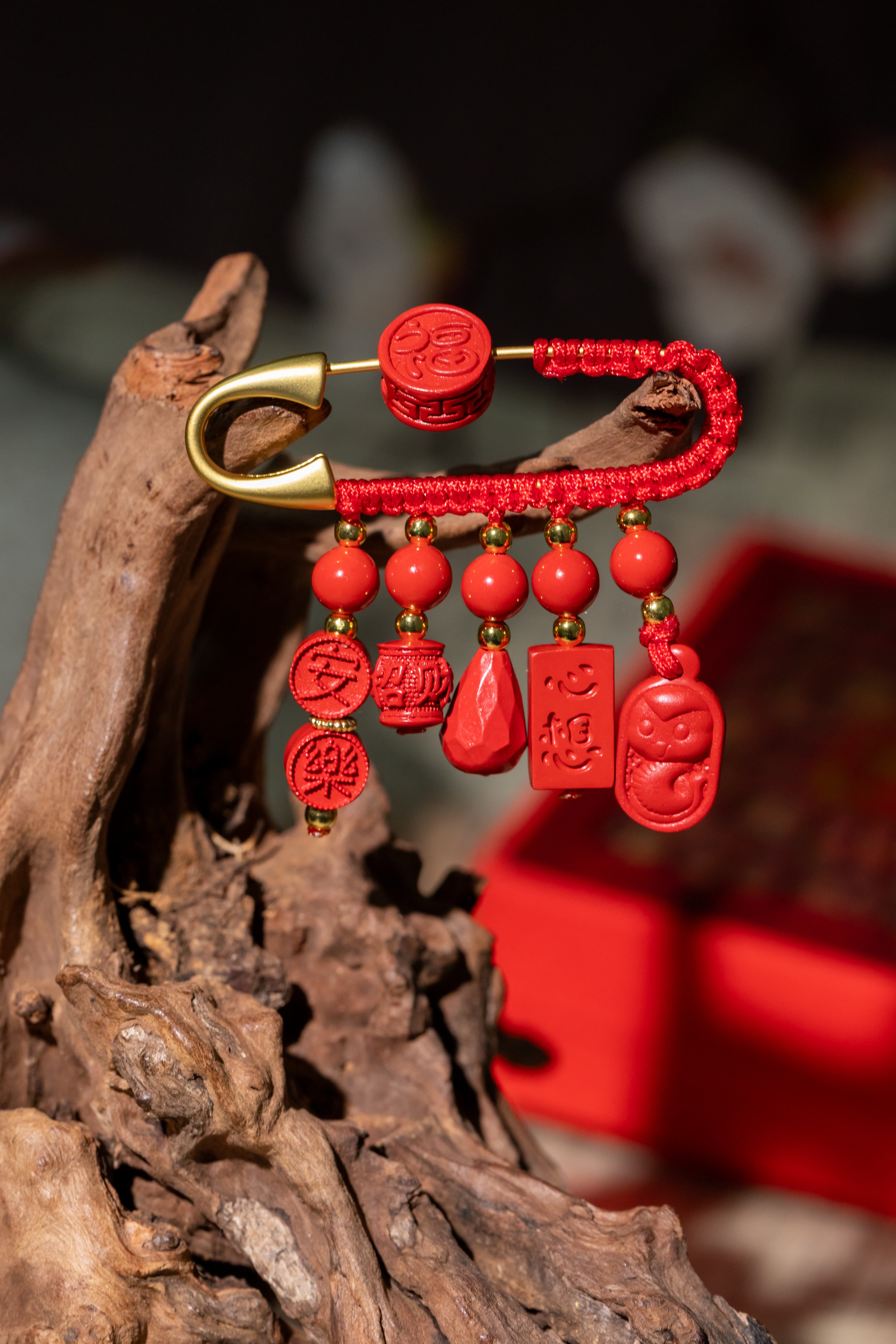 【朱砂 压惊别针】别针尺寸50*40mm,高含量朱砂,求好运,“戴”好运,得好运!湖南湘西朱砂原石