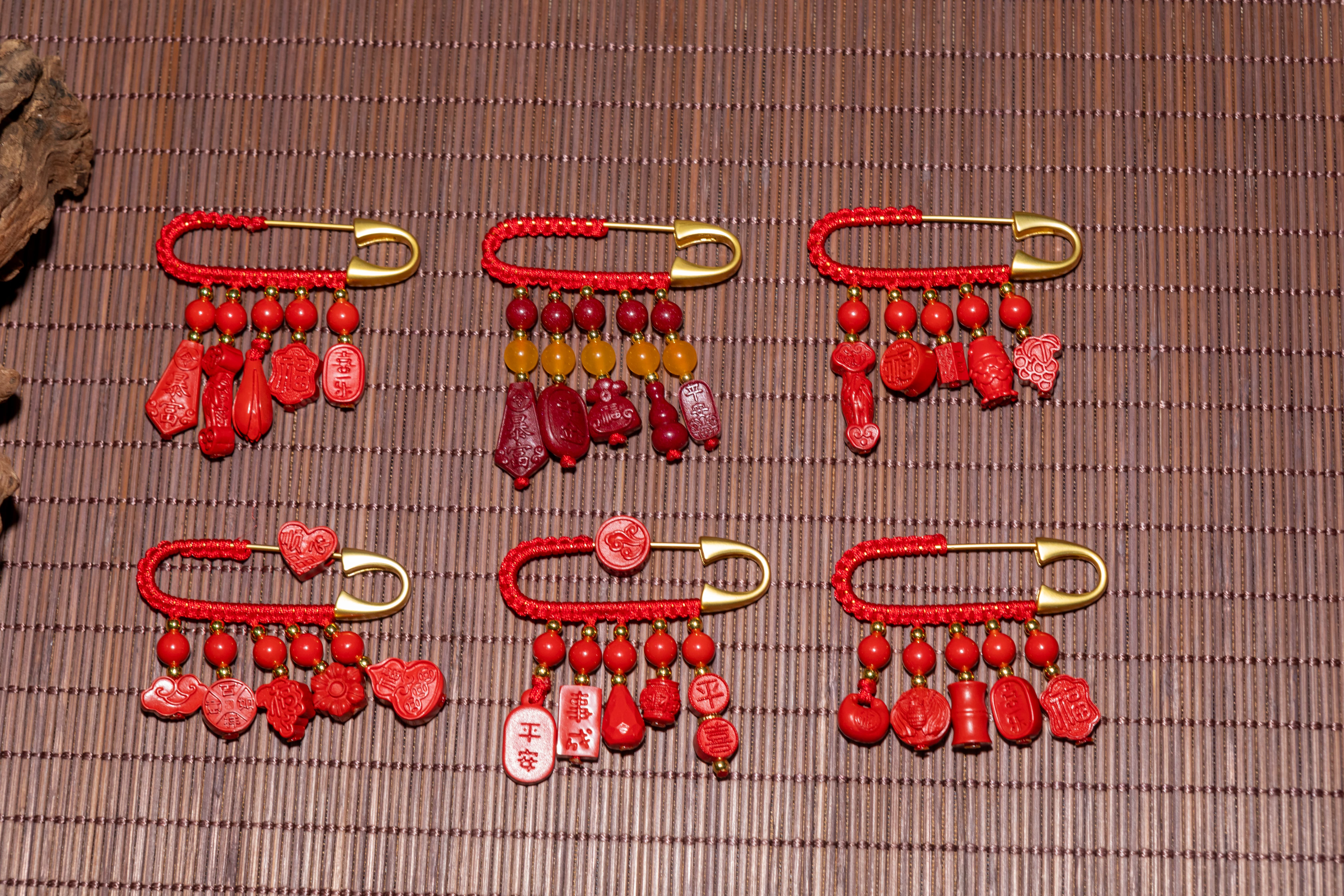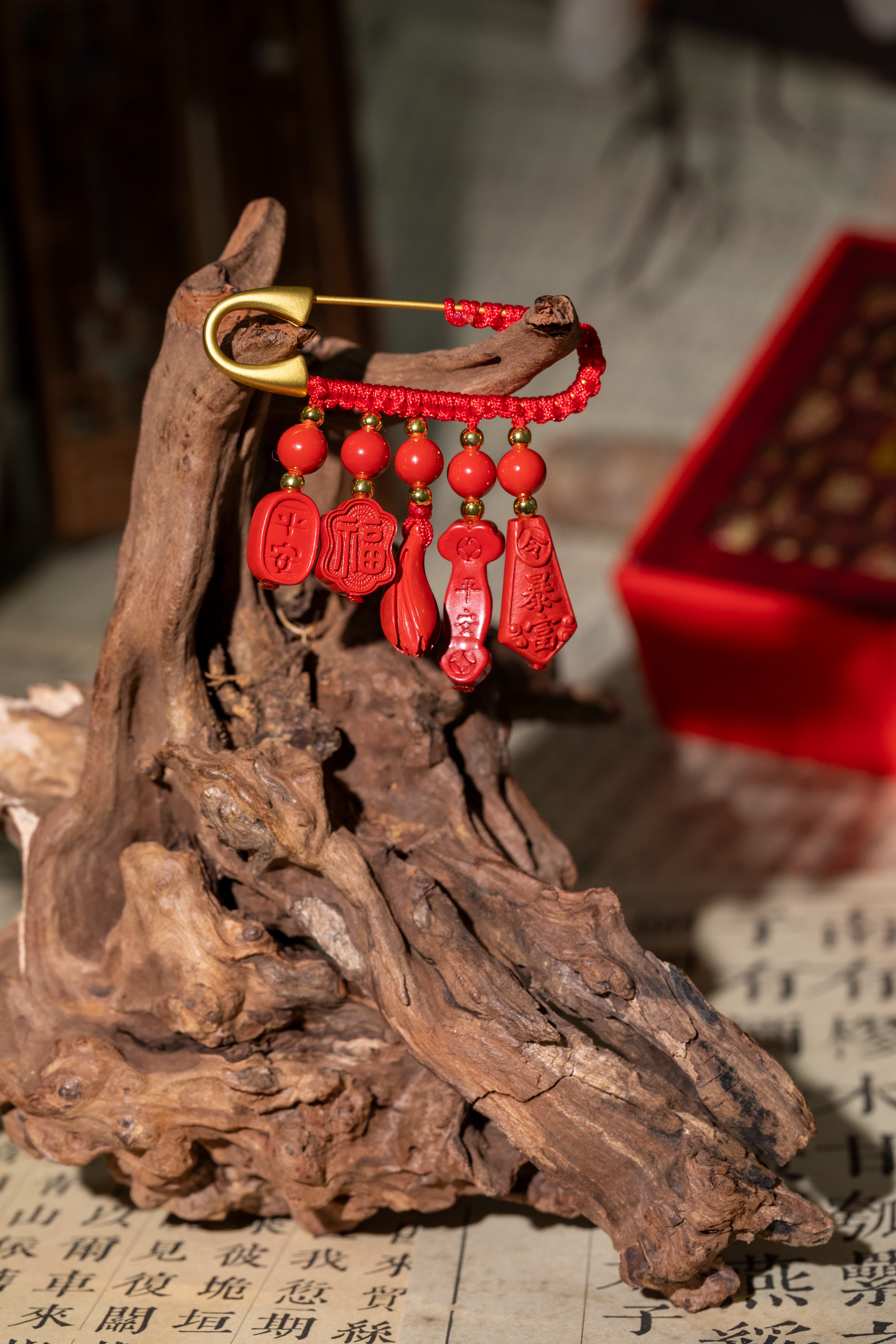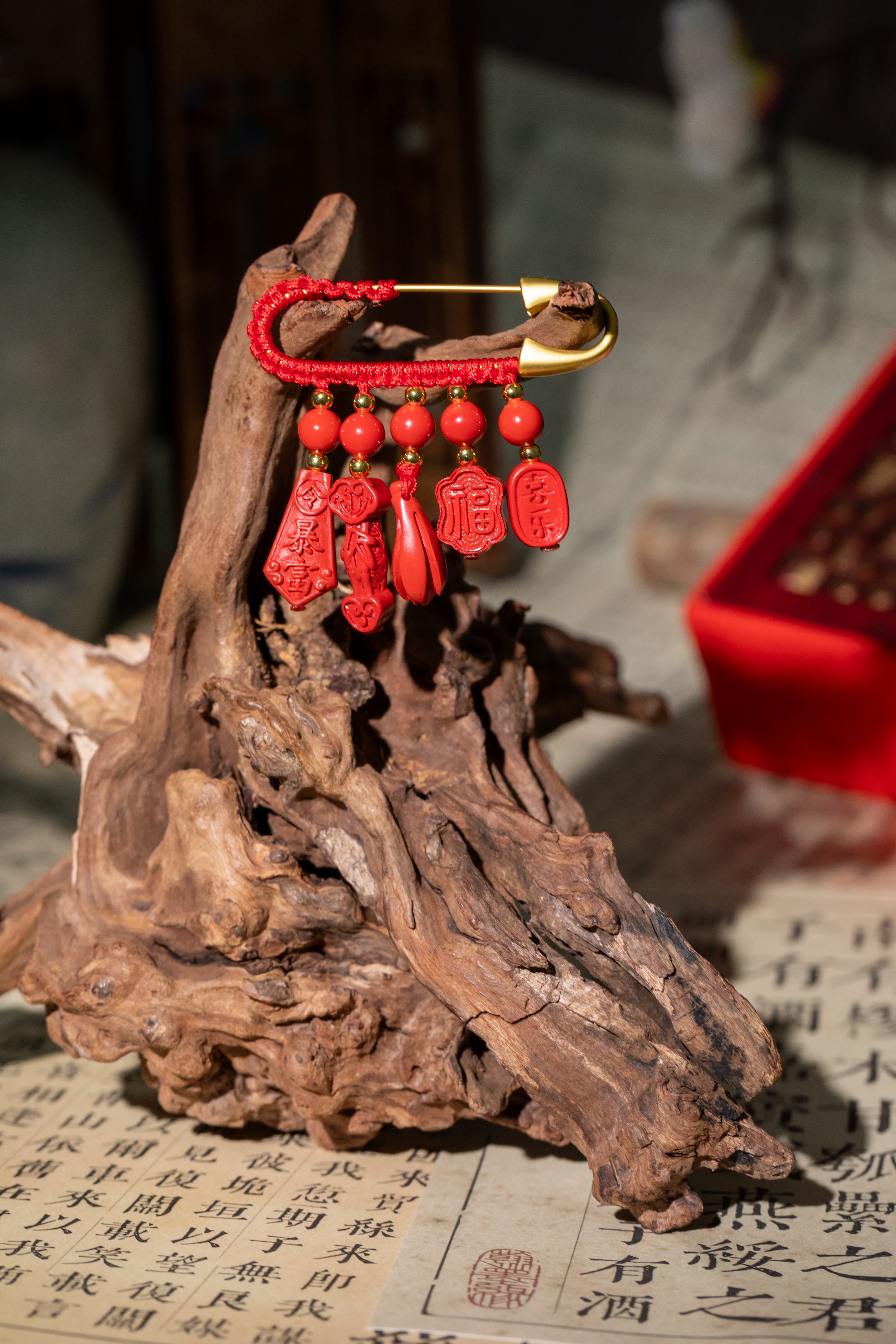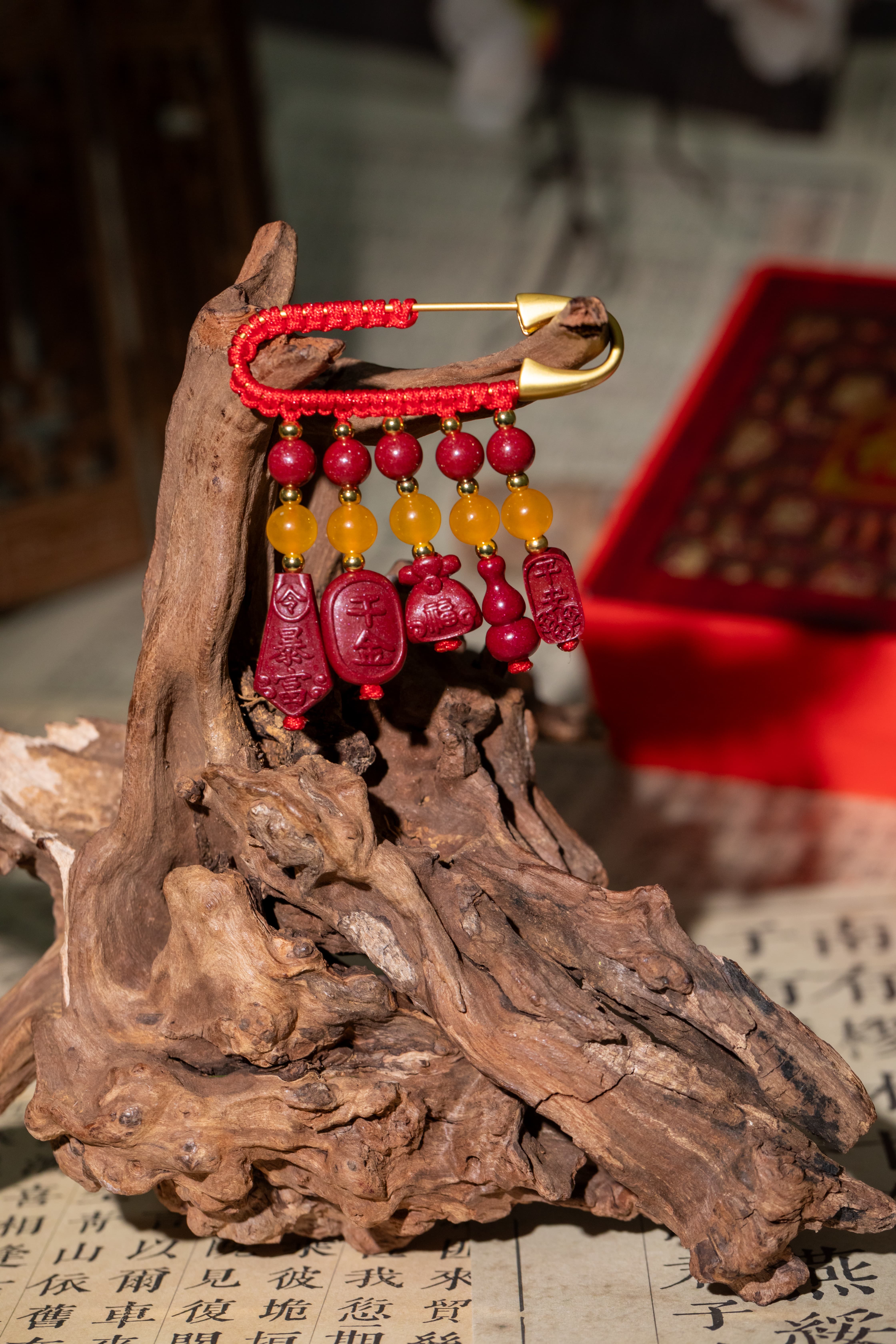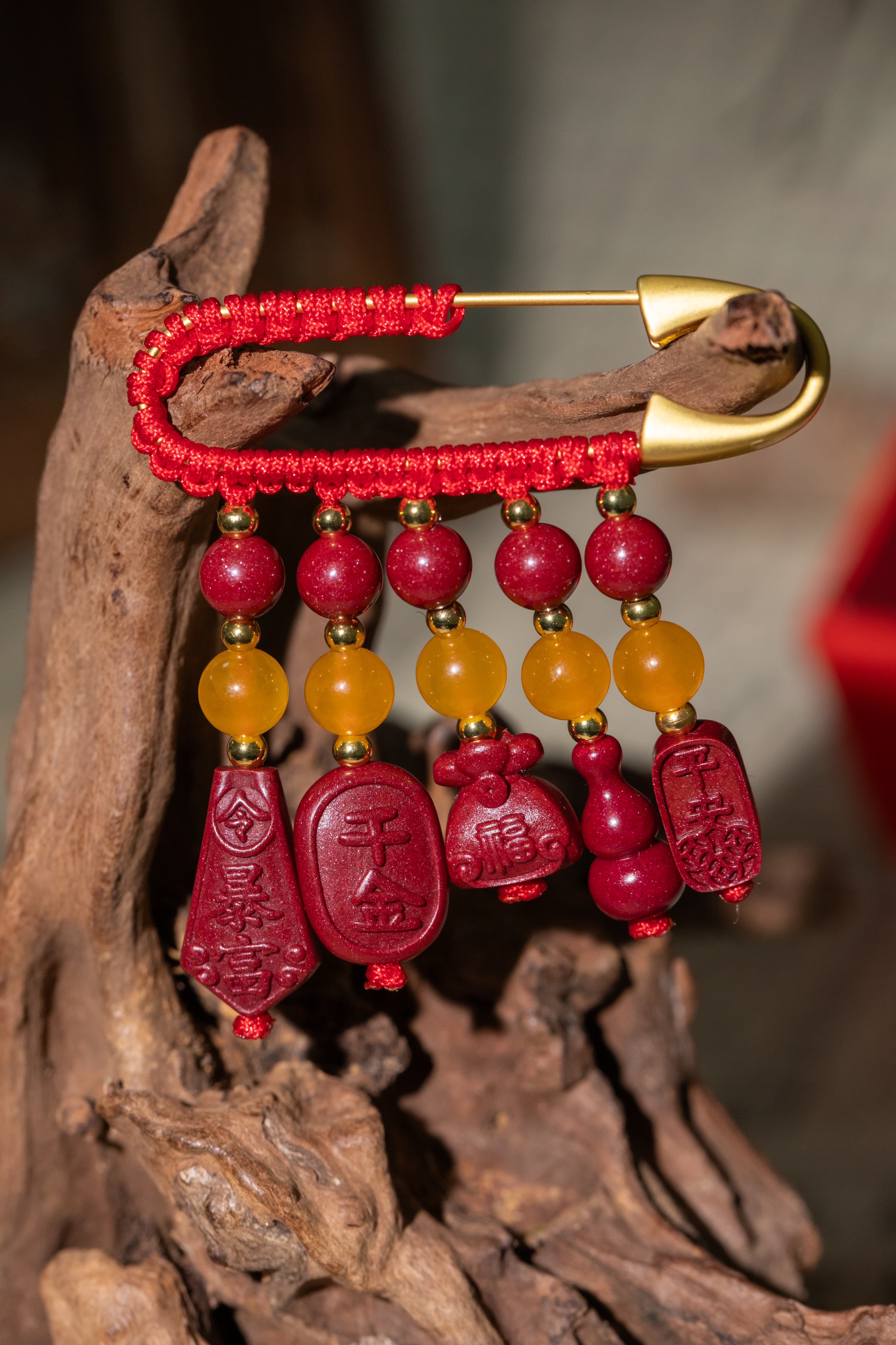 【朱砂 压惊别针】别针尺寸50*40mm,高含量朱砂,求好运,“戴”好运,得好运!湖南湘西朱砂原石