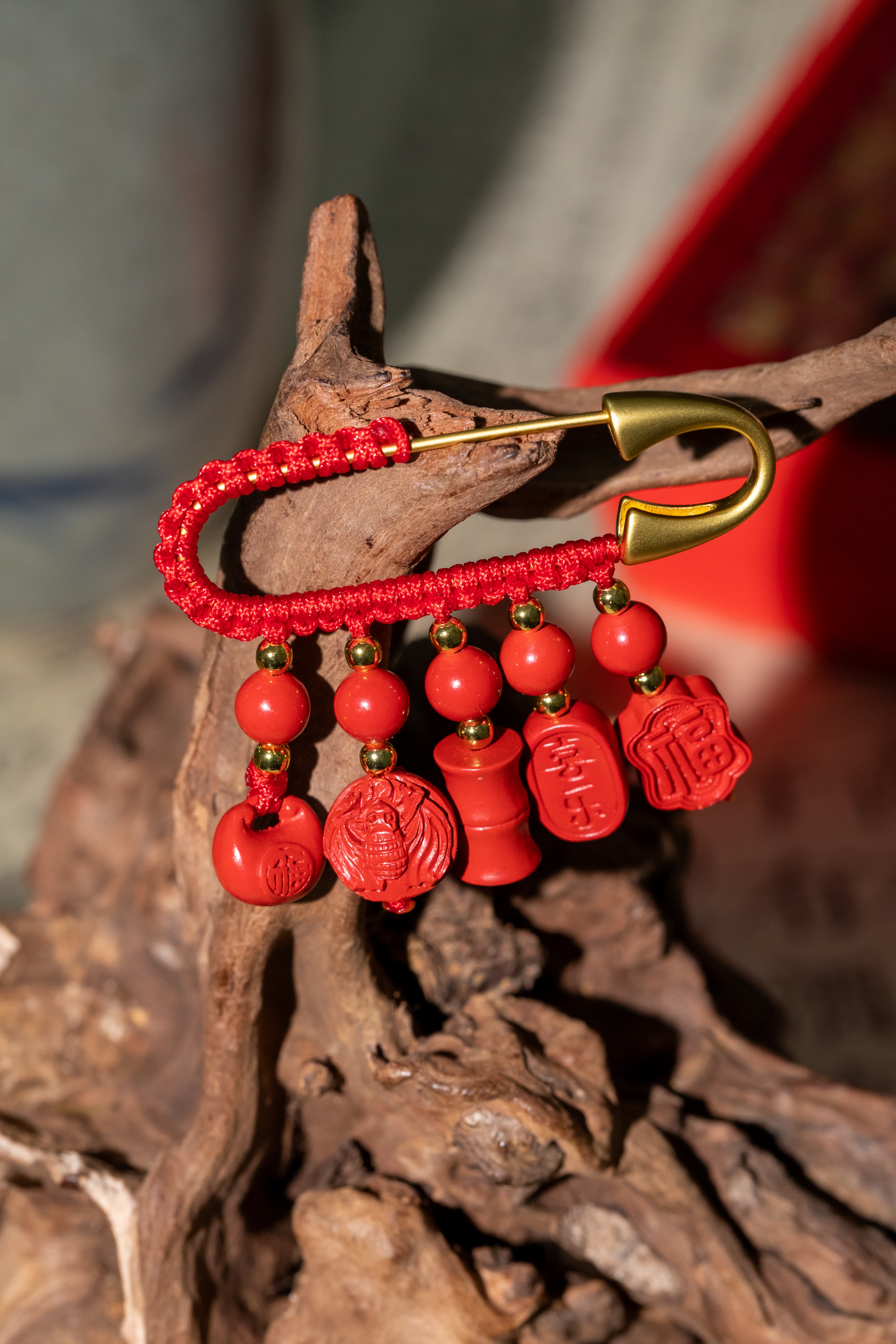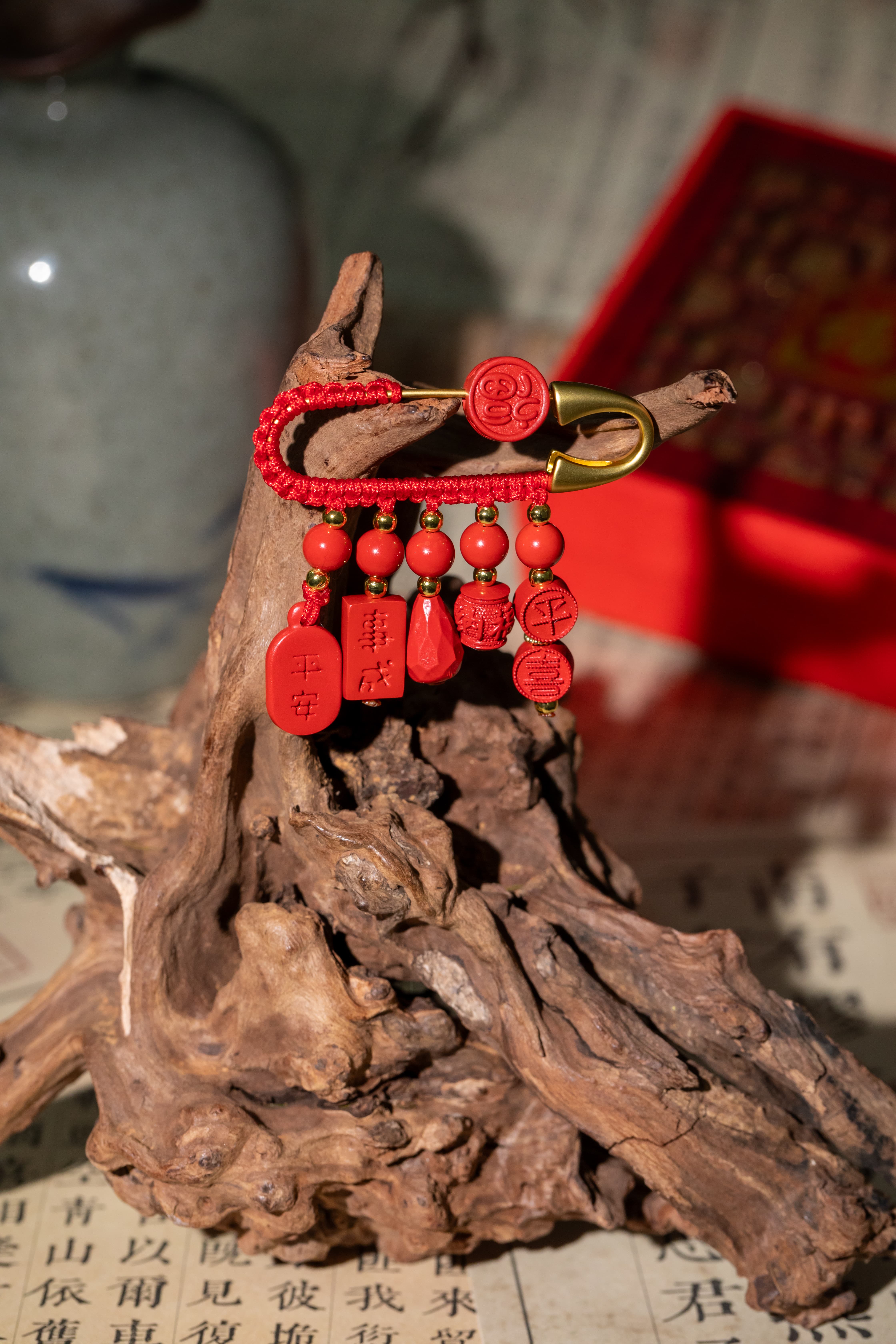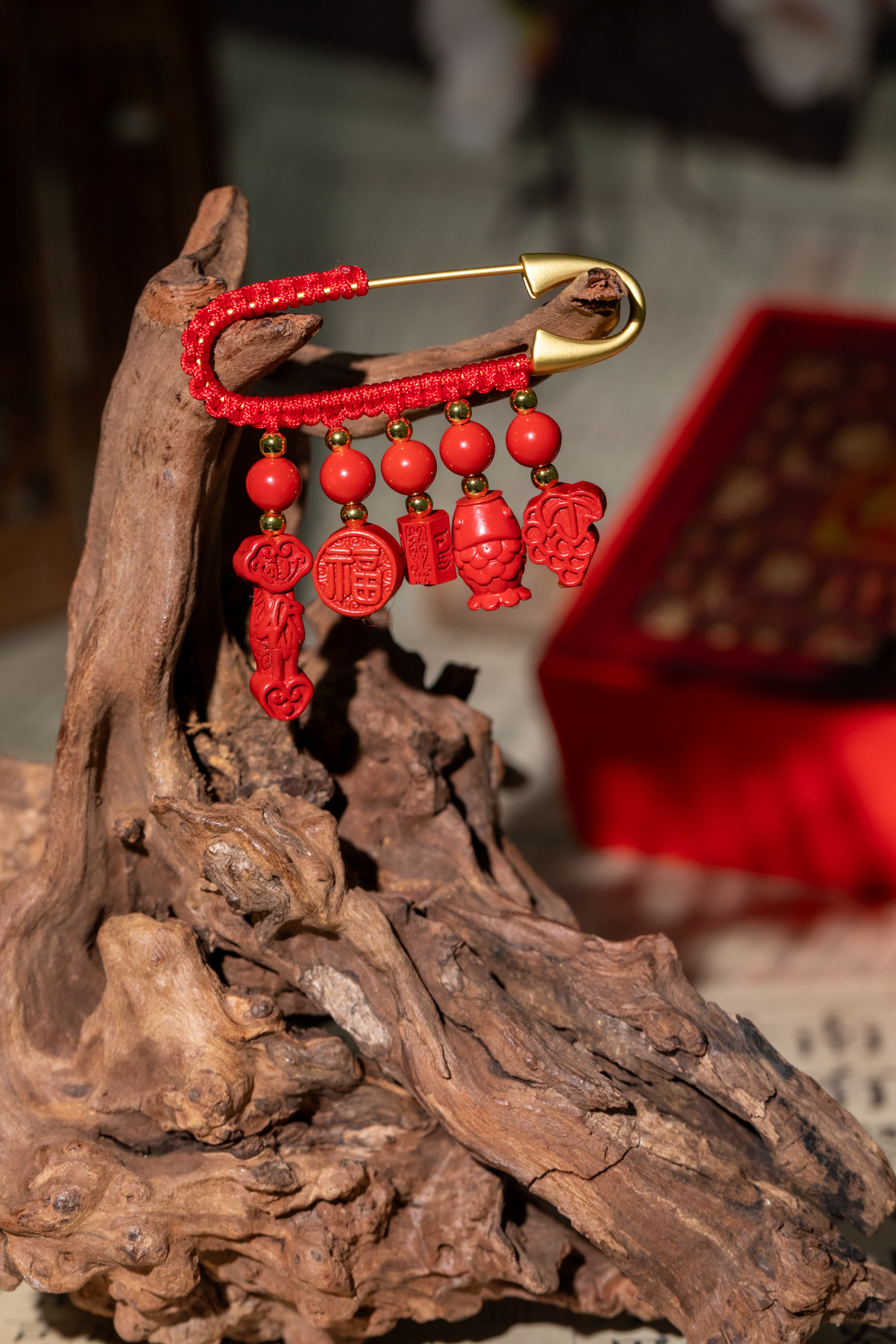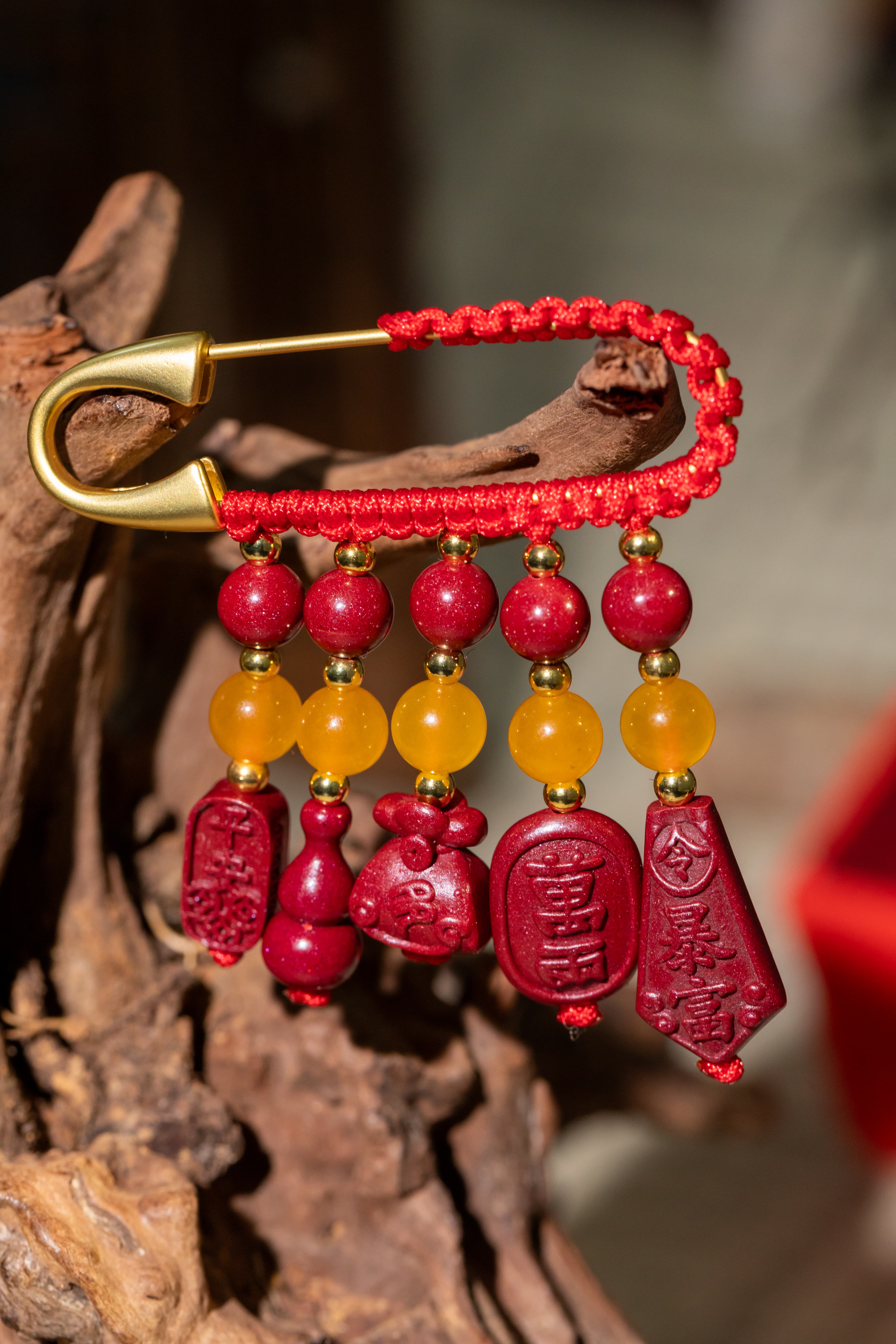 【朱砂 压惊别针】别针尺寸50*40mm,高含量朱砂,求好运,“戴”好运,得好运!湖南湘西朱砂原石