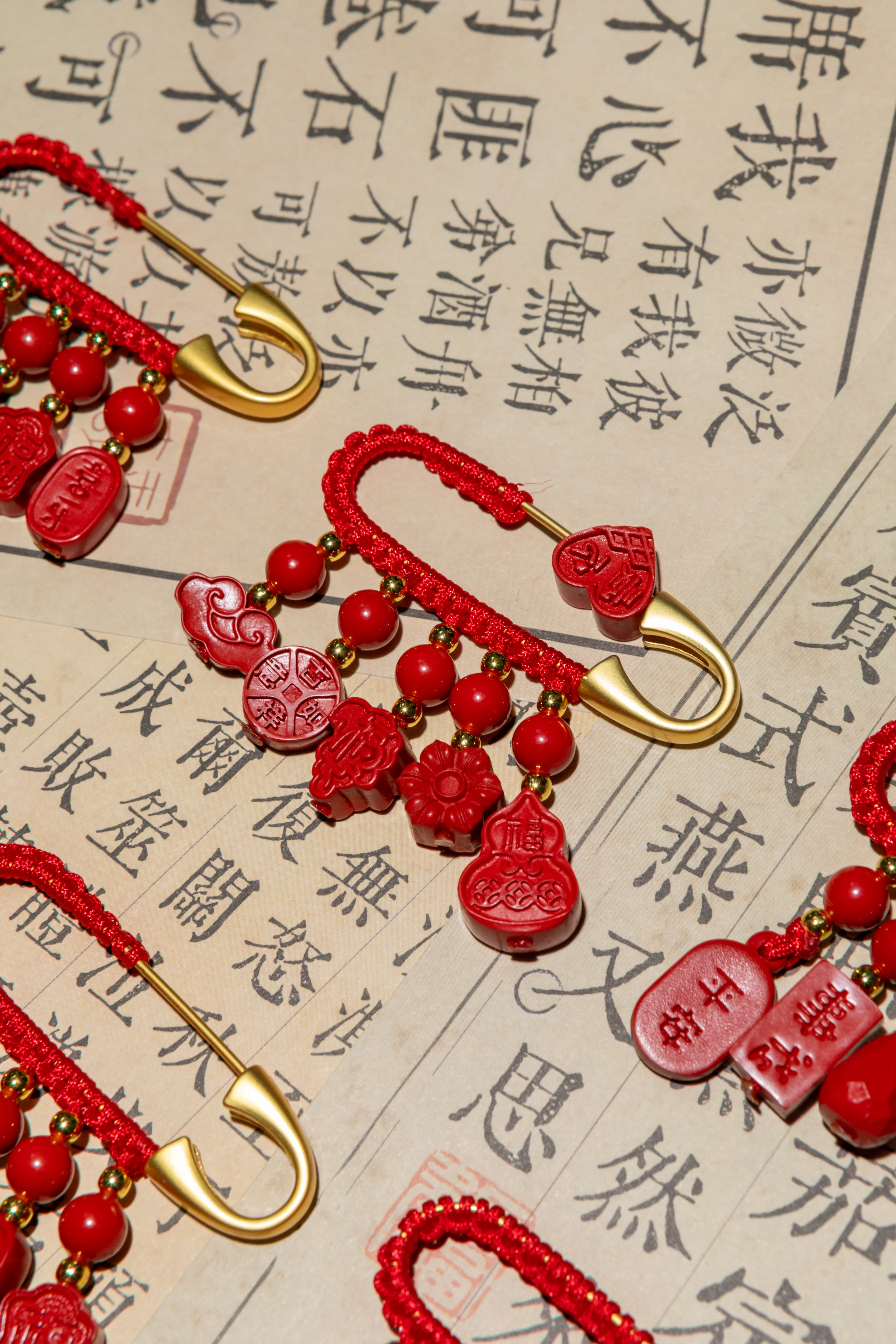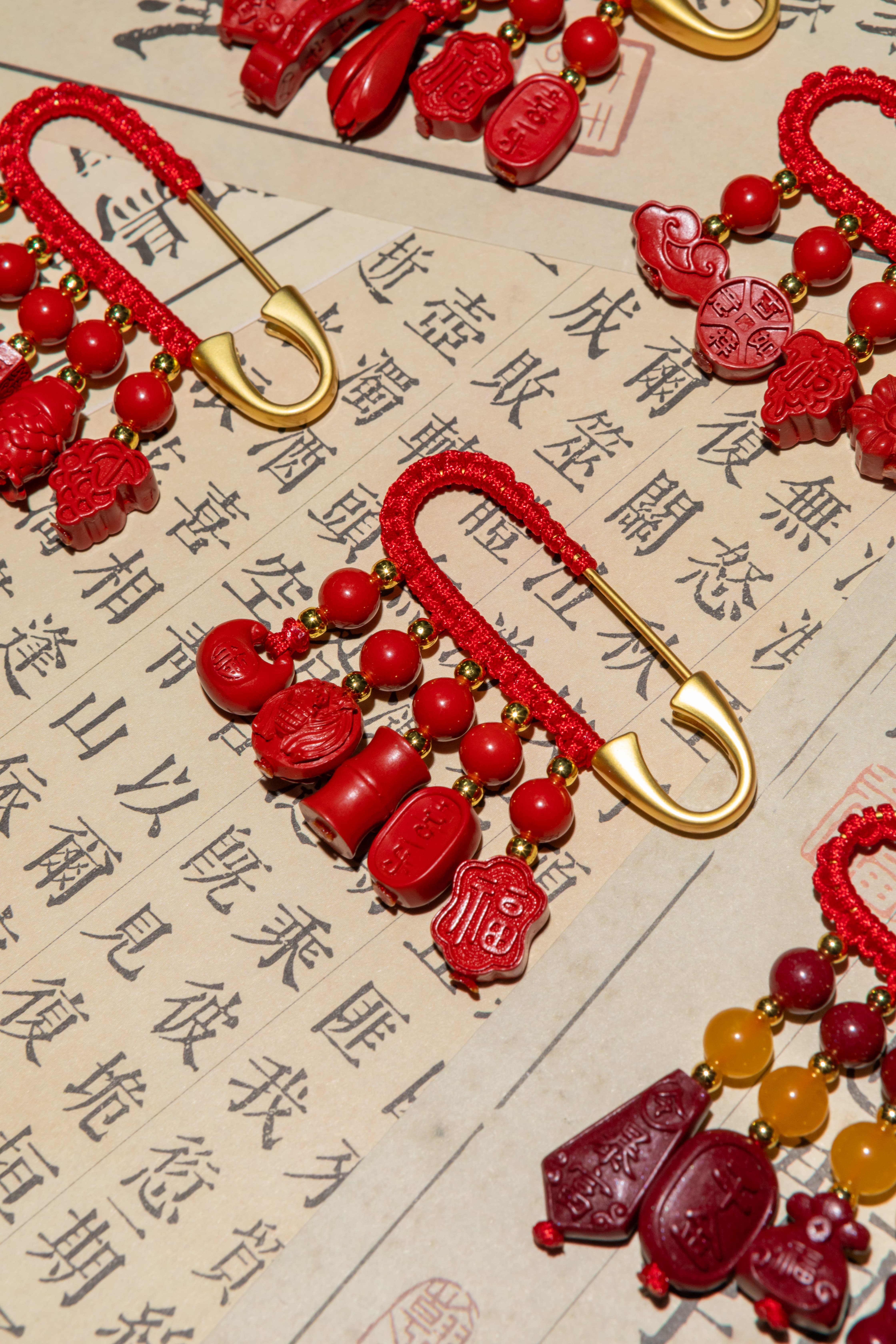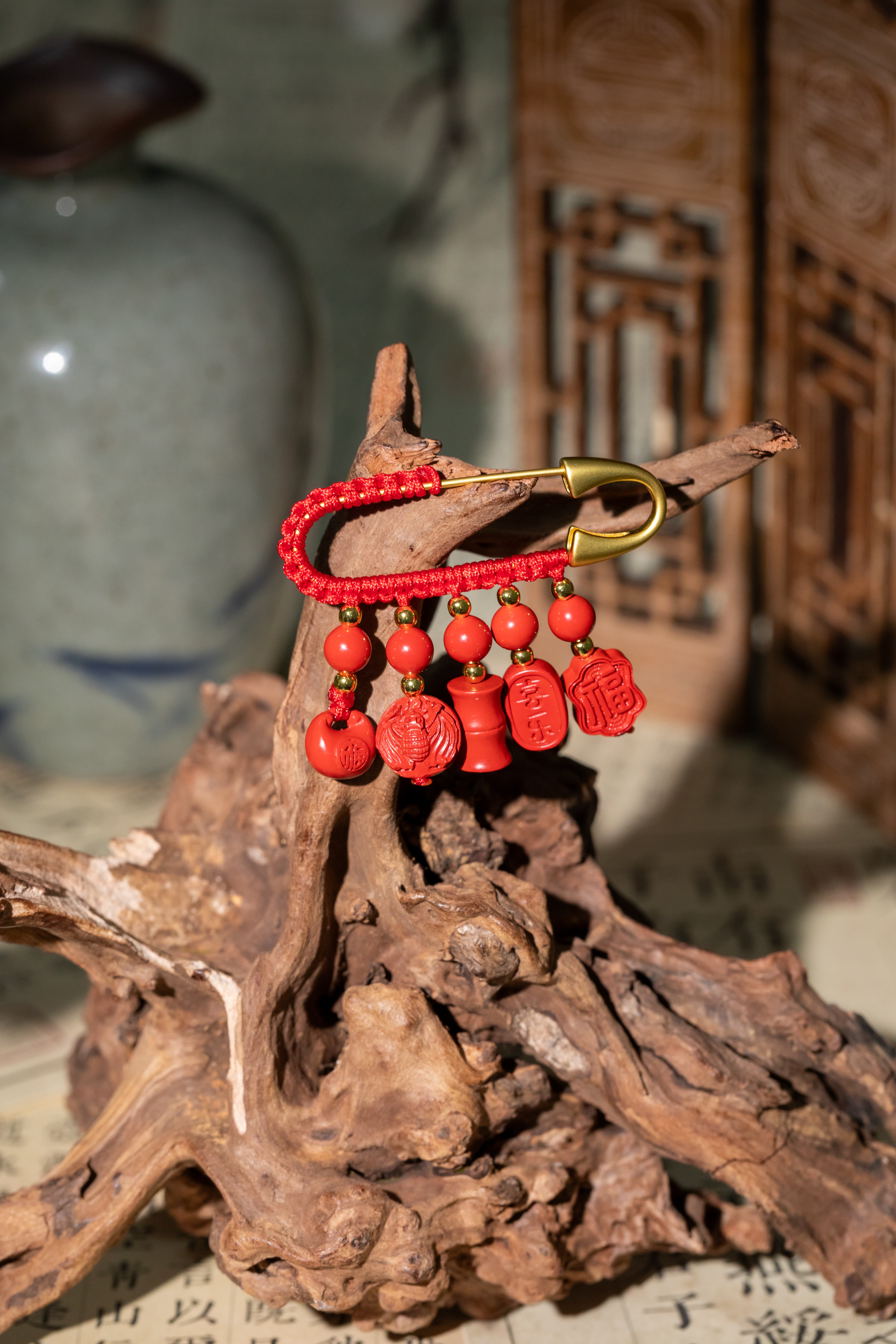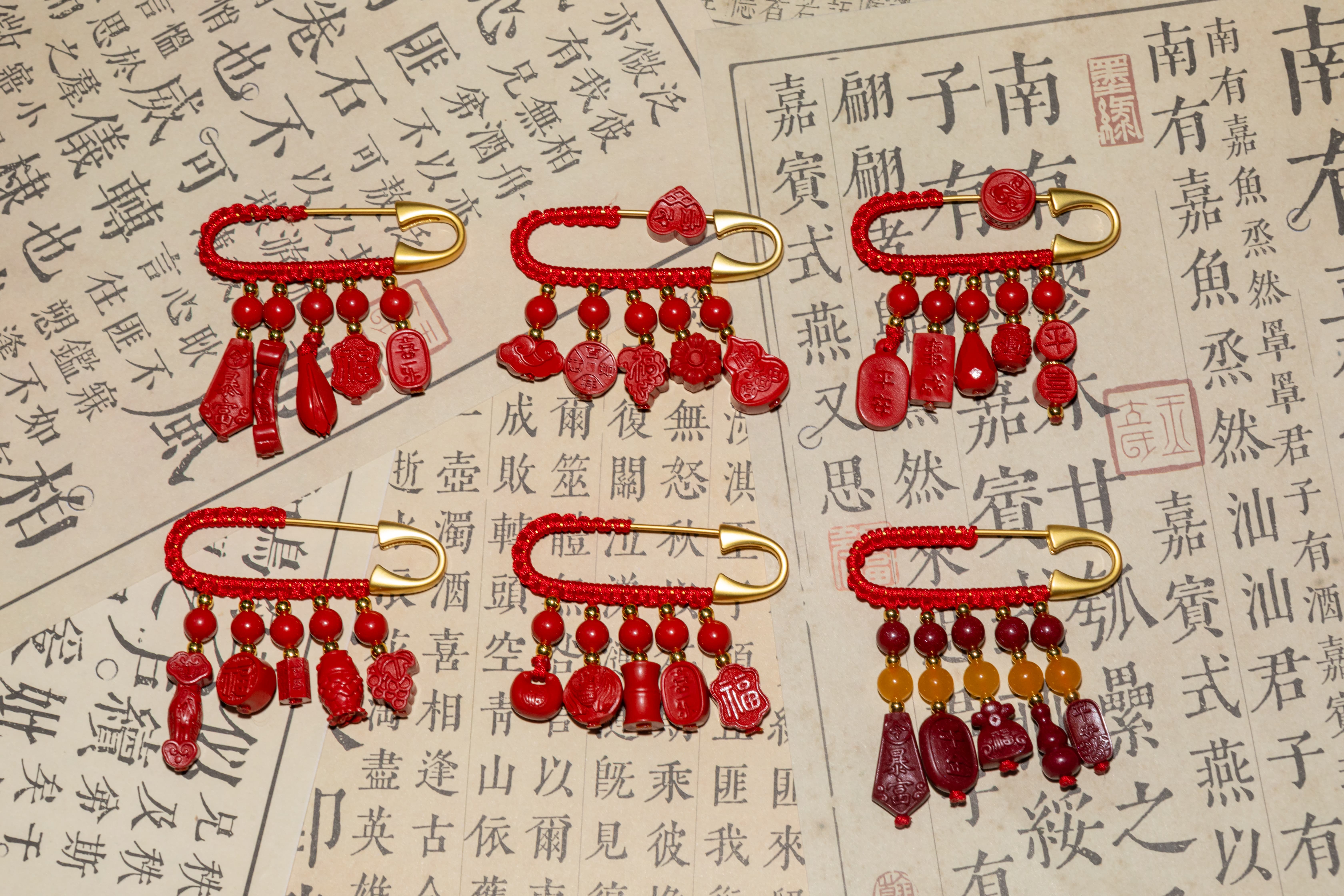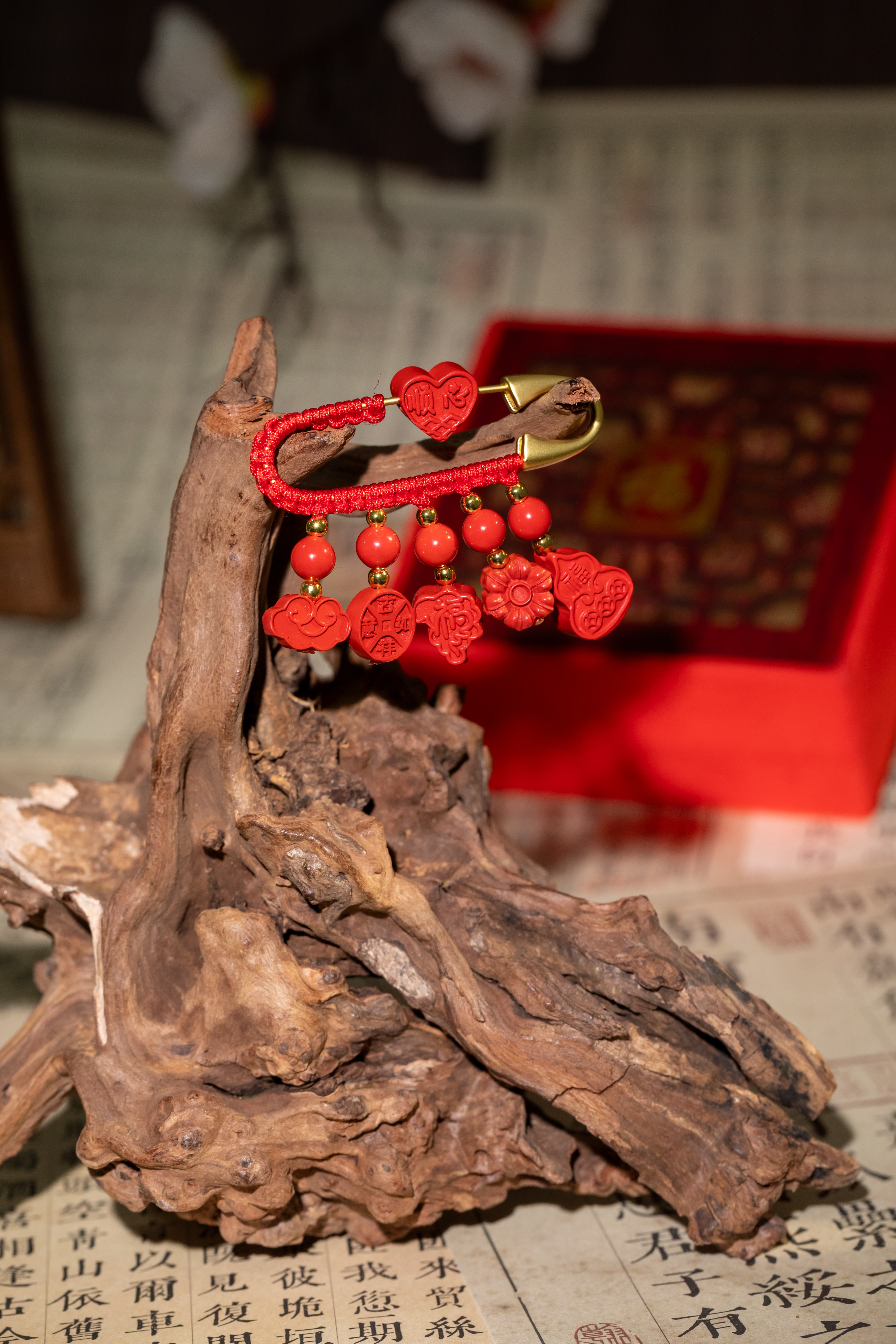 【朱砂 压惊别针】别针尺寸50*40mm,高含量朱砂,求好运,“戴”好运,得好运!湖南湘西朱砂原石