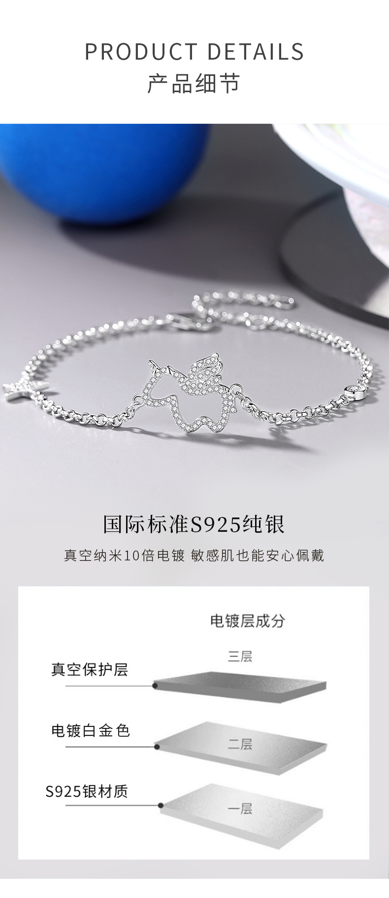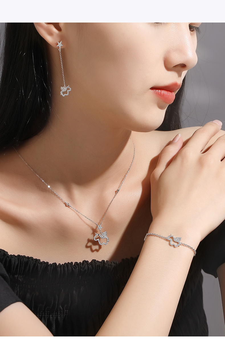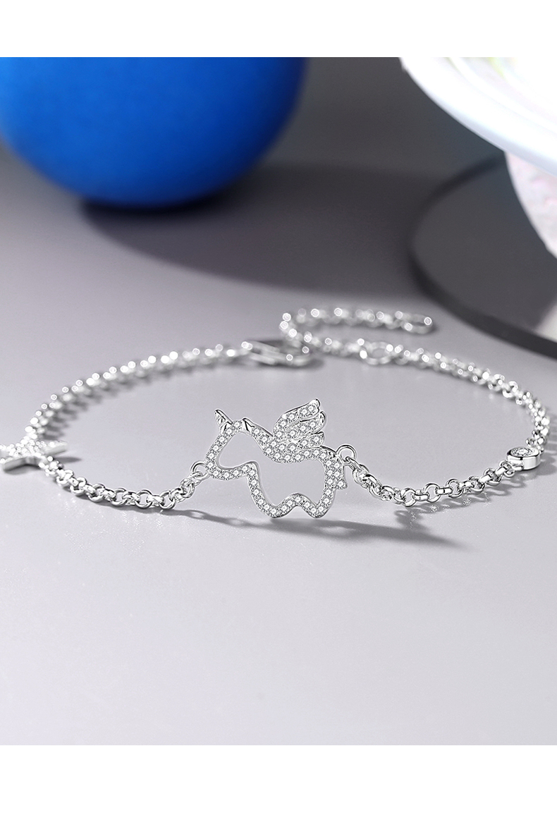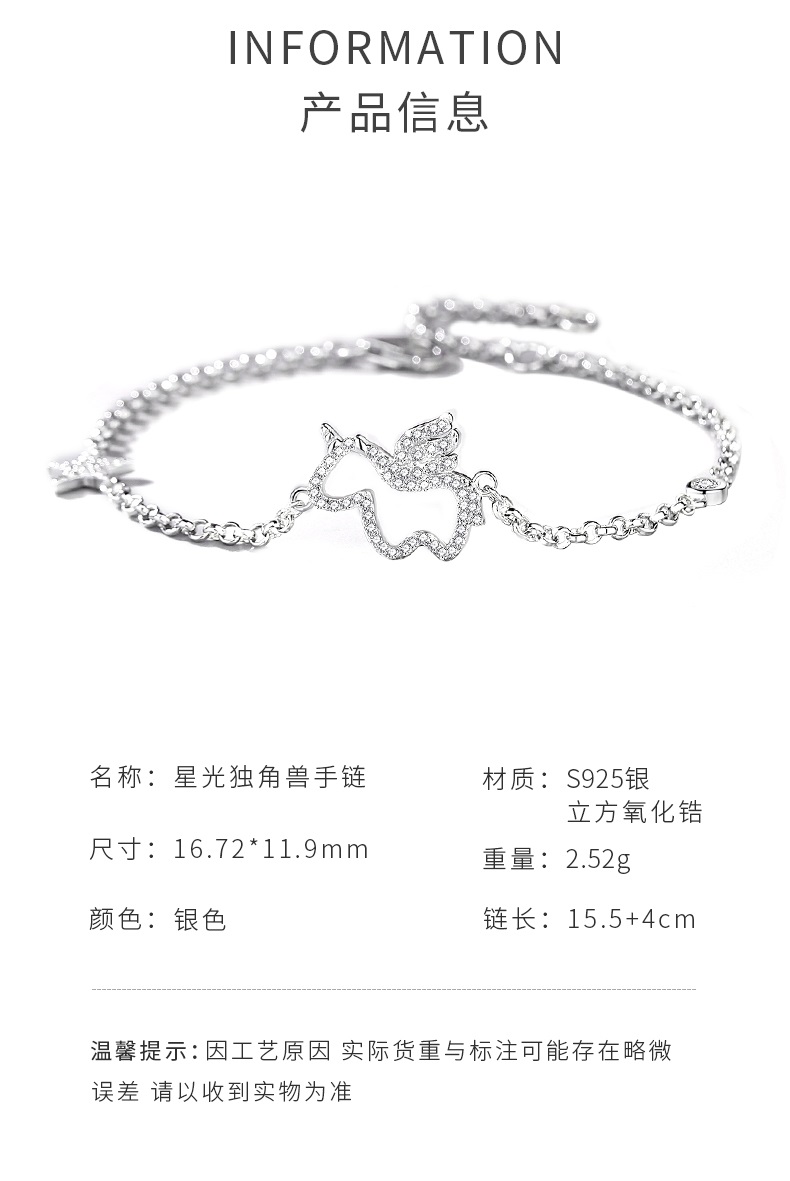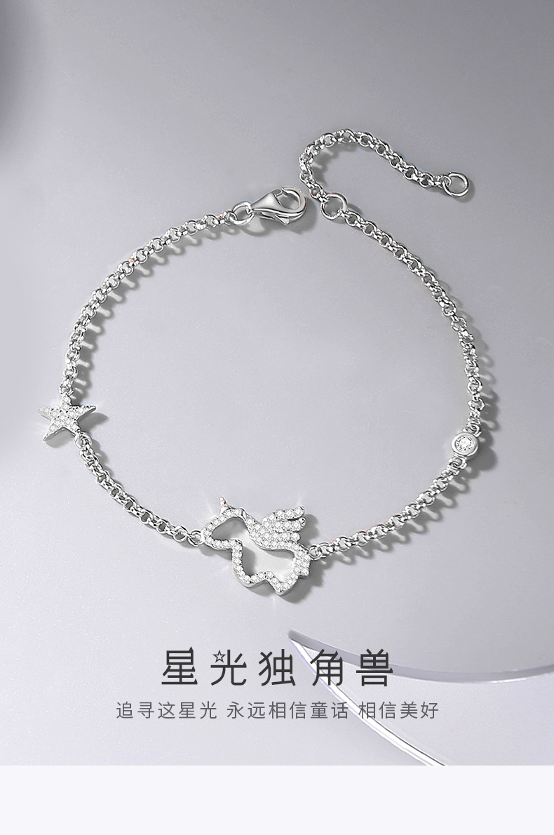 卡蒂罗/KADER 星光独角兽手链 萌趣灵动精致时尚简约设计可调节手饰 满镶锆石梦幻小众银链俏皮可爱配饰 七夕送女友