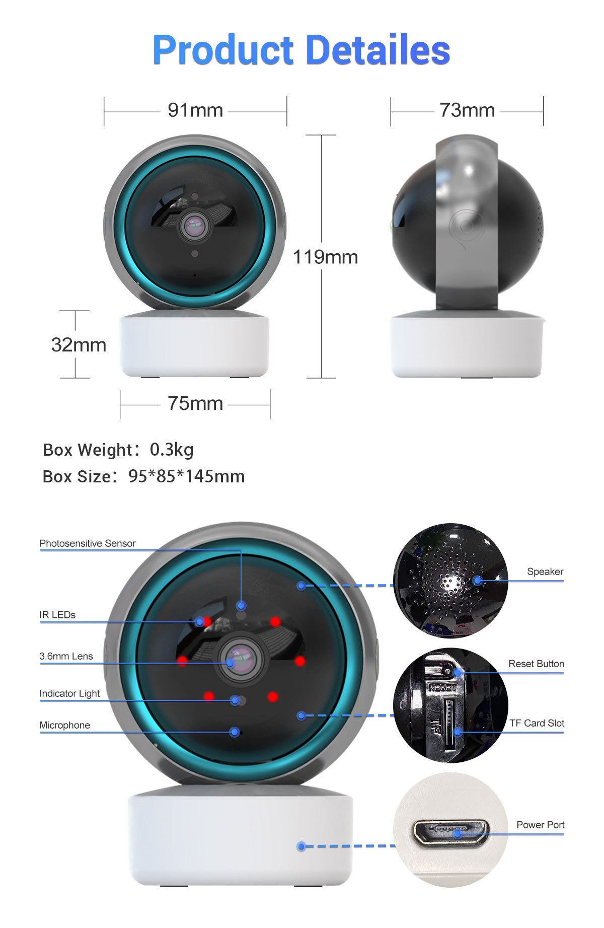 摄像机摇头WiFi监控安防360跟踪报警摄像头1080P