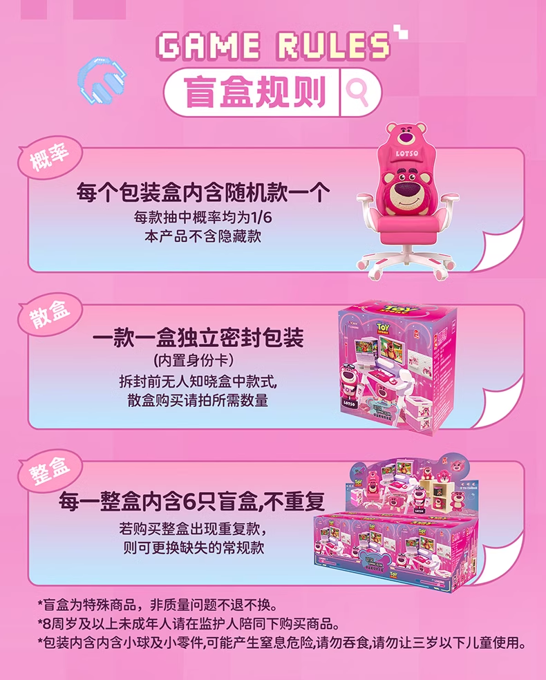 时利扭蛋 WM-8327 6款迪士尼草莓熊電競小屋系列单个盲盒袯NDSCRB-128