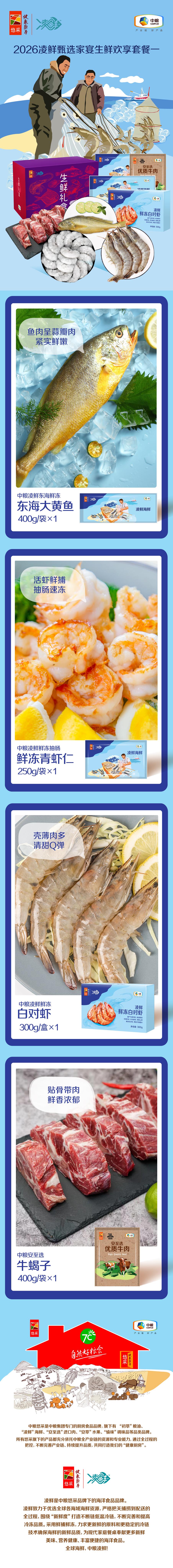 中粮凌鲜甄选家宴生鲜欢享套餐一1350g【分仓直发,72小时发货,周末节假日不发货】