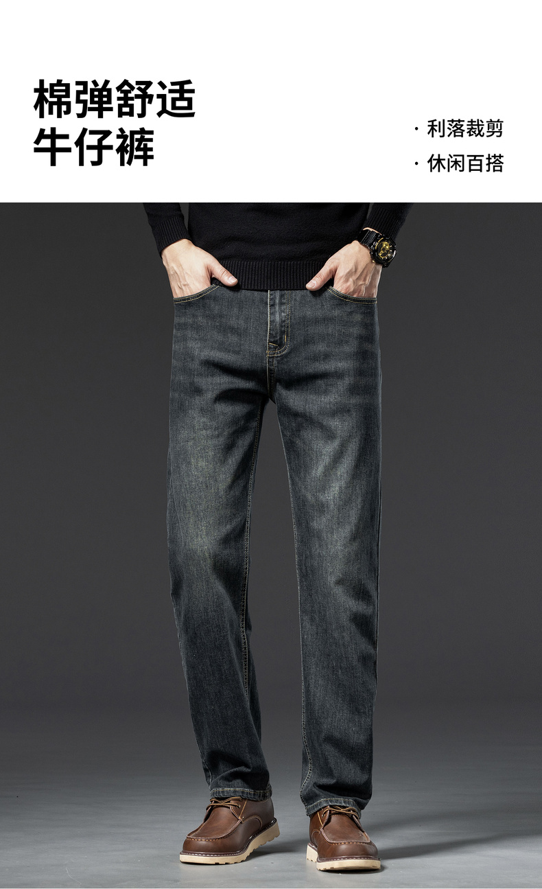【含棉】圣得西男士微弹直筒裤2025年秋季新款棉弹舒适百搭牛仔裤