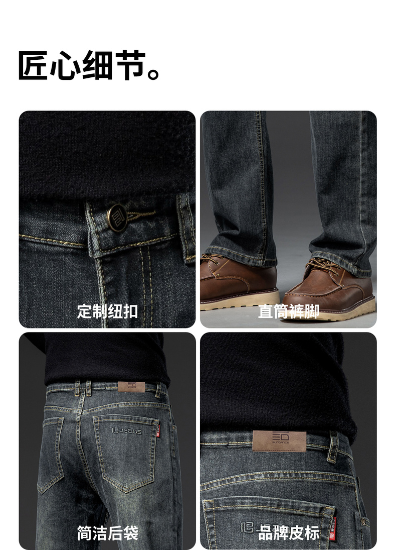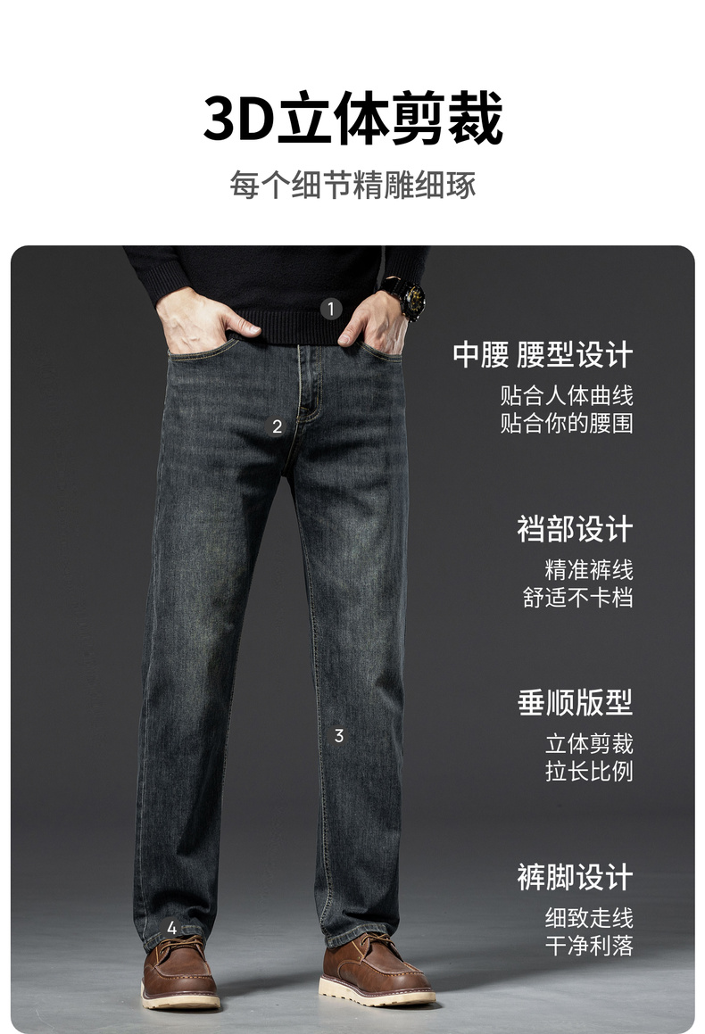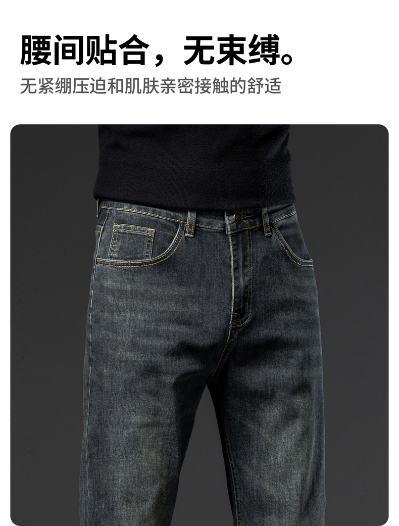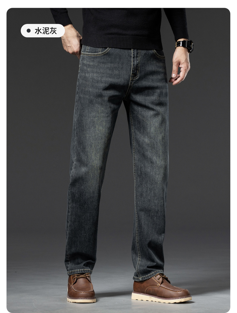 【加绒加厚】圣得西男士牛仔裤秋冬宽松弹力直筒商务长裤2362915870