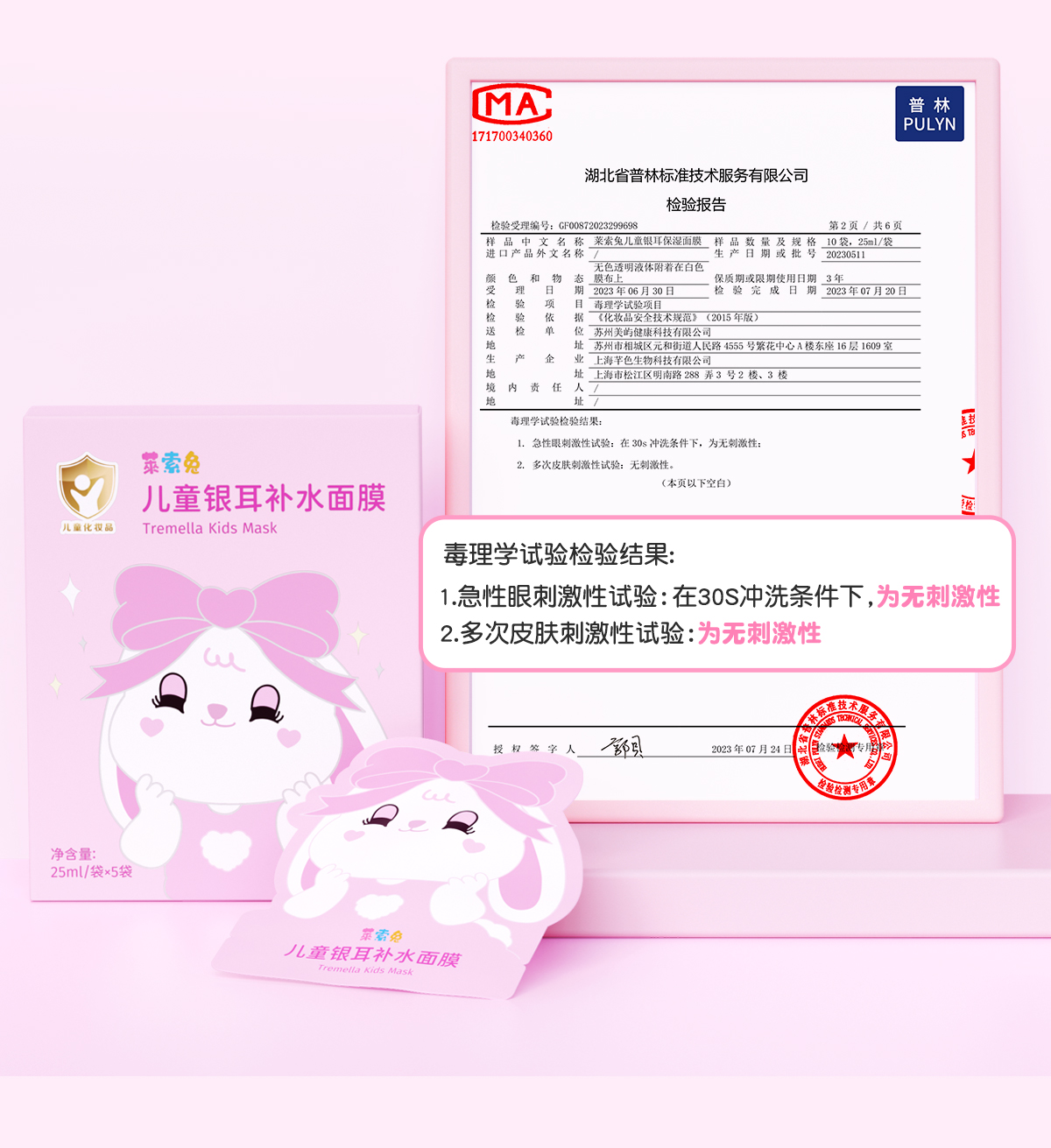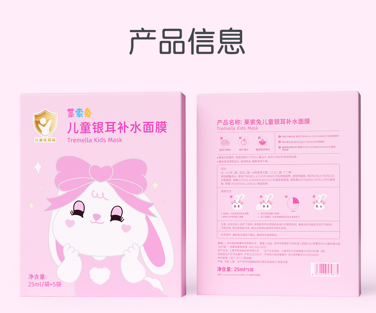 莱索兔儿童卡通面膜女孩宝宝专用3-12岁以上小孩学生秋冬保湿补水