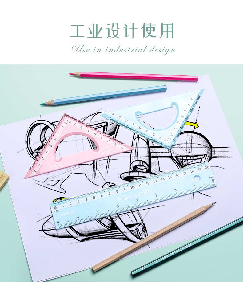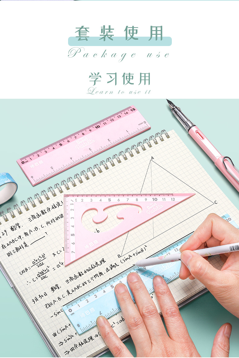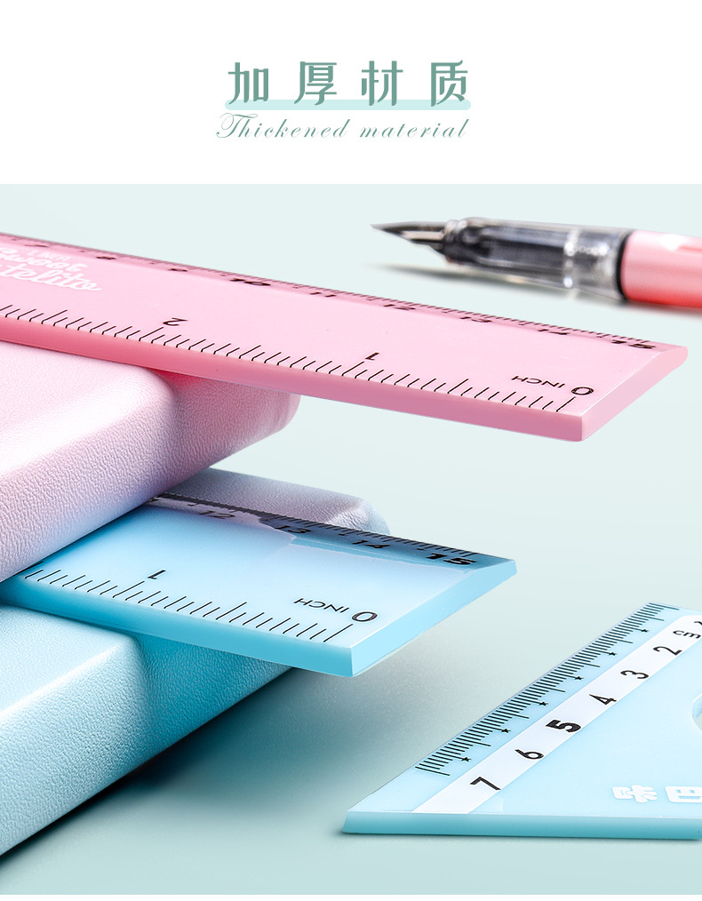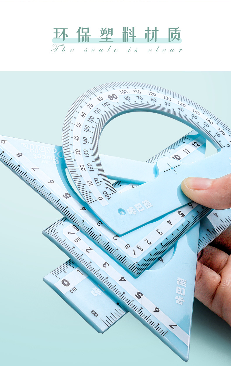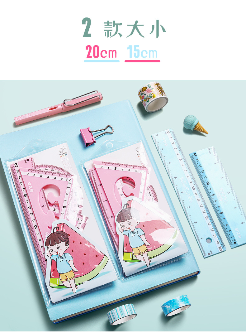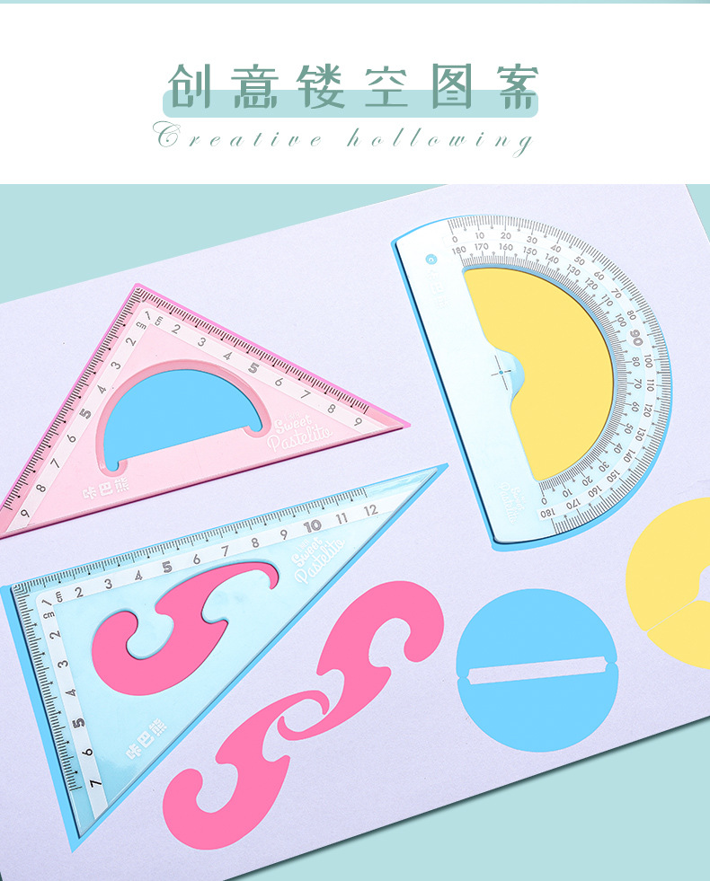 【马卡龙4件套尺子】彩色尺子文具四件套学生用塑料直尺三角尺带波浪线量角器儿童多功能套尺日韩可爱用品圆规套装ins风女