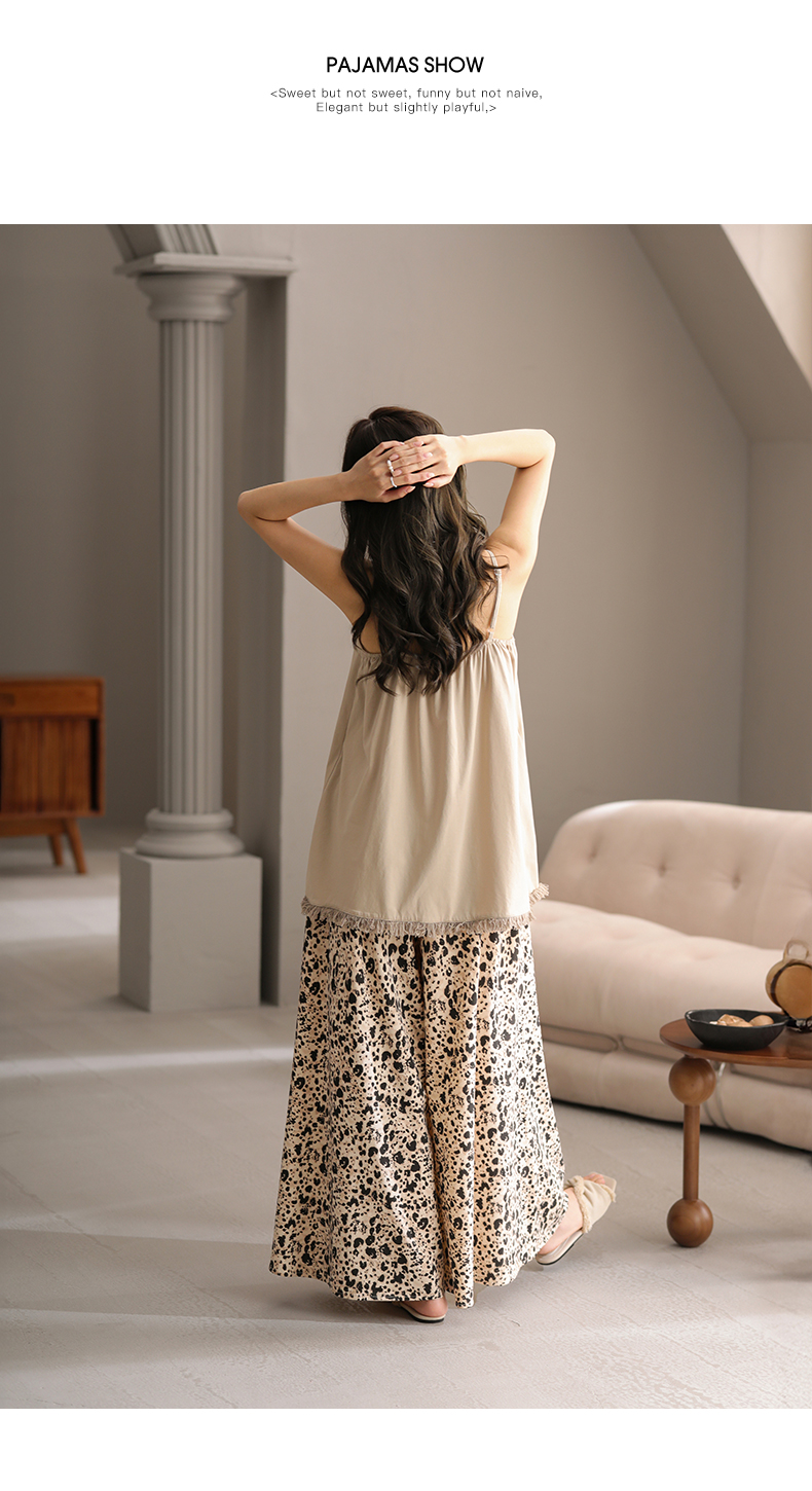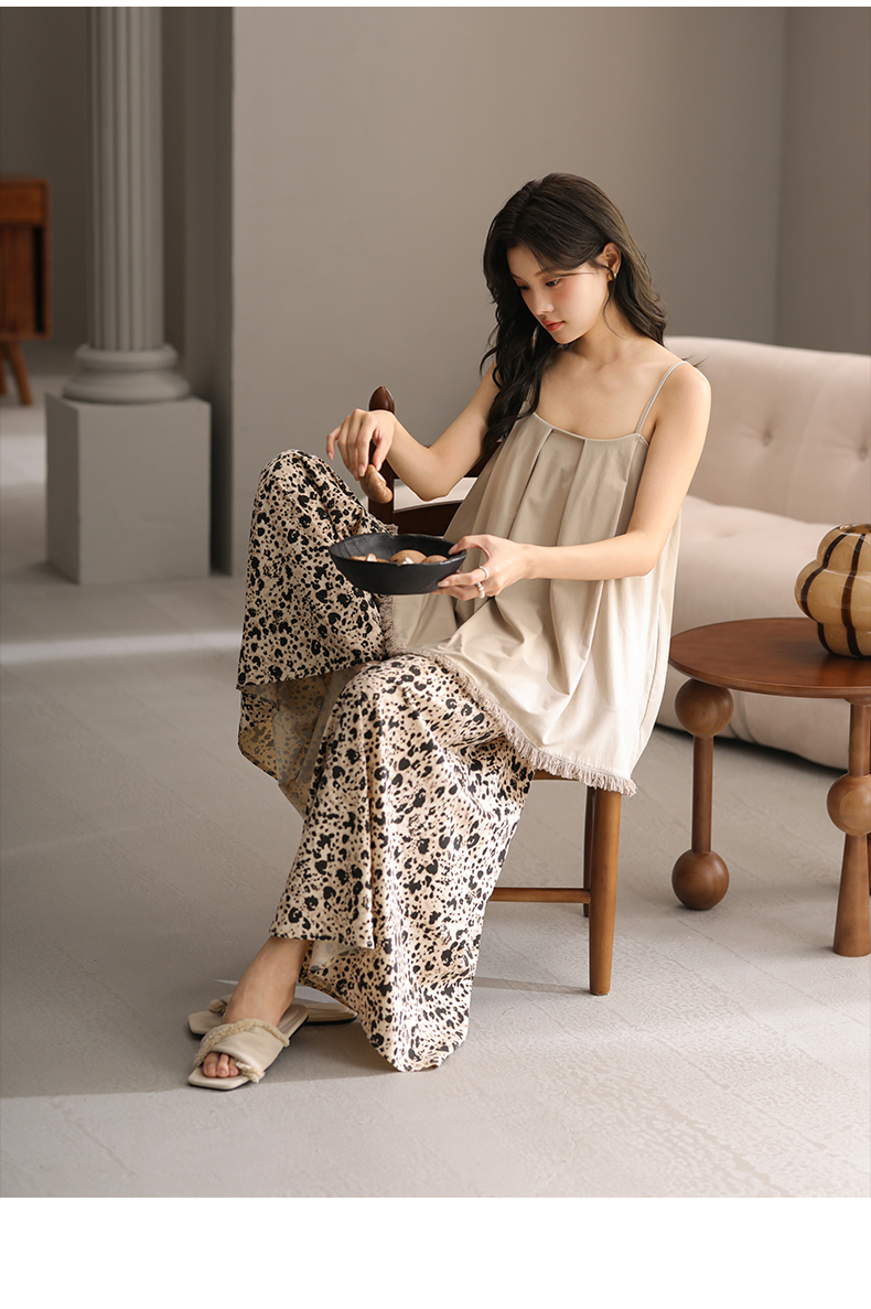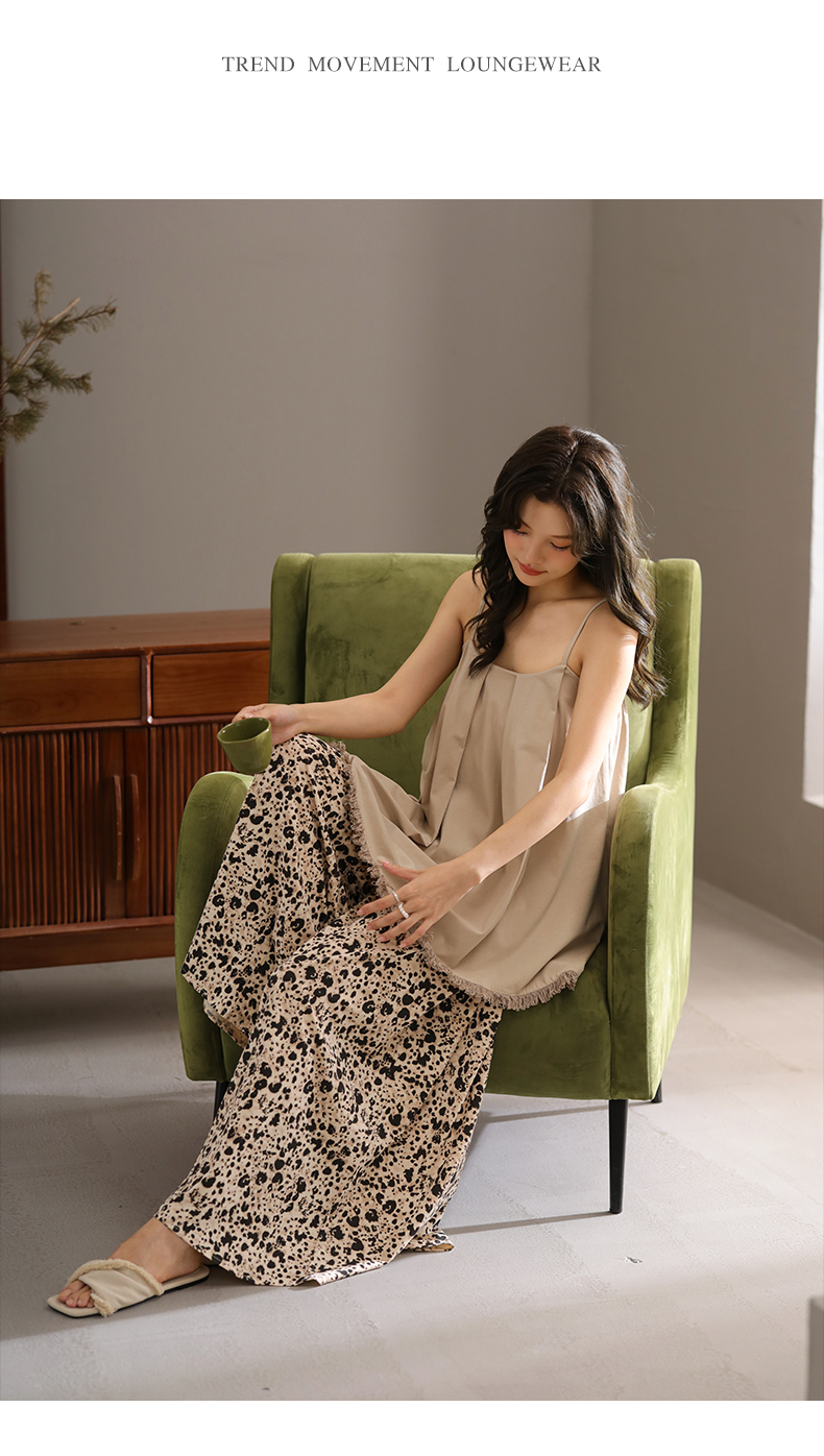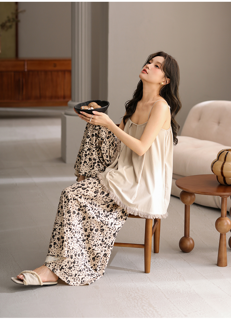 可人儿带bra睡衣夏季凉感莫代尔女士吊带阔腿长裤可外穿家居服