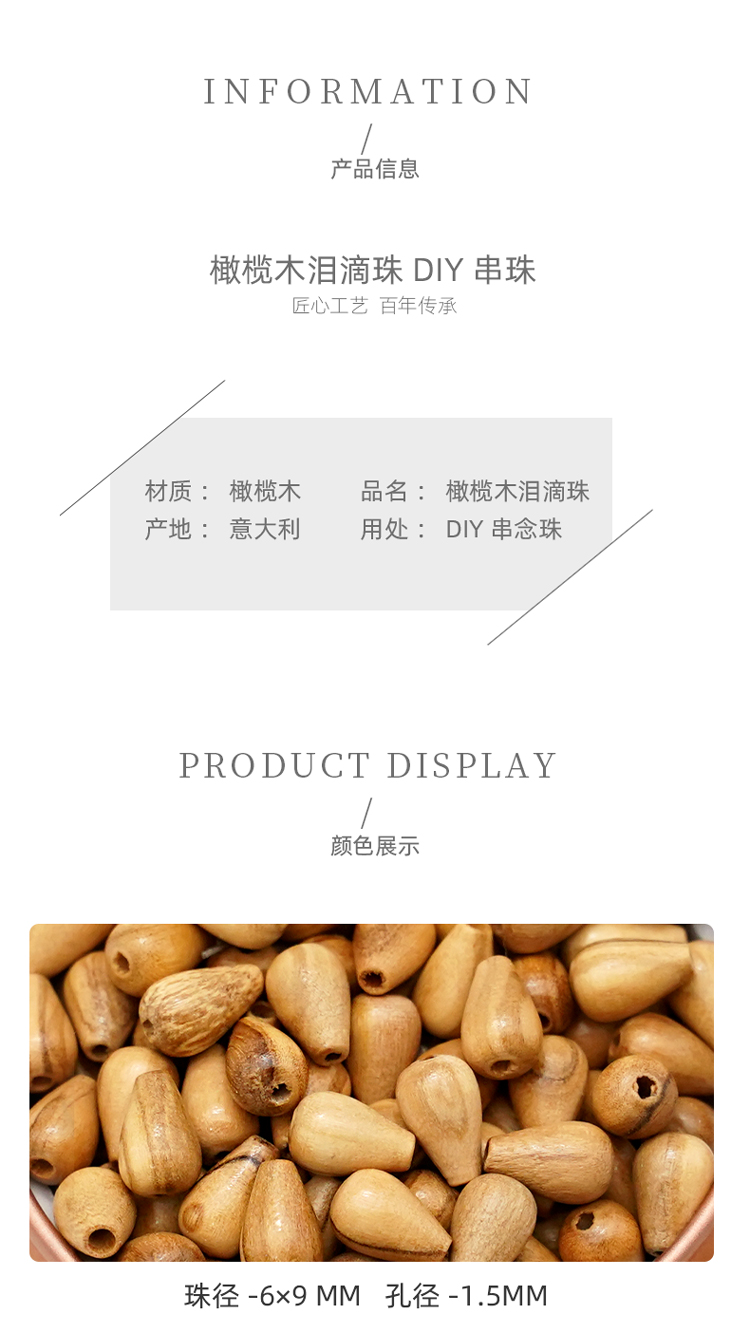 泪滴橄榄木珠木料原木料意卡米诺手串念珠串珠单颗珠子料散珠老料意大利进口