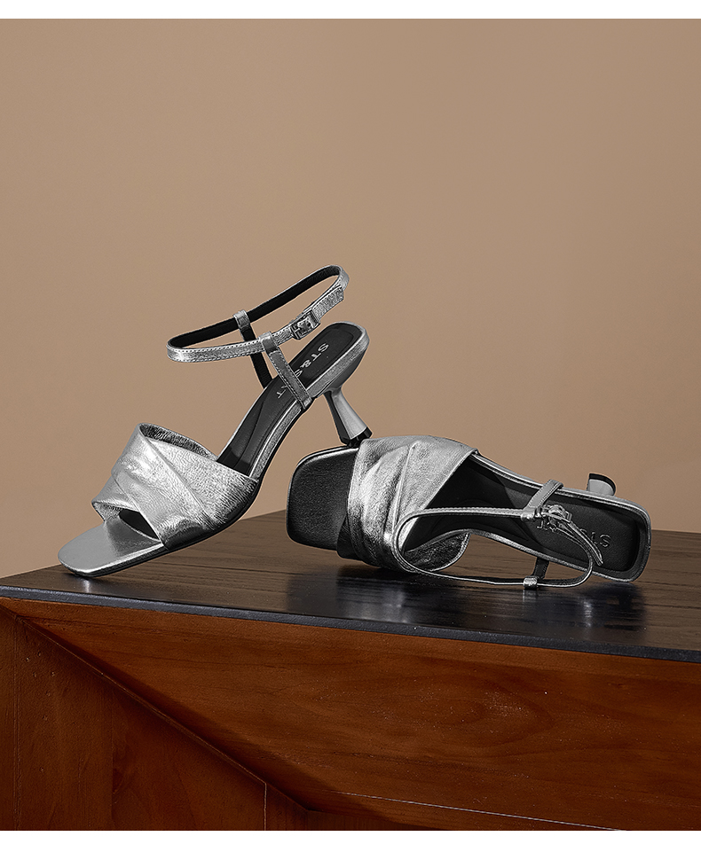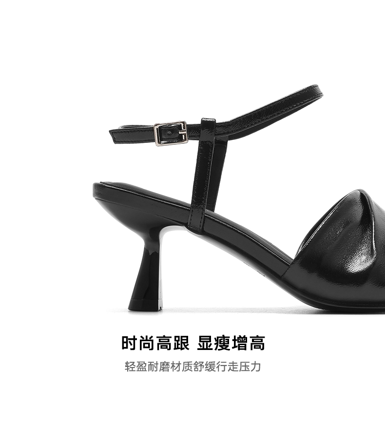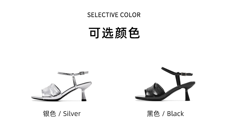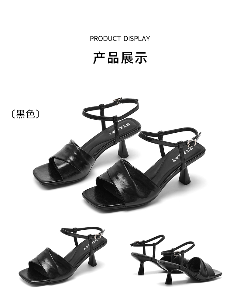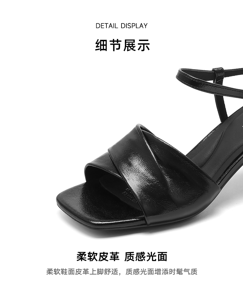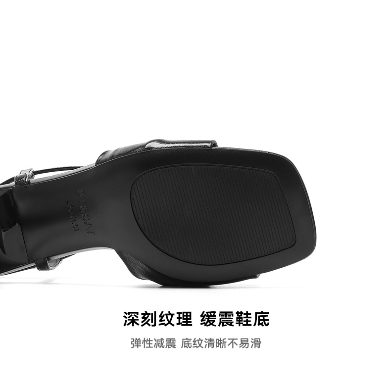 星期六方头极简风粗跟凉拖SSC2110325
