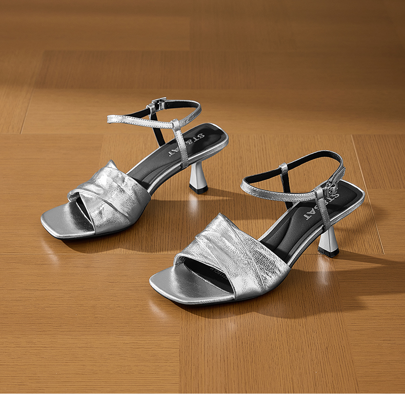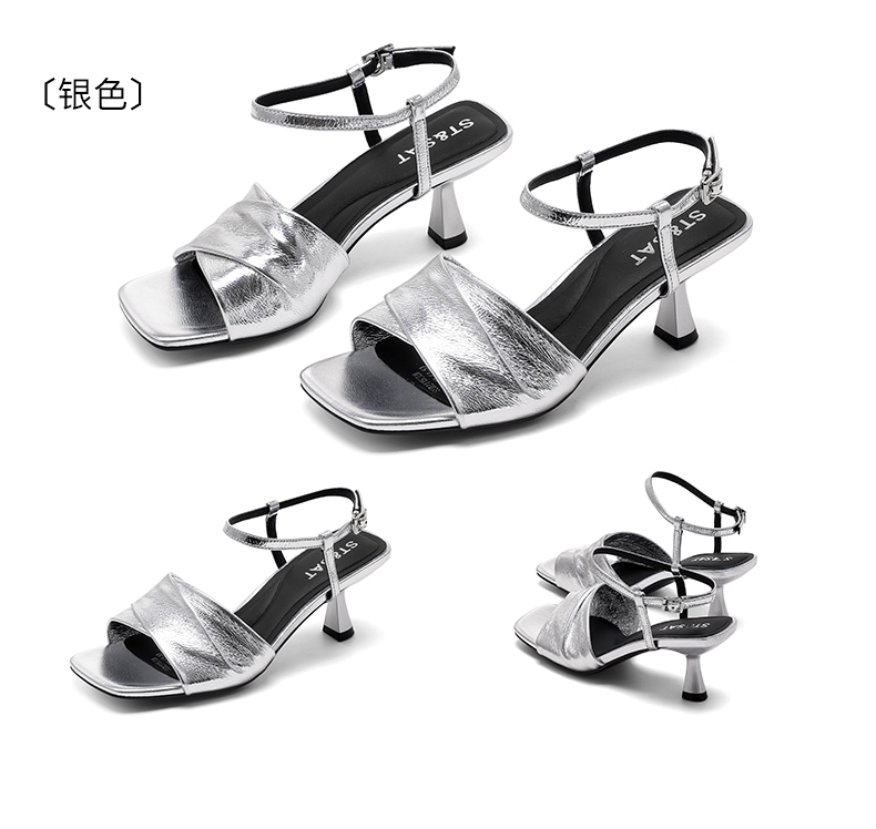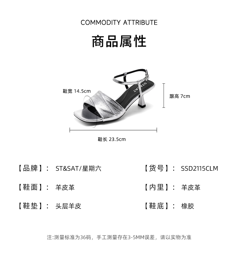 【7CM跟高】星期六小香风一字带方头凉鞋SSD2115CLM