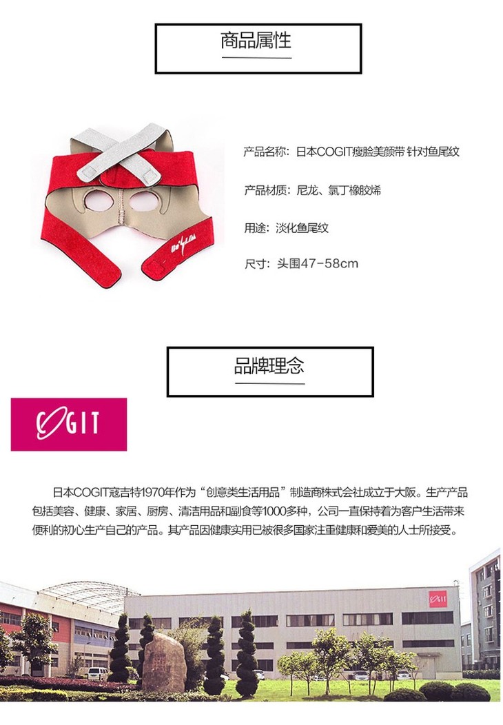 日本原产COGIT美颜带特别针对鱼尾纹 头围:47-58cmJPY带授权招加盟代理