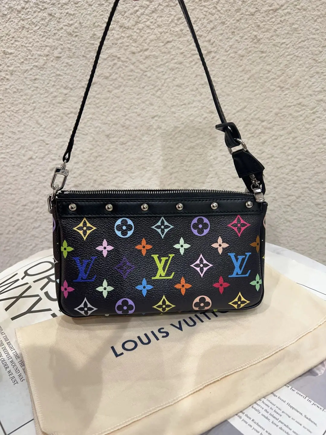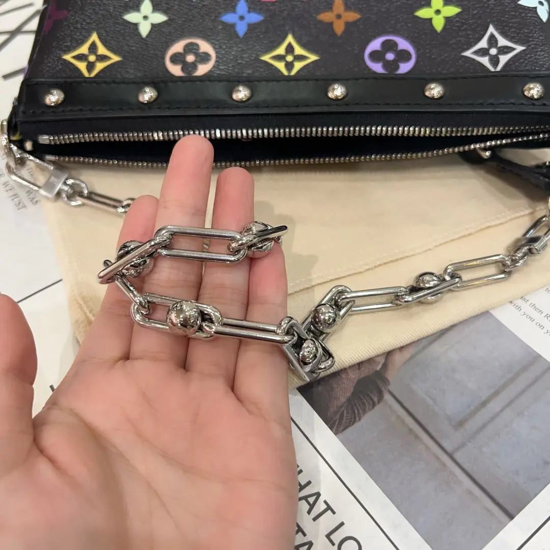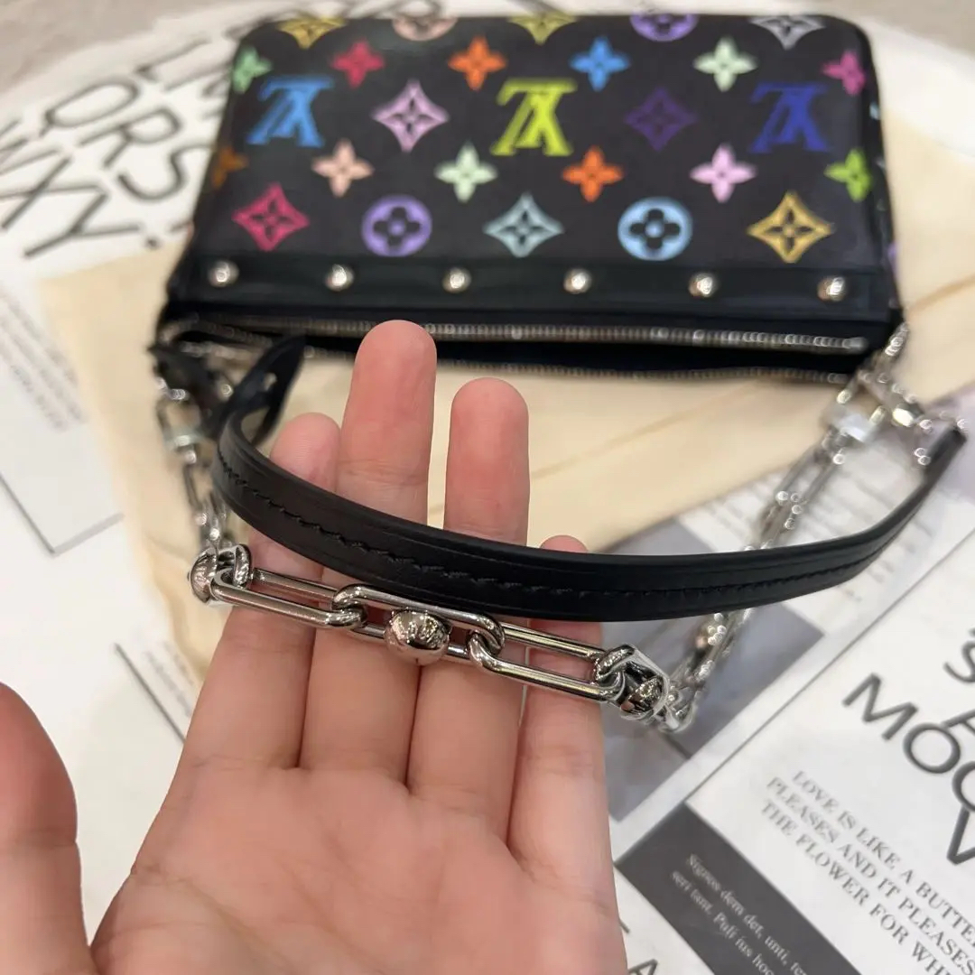 正品二手 LV 老花 黑三彩 村上隆联名 麻将包💼99新 21*13 配件:肩带 链条 防尘袋。超级幸运才能得到的黑三彩