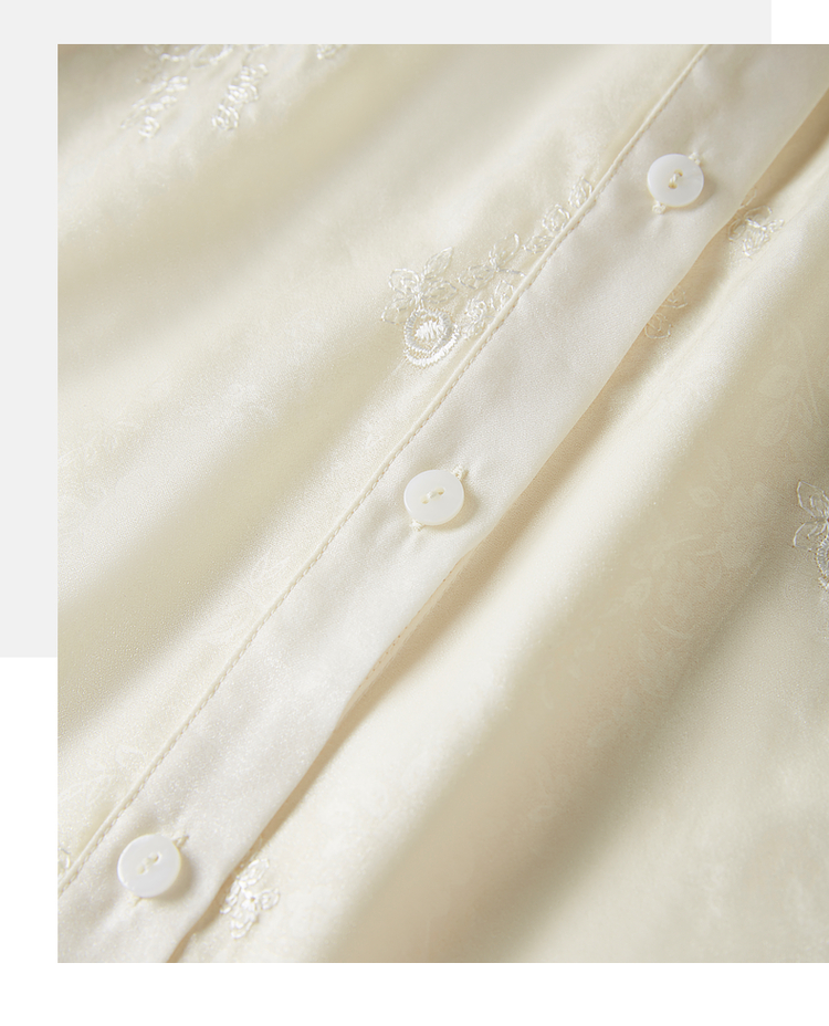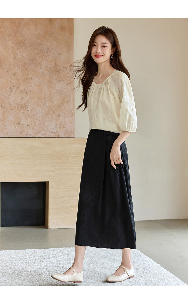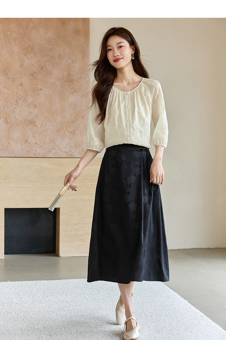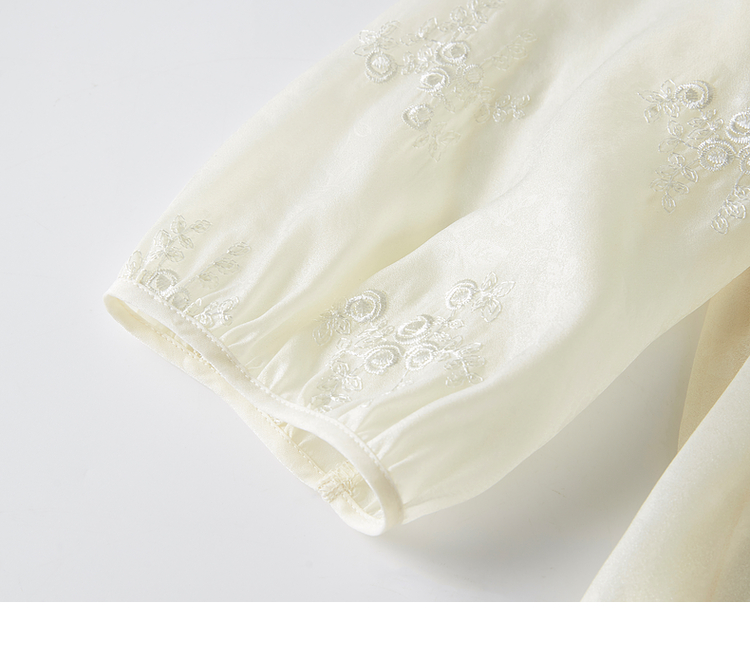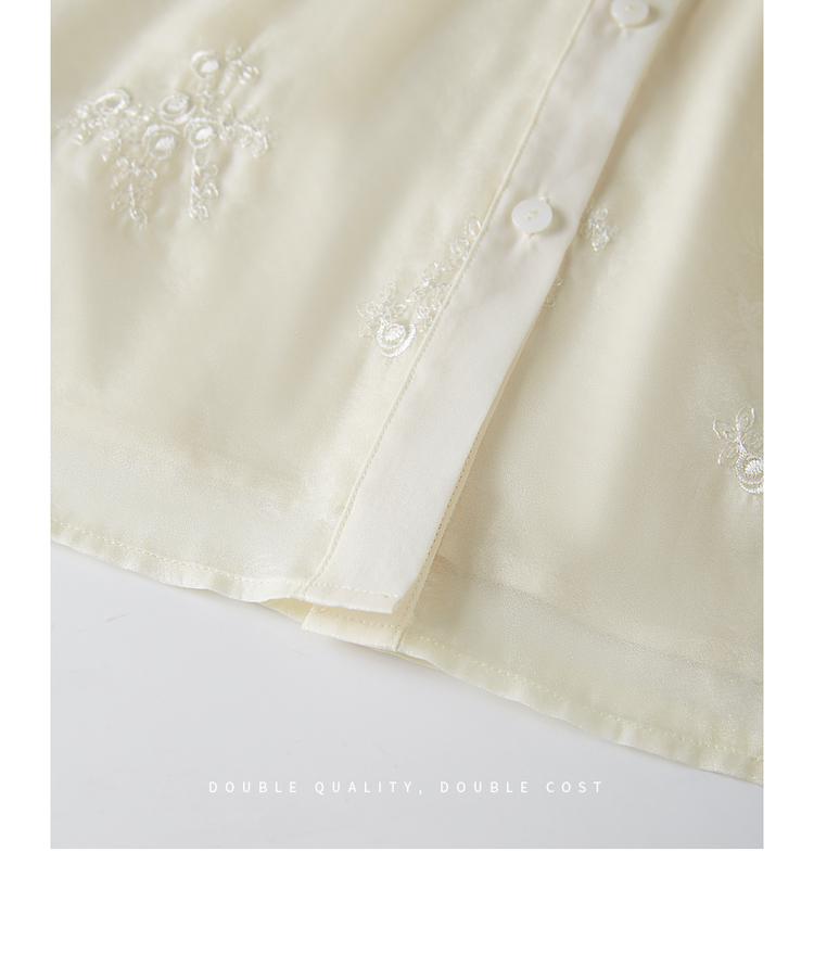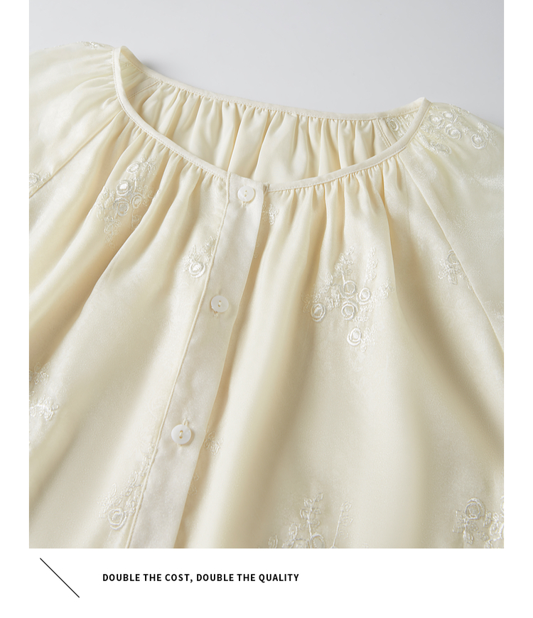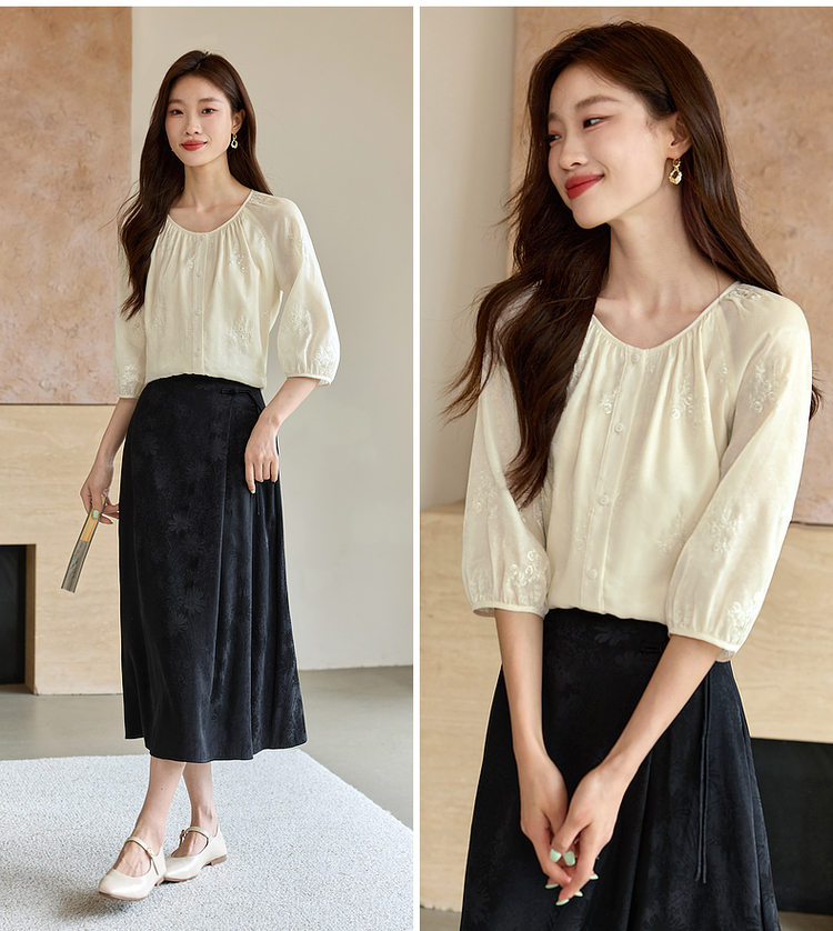 【1件62折】熙世界重工刺绣雪纺衬衫2025早秋新款欧根纱圆领小衫七分袖上衣