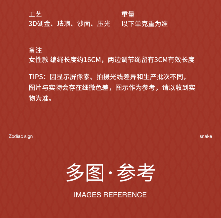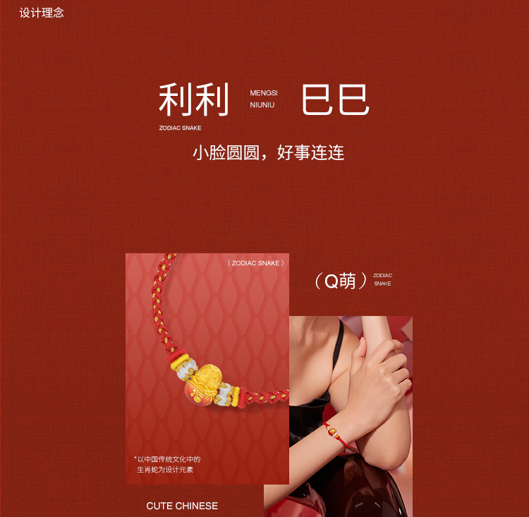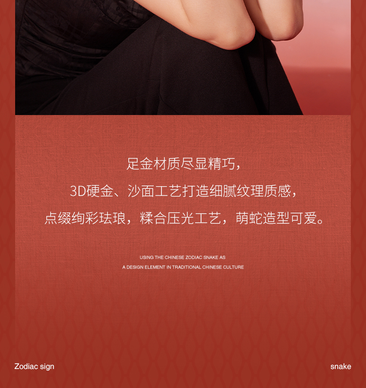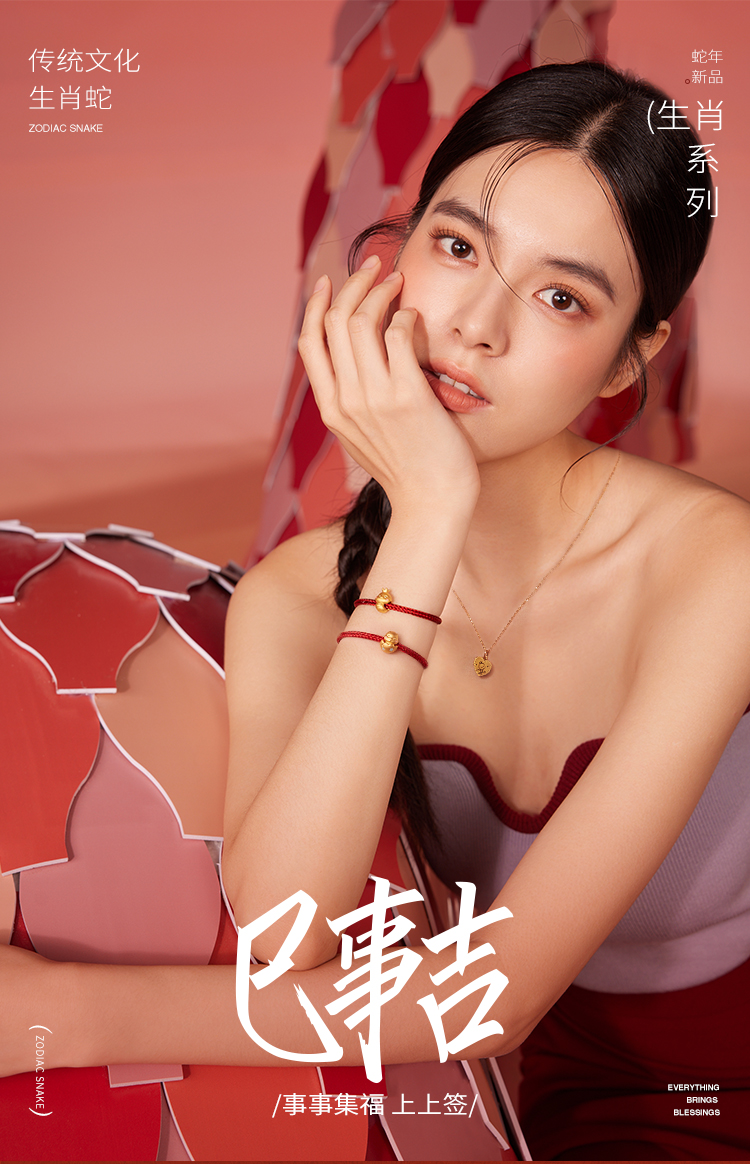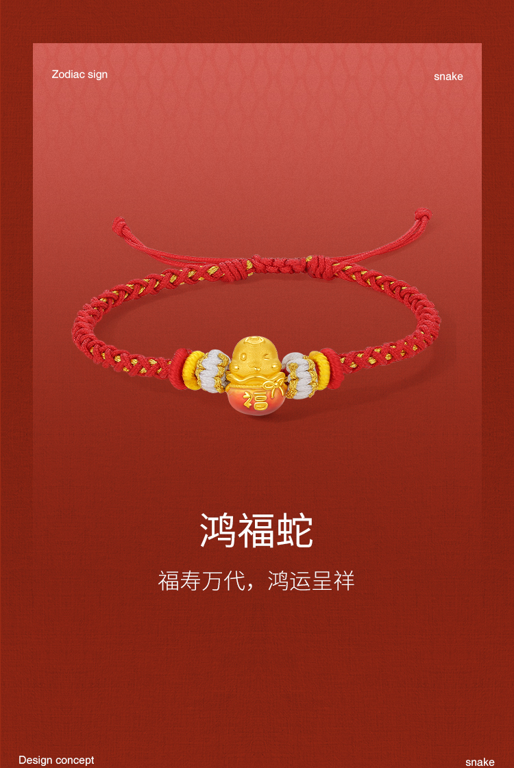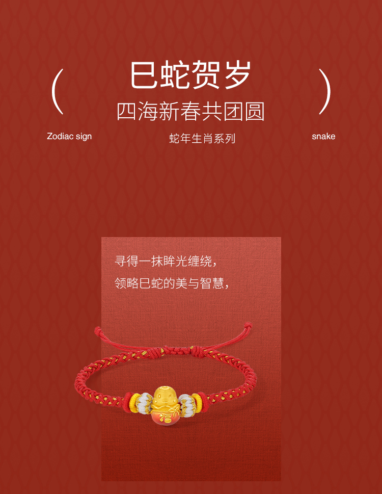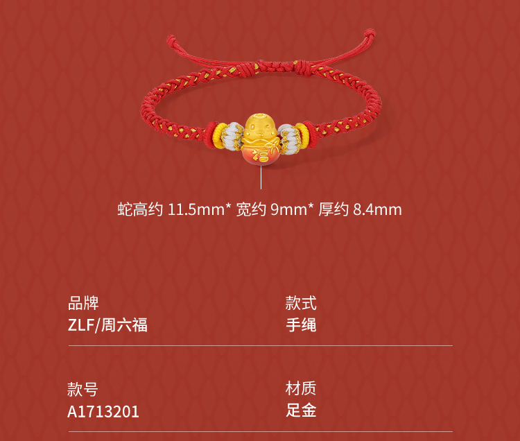 周六福3D硬金手绳鸿福蛇定价黄金珐琅手绳生肖蛇系列节日礼物