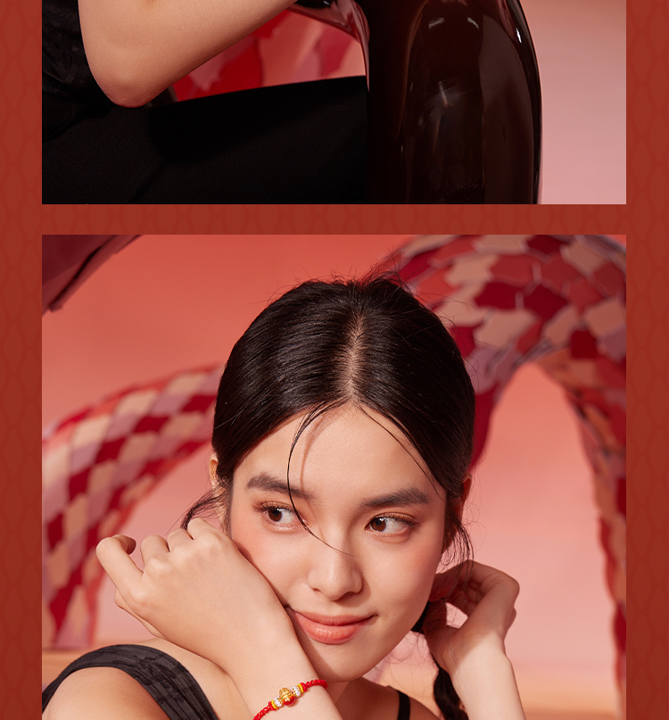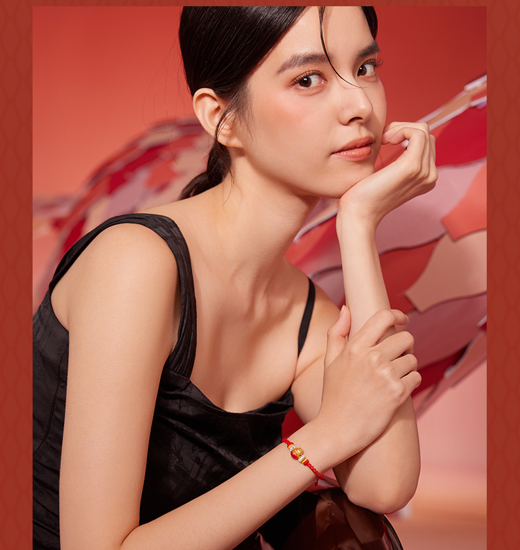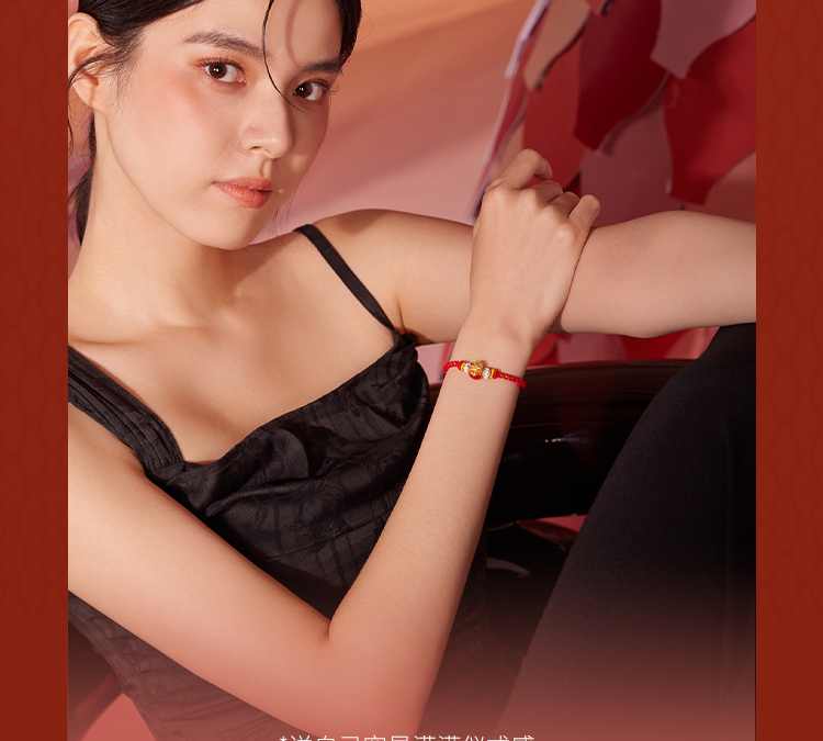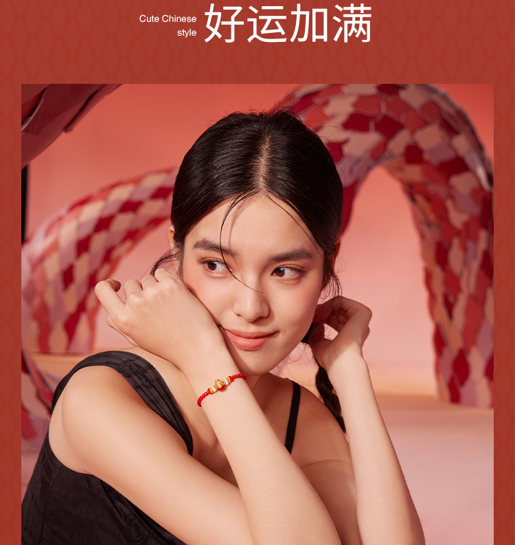 周六福黄金手链足金定价好运起飞萌趣动物生肖兔转运珠红手绳手饰
