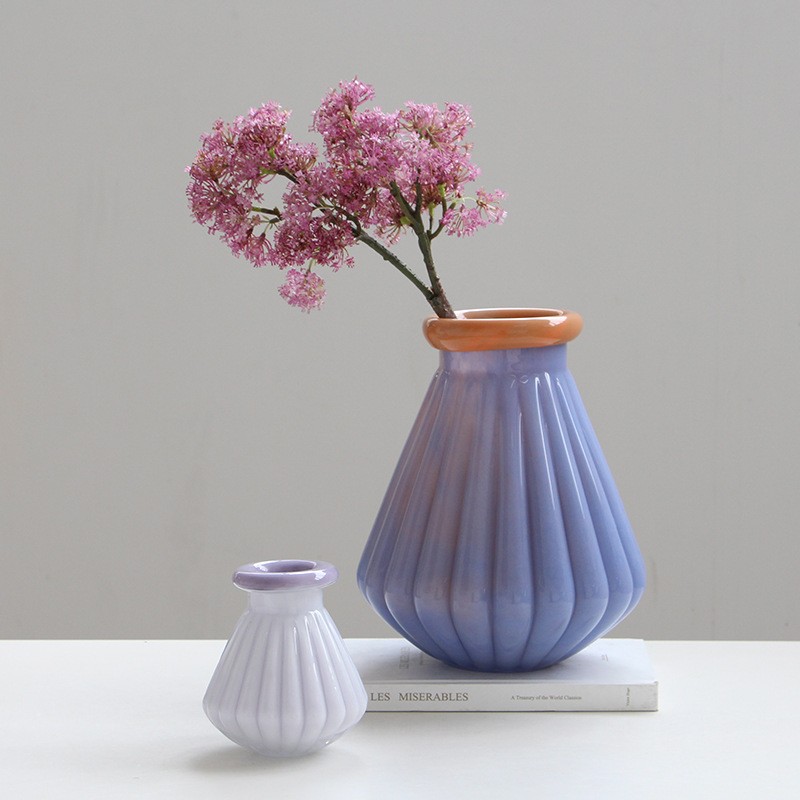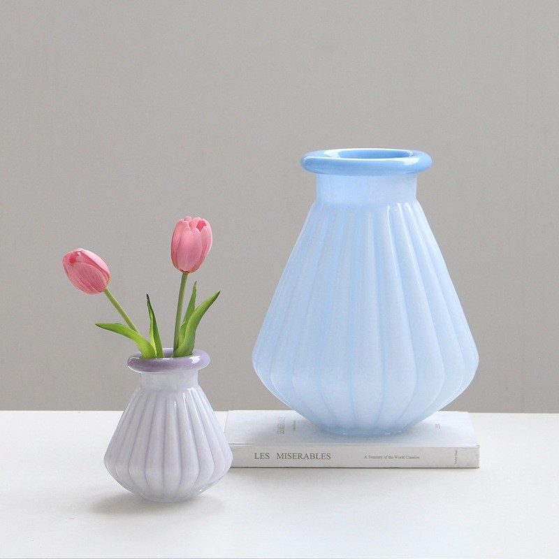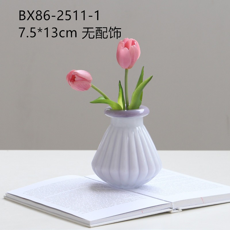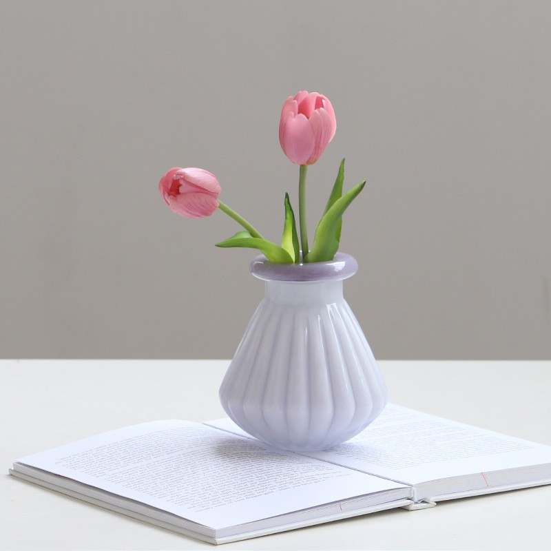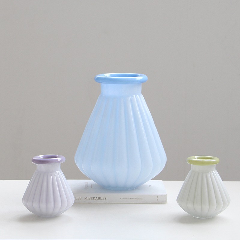 北欧风卷边小口玻璃花瓶客厅仿真花鲜花台面简约居家软装桌面花瓶