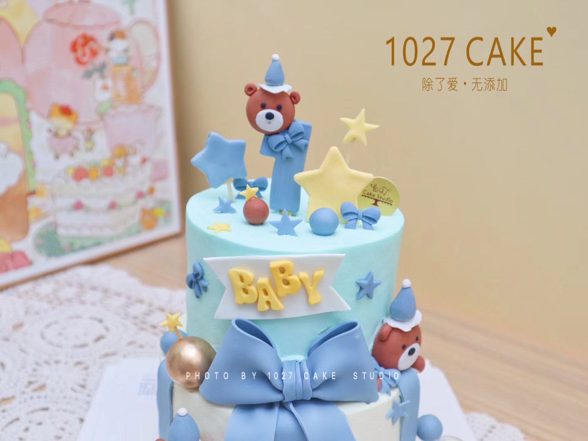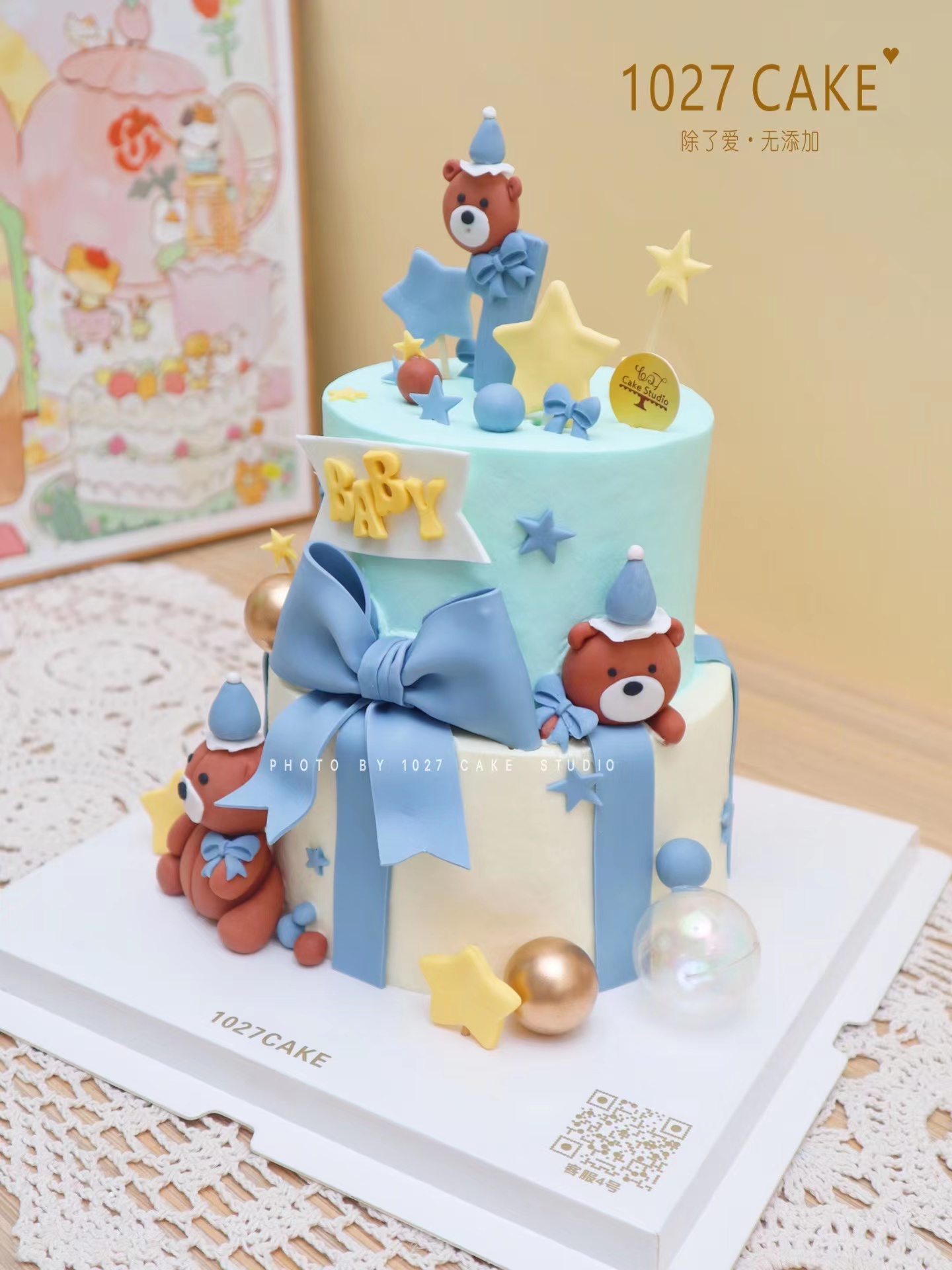 1027CAKE | 双层 翻糖玩偶装饰蛋糕 纯手工 泰迪熊主题 周岁蛋糕