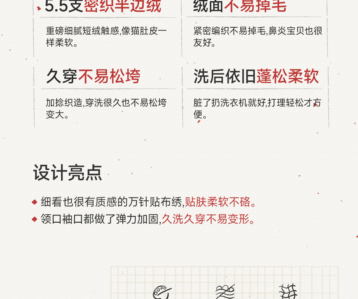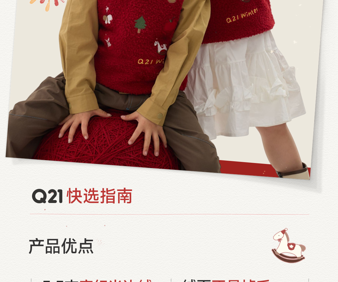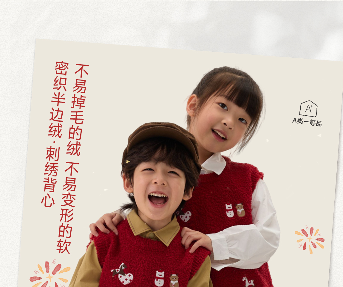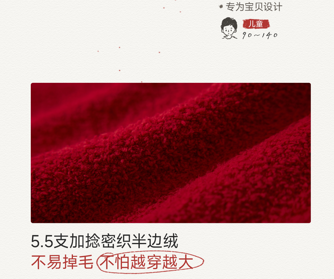 [不易掉毛 不易变形]Q21新年红品半边绒刺绣背心