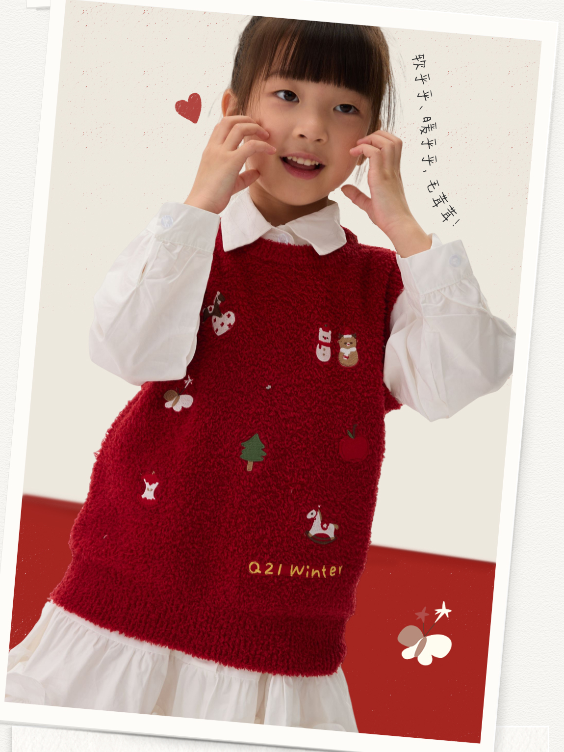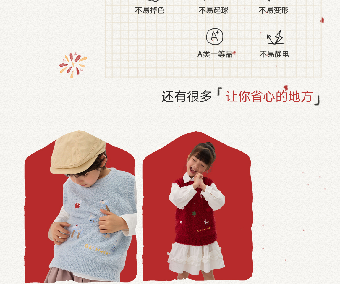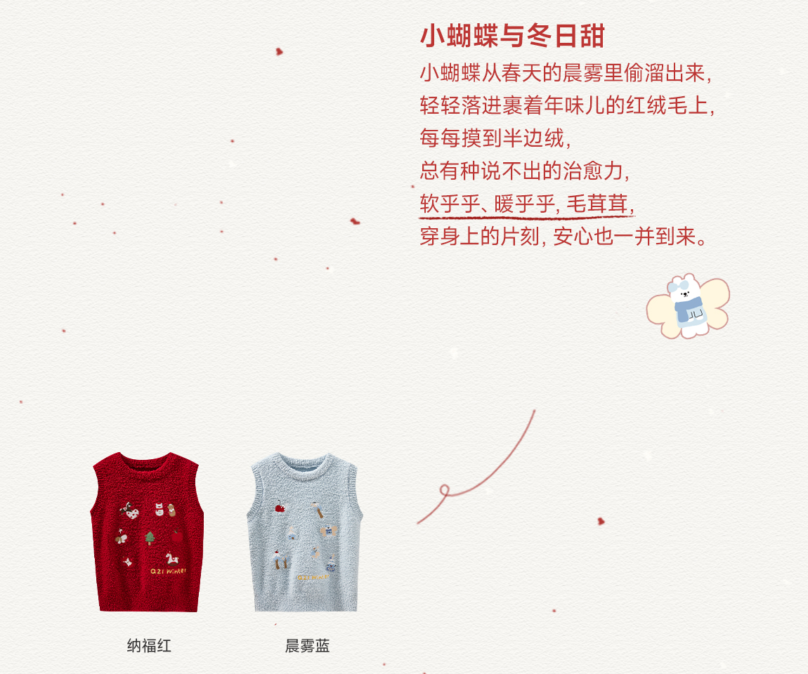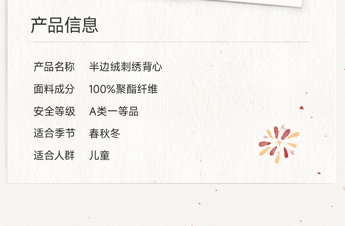 [不易掉毛 不易变形]Q21新年红品半边绒刺绣背心