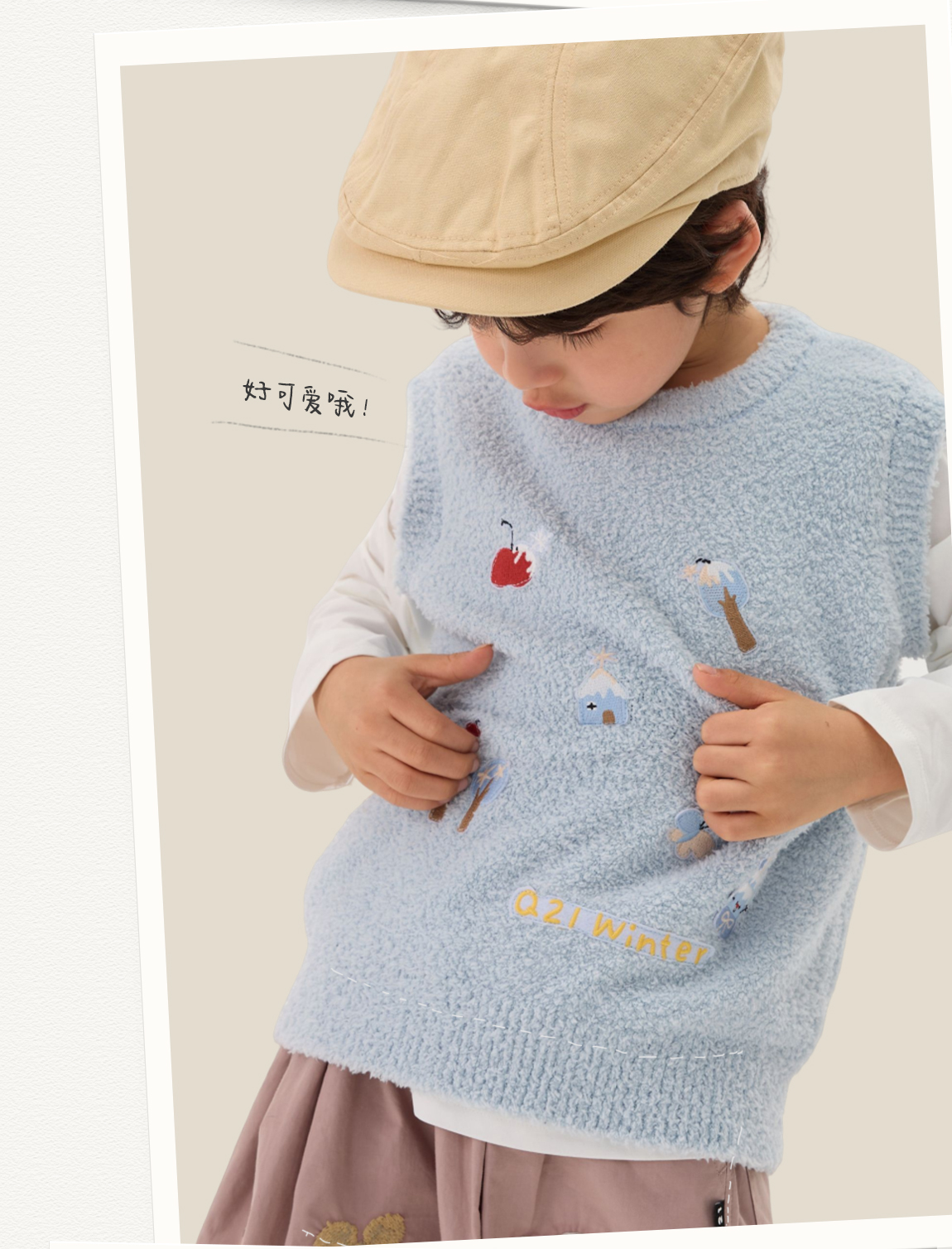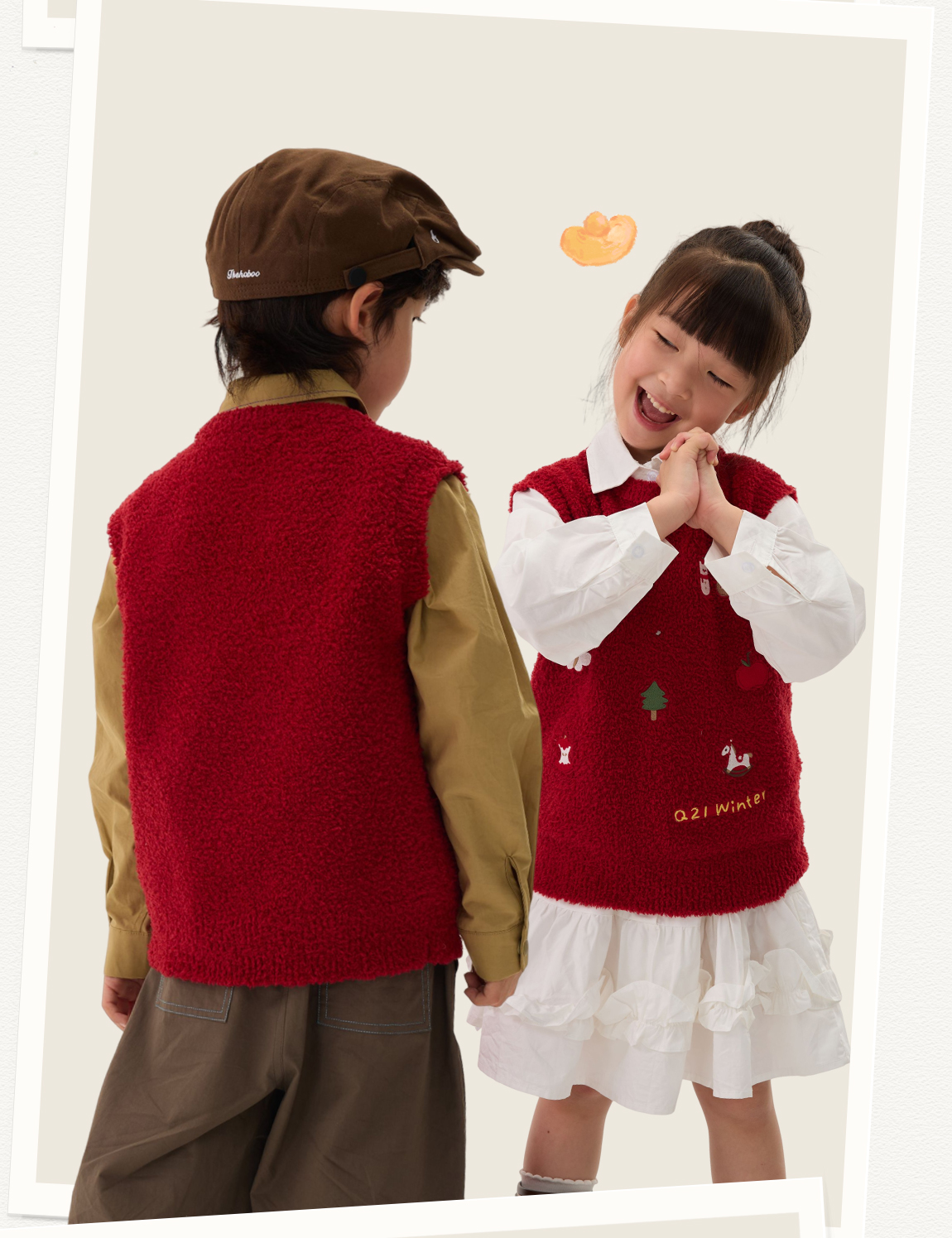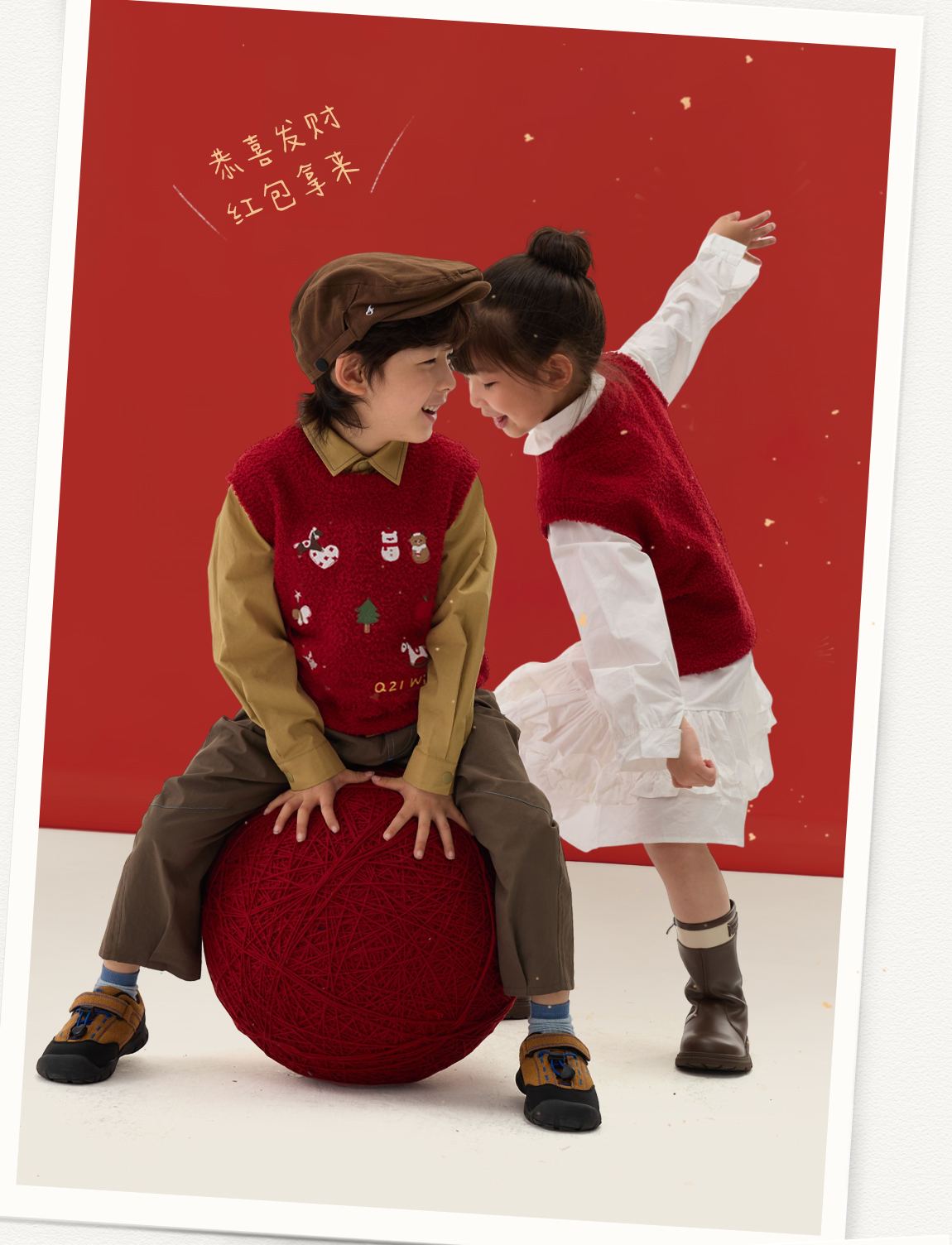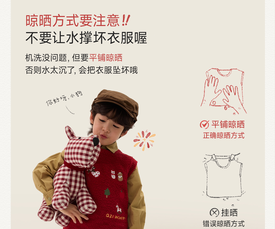 [不易掉毛 不易变形]Q21新年红品半边绒刺绣背心