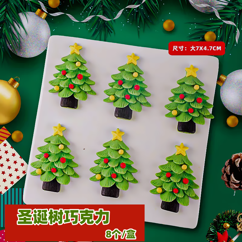 圣诞巧克力插件 手工圣诞树 8个/盒 代可可脂巧克力装饰插件 圣诞系列