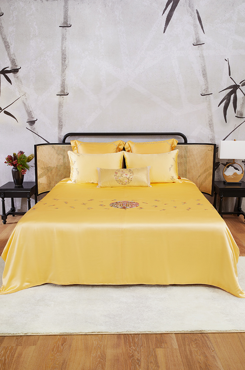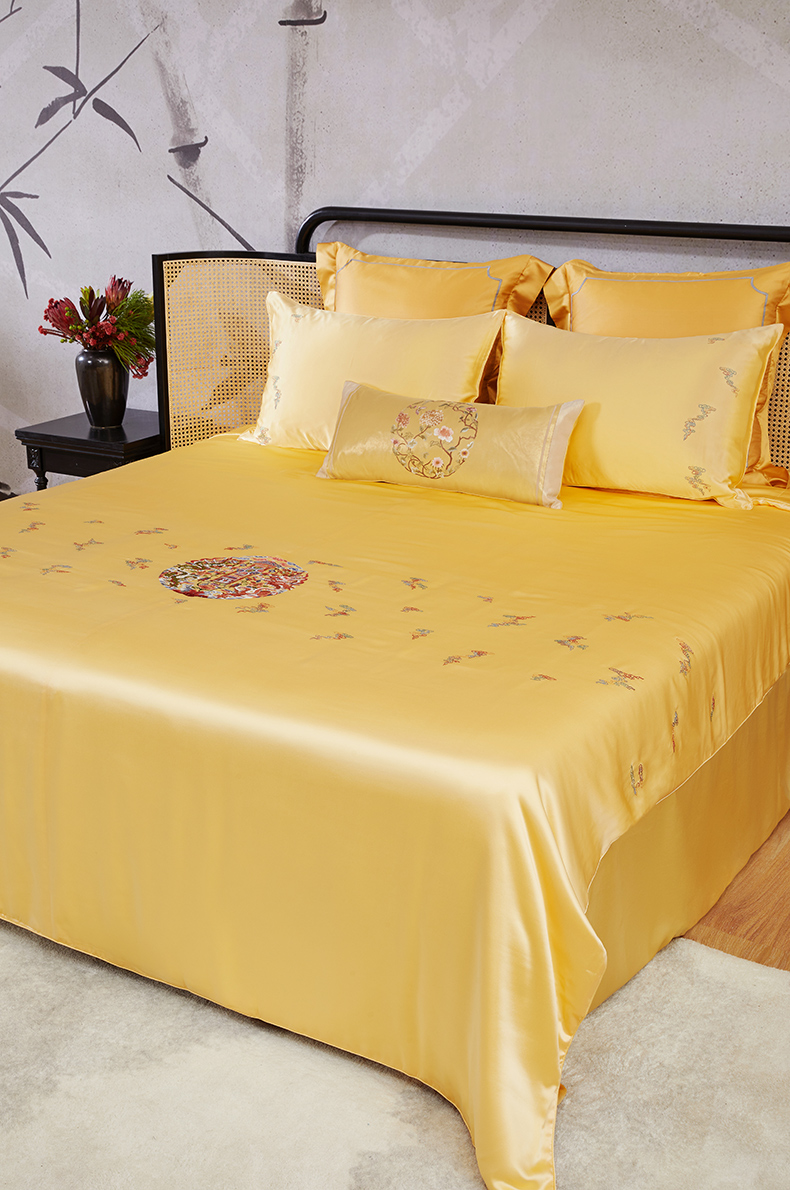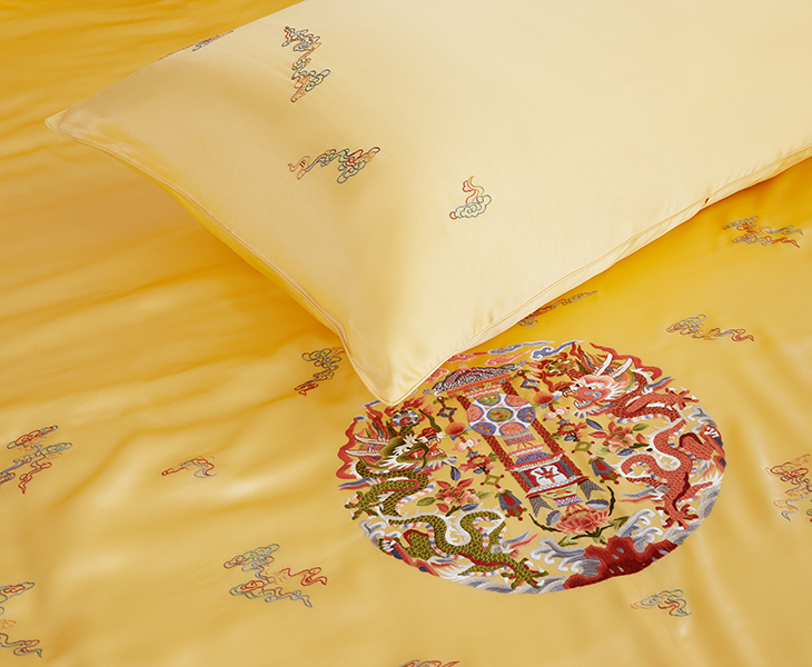 被面、枕套均采用手工刺绣,由绣娘一针一线绣出来,图案秀丽、绣工细致、针法活泼。