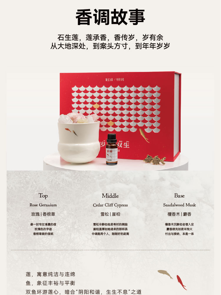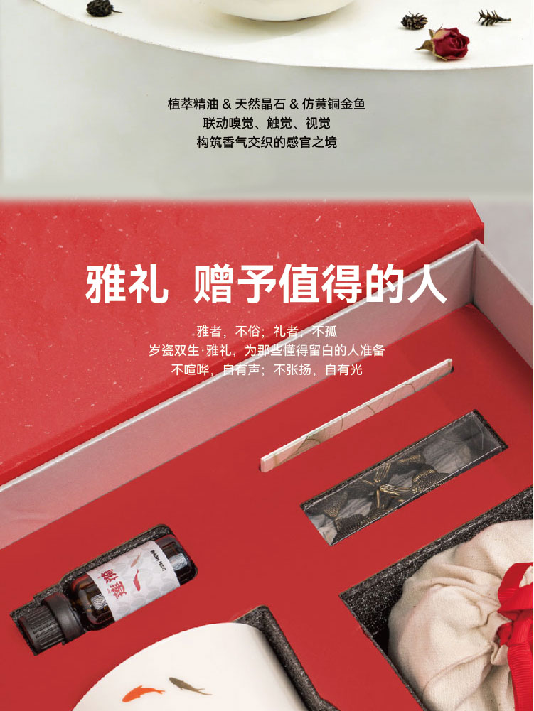 岁瓷 双生白瓷莲花晶石香薰礼盒 |天然晶石