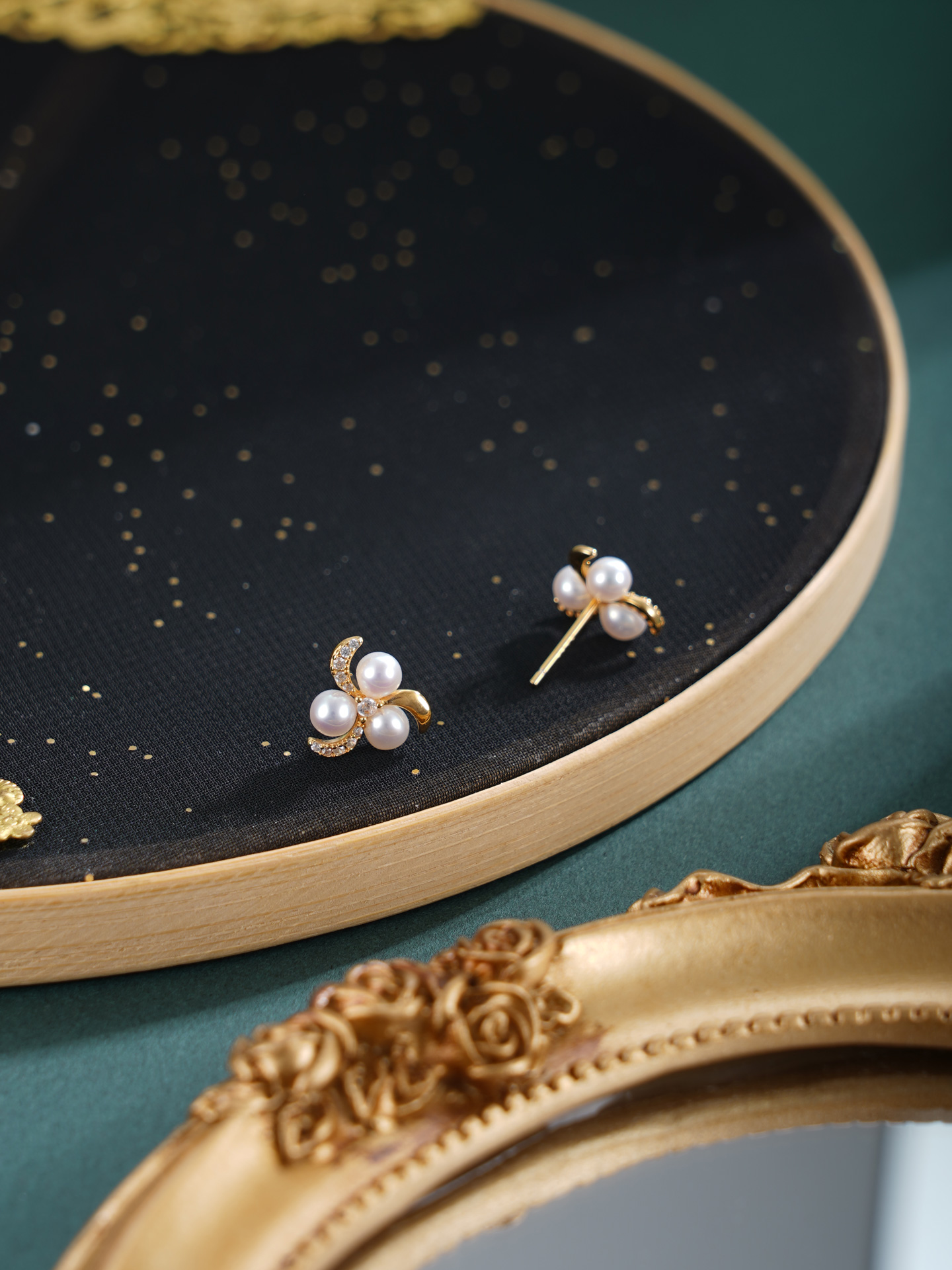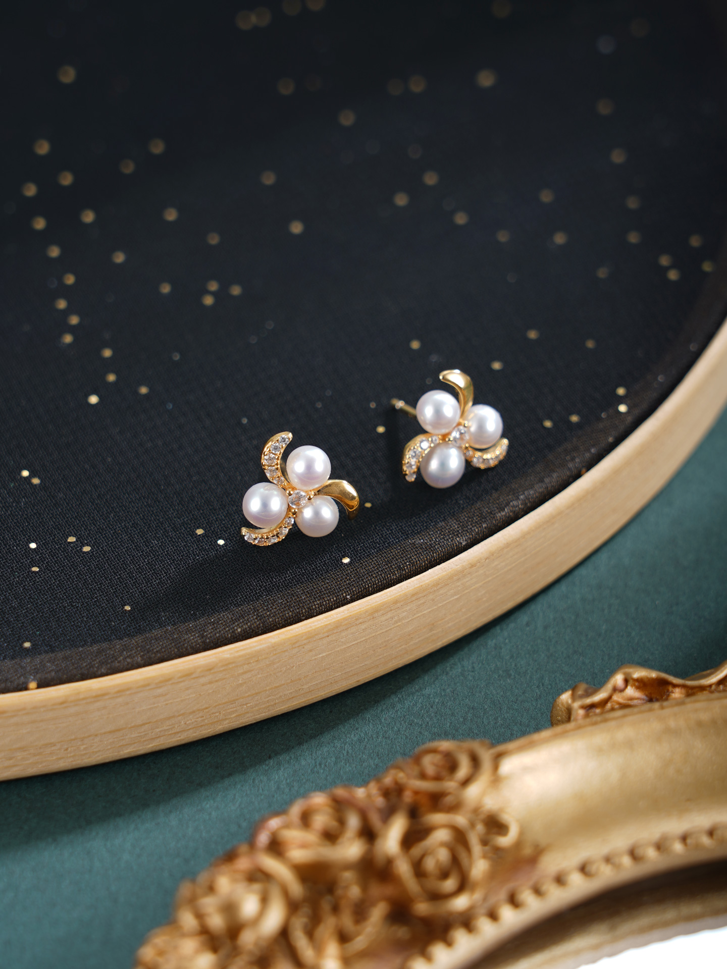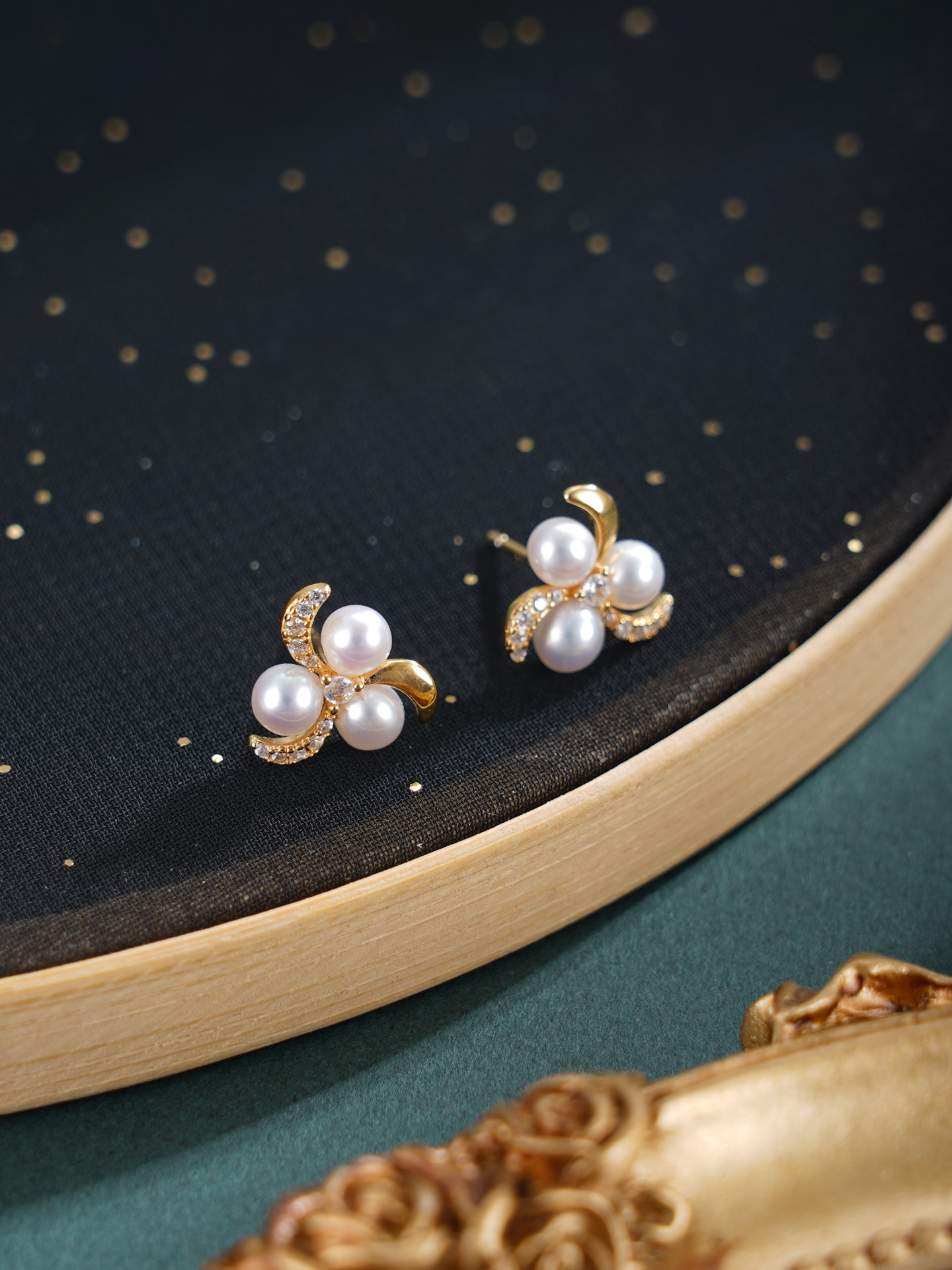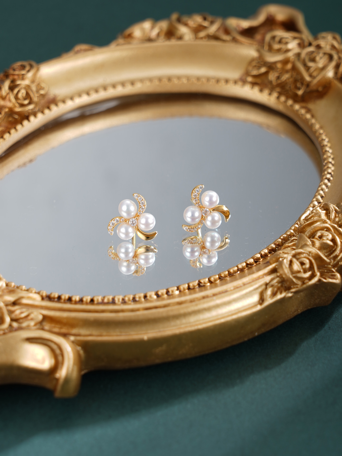 子佩集【风车漫旋】银S925珍珠惜王妃耳钉【MLEH029】3.8mm珠镀金风车三瓣花2601