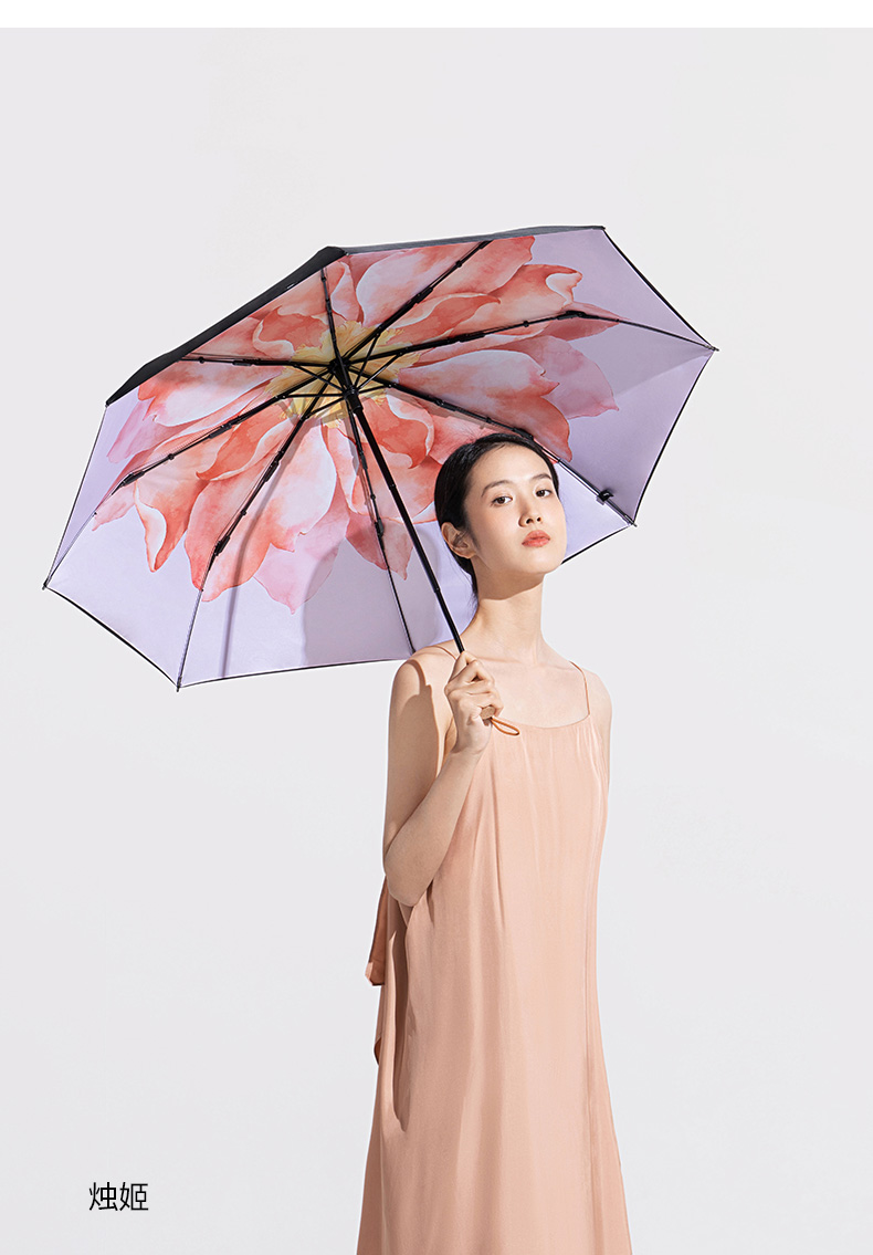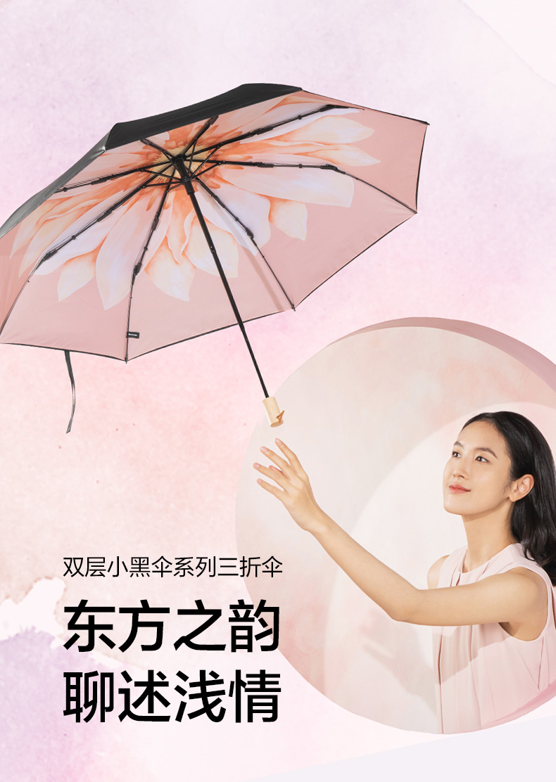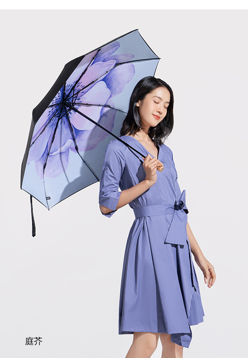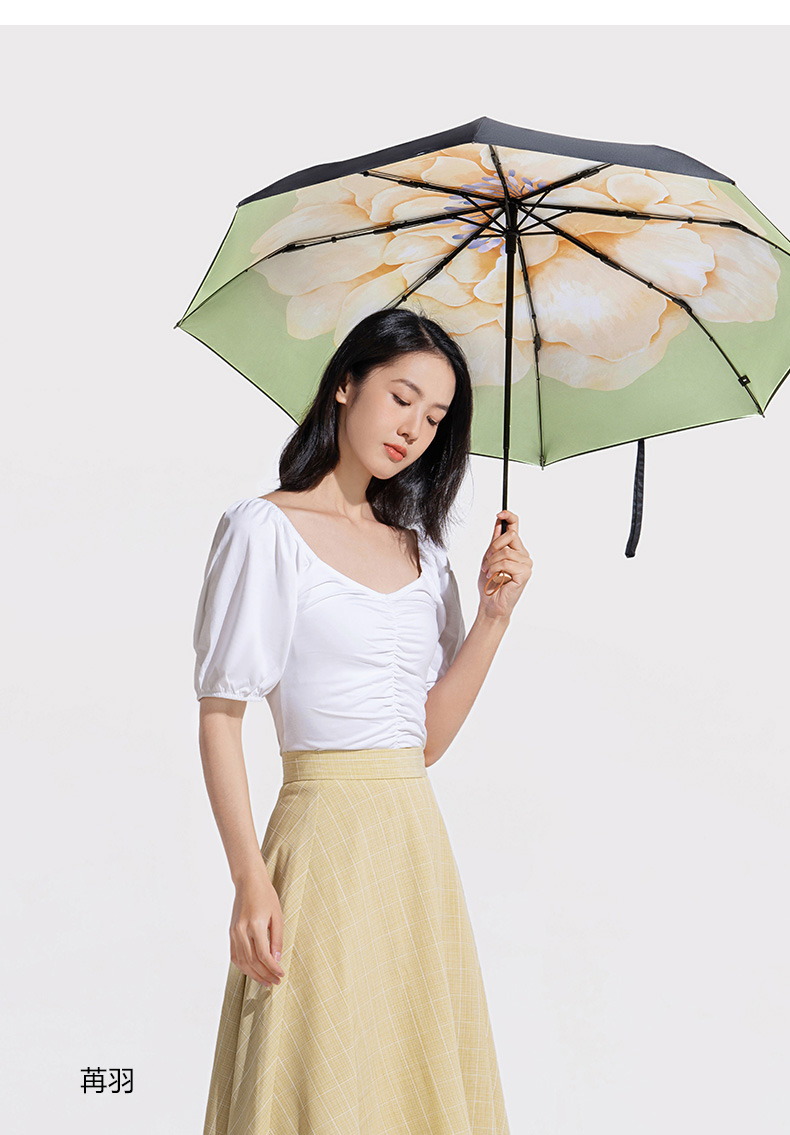 蕉下2021年双层小黑伞系列三折伞大花B防紫外线